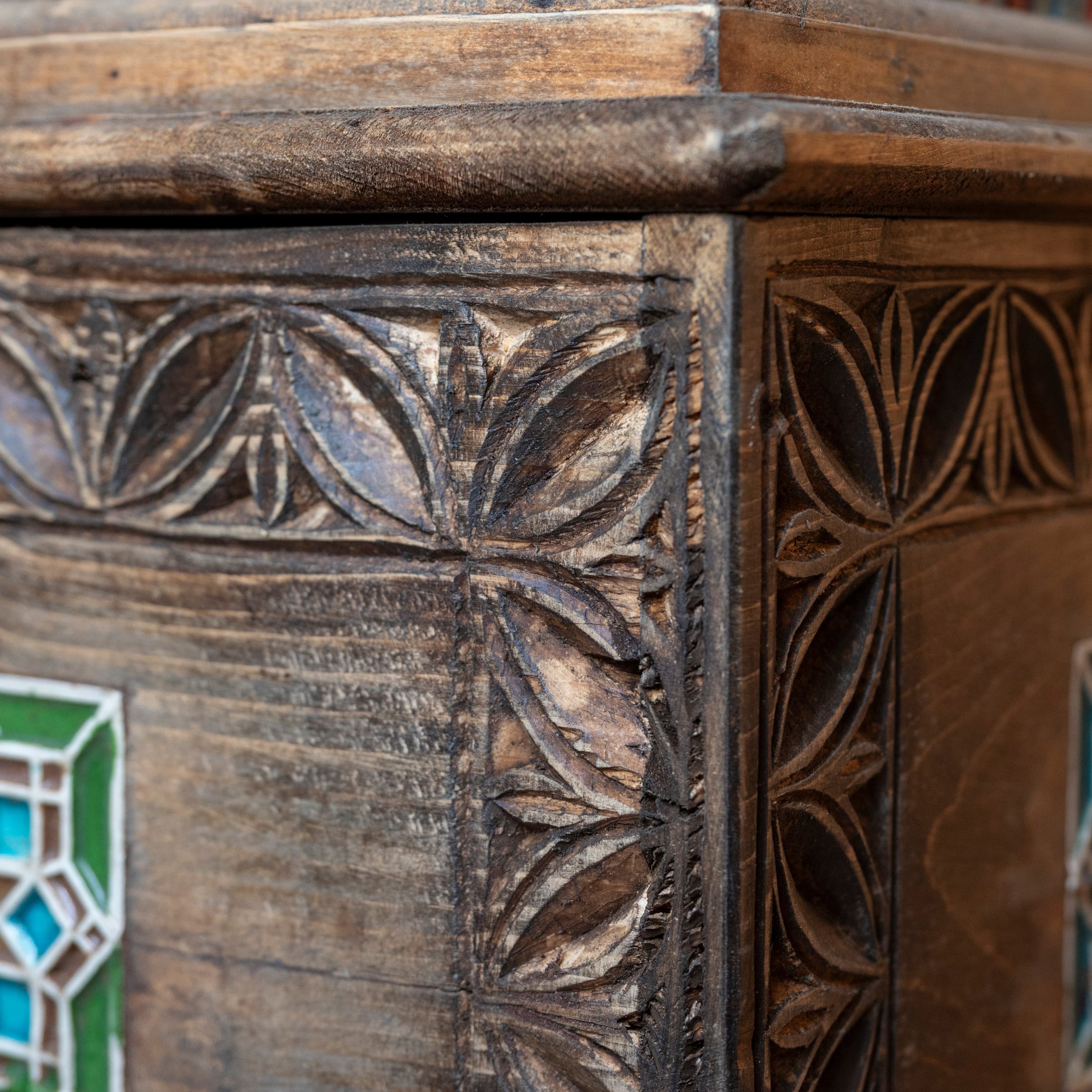 土台には、職人の手彫りの彫刻と、タイルがはめられています。