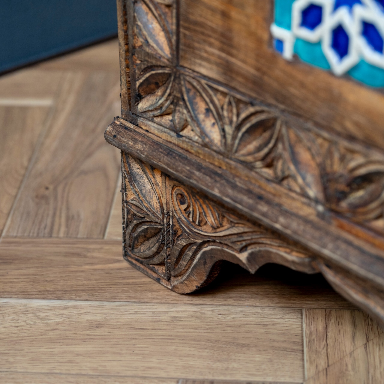 土台には、職人の手彫りの彫刻と、タイルがはめられています。