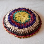 パキスタンの村の女性たちが、ナツメヤシの葉を手編みしてつくったカゴ。見ていると元気になるようなカラフルな色合いです。