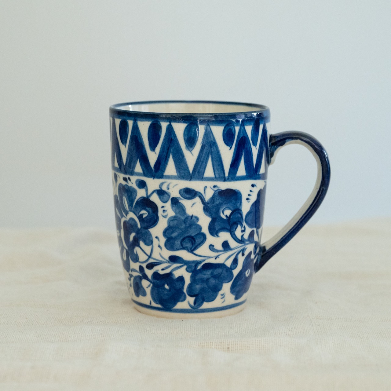 パキスタンの青の陶器、ムルタン焼で作られたマグカップ。