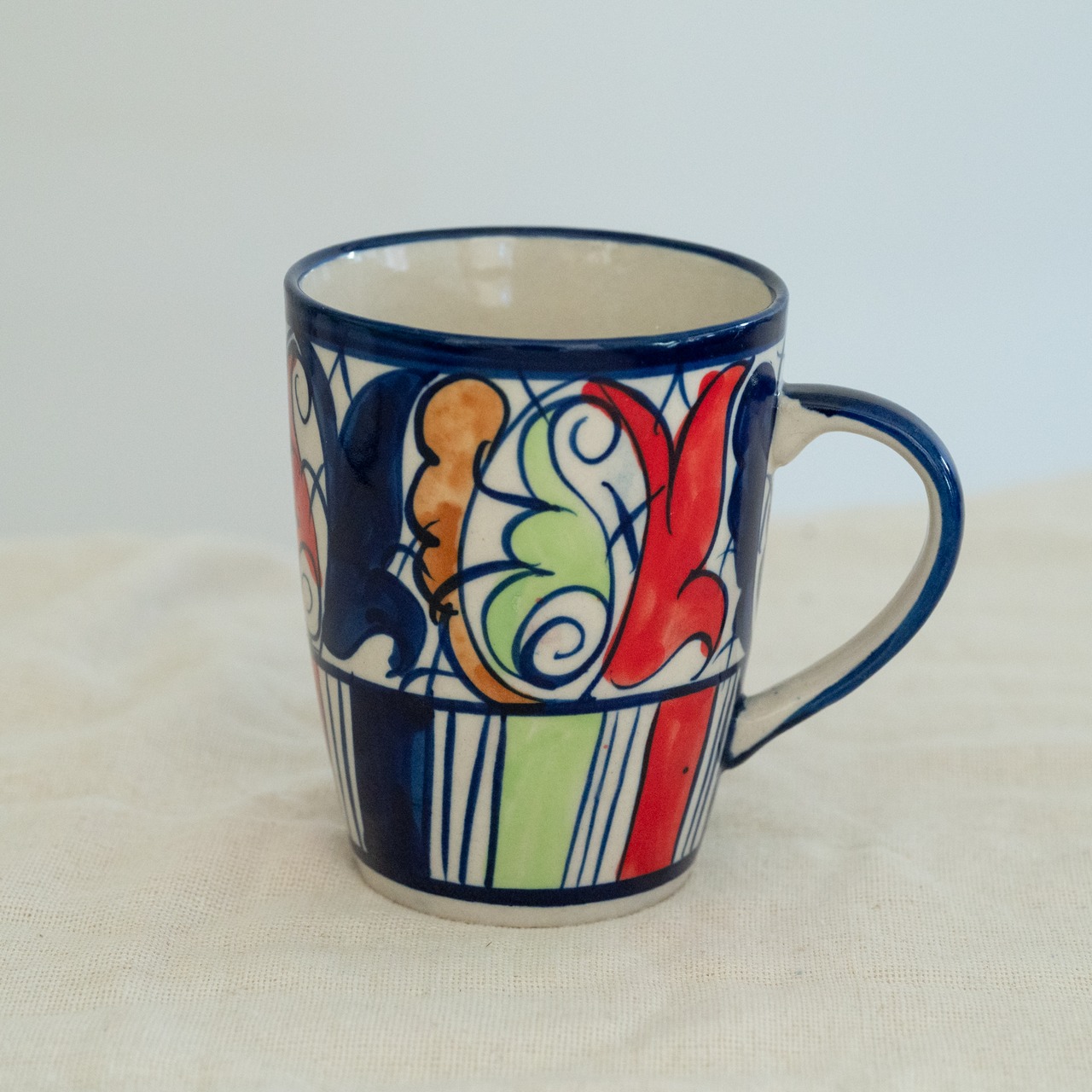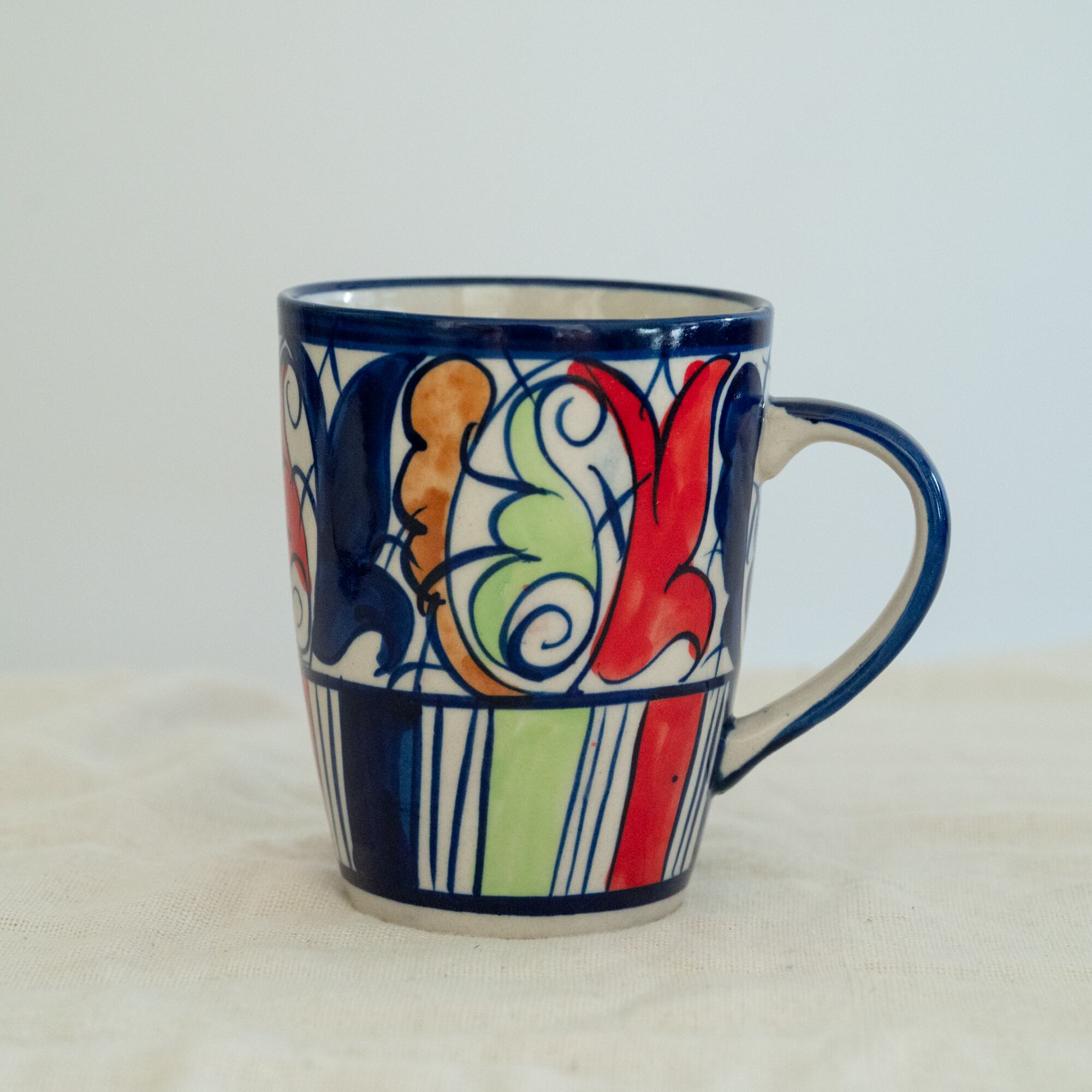 パキスタンの青の陶器、ムルタン焼で作られたマグカップ。
