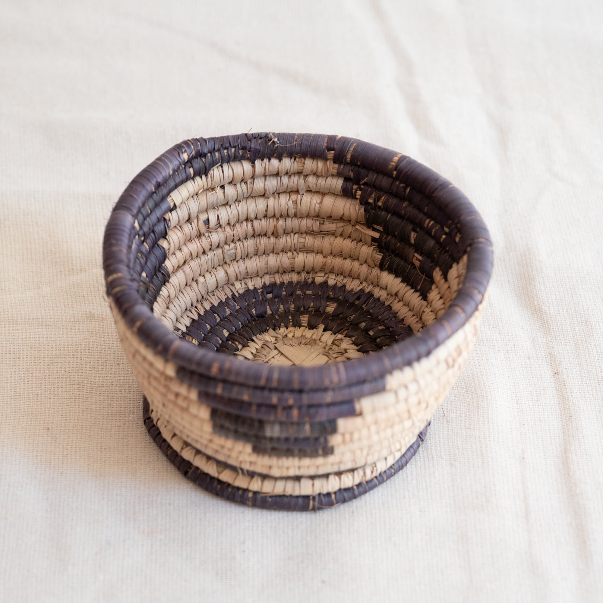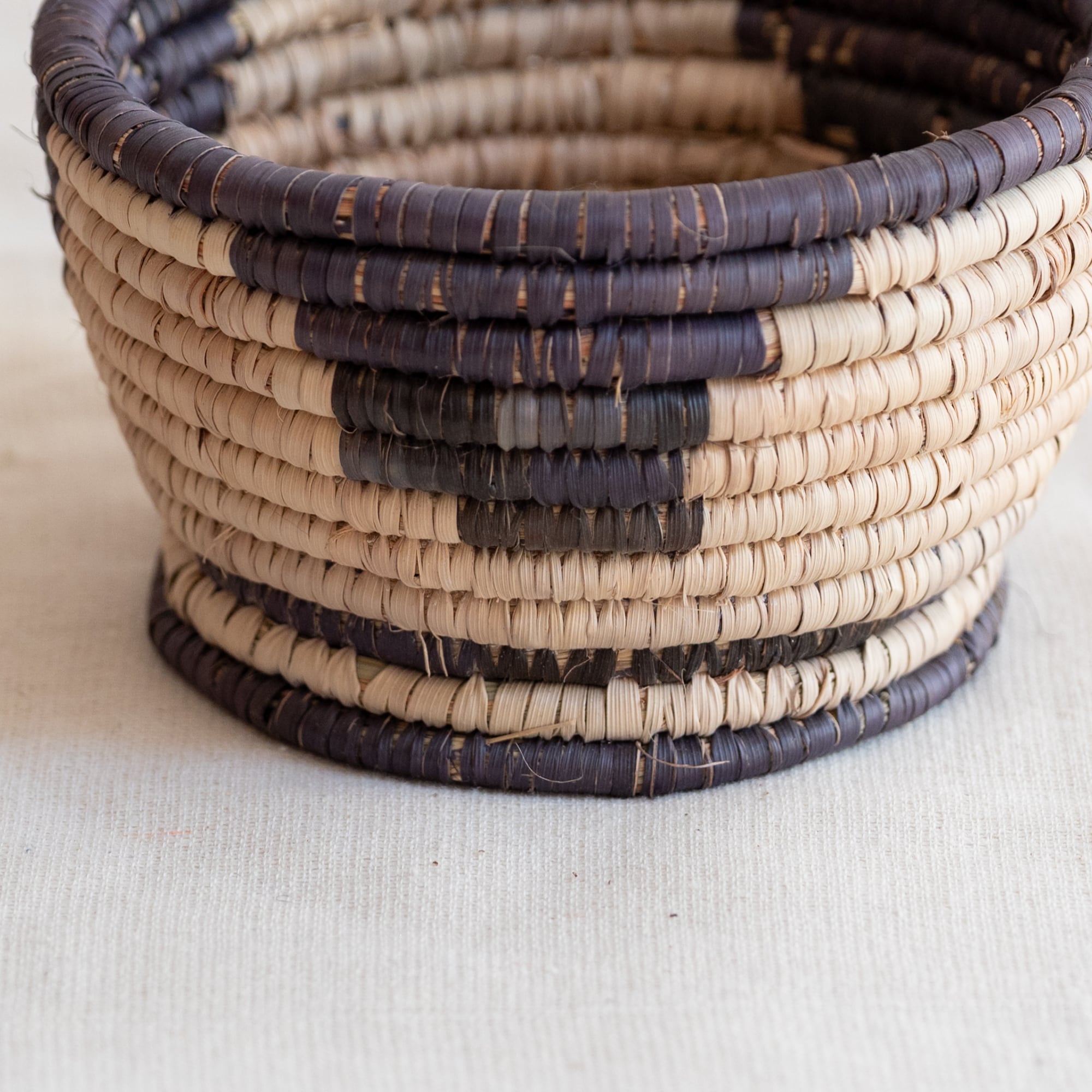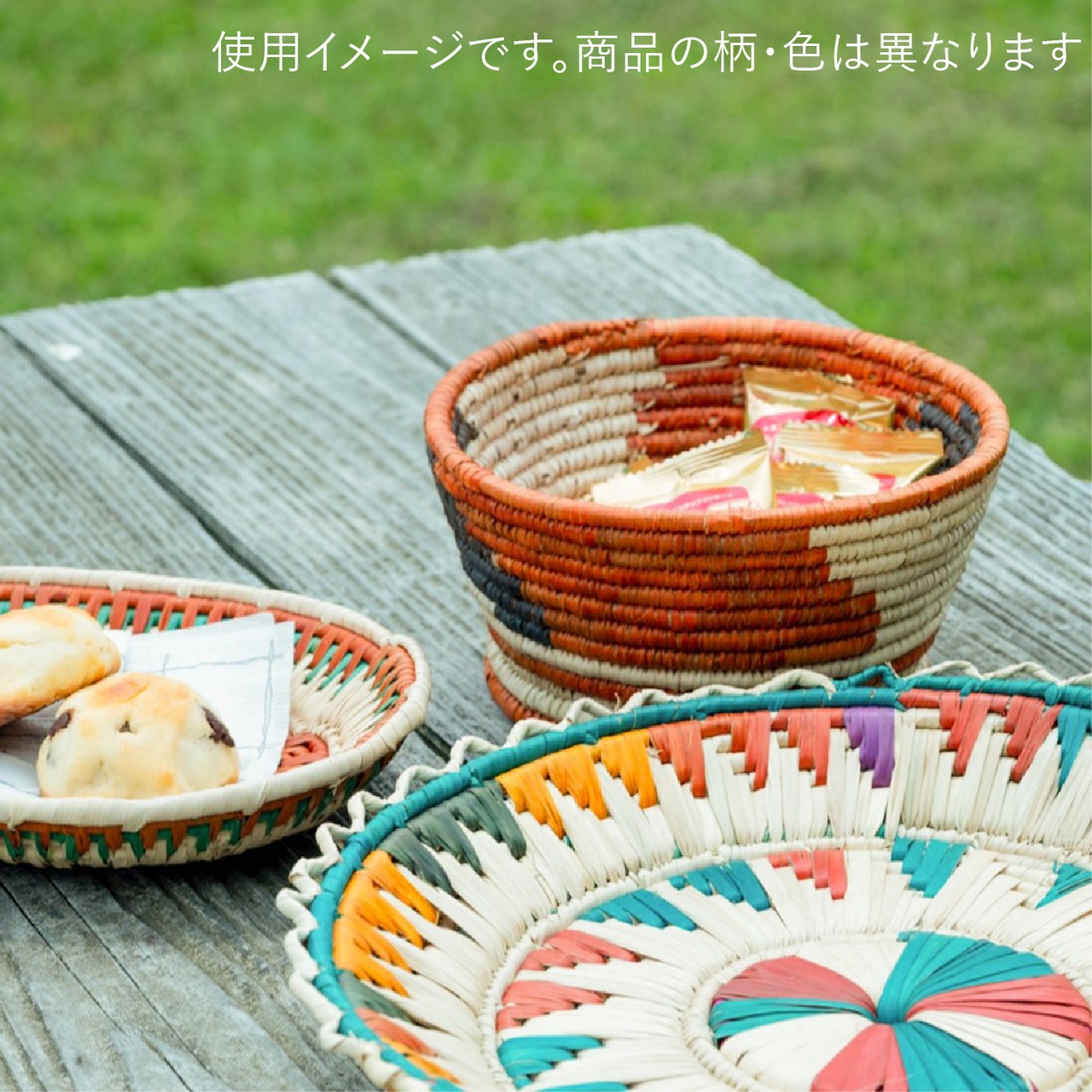 パキスタンの村の女性たちが、ナツメヤシの葉を手編みしてつくったカゴ。様々な模様がありますが、どれも手作りで少しずつサイズや深さが異なり、個性があります。