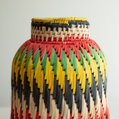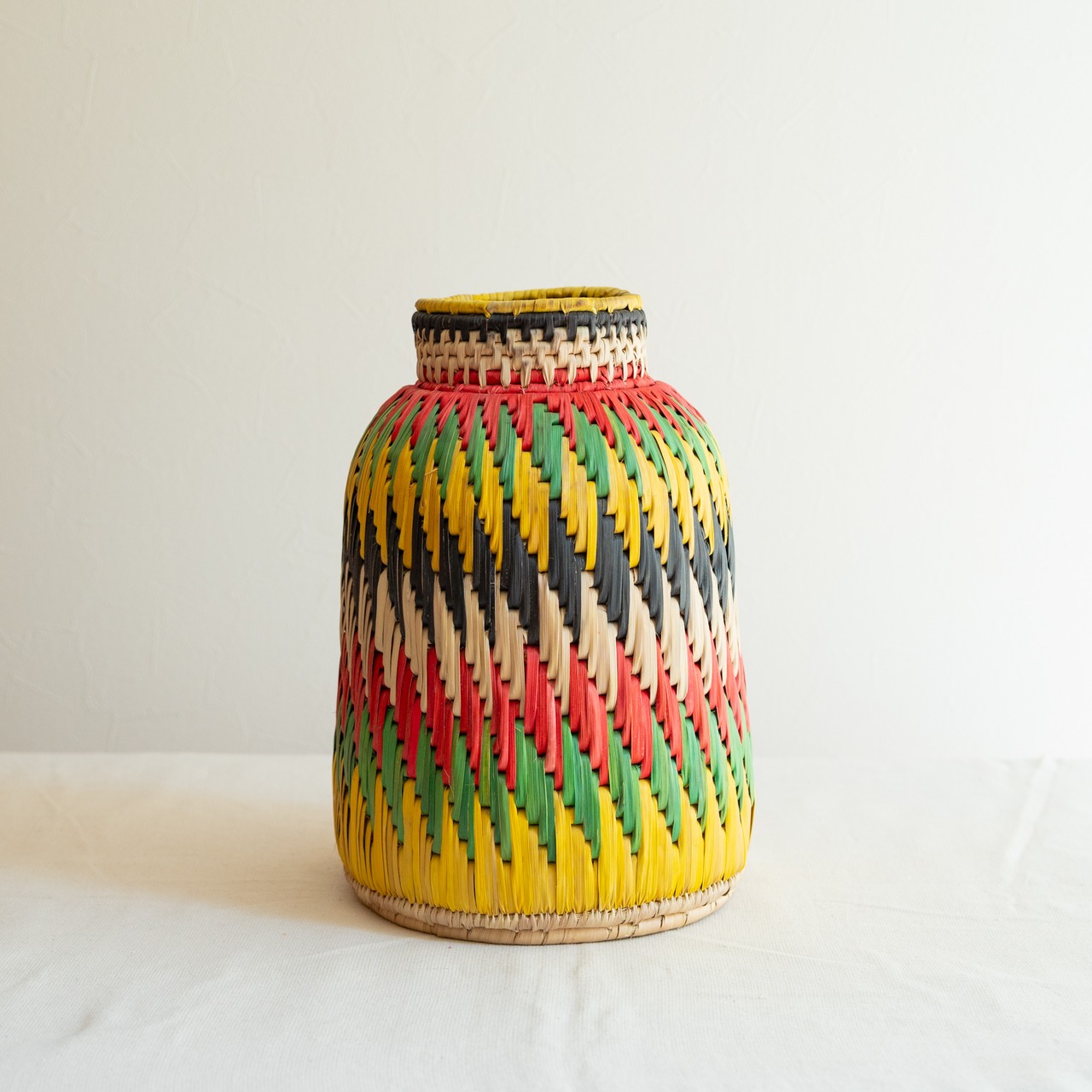 パキスタンの村の女性たちが、ナツメヤシの葉を手編みしてつくったカゴ。