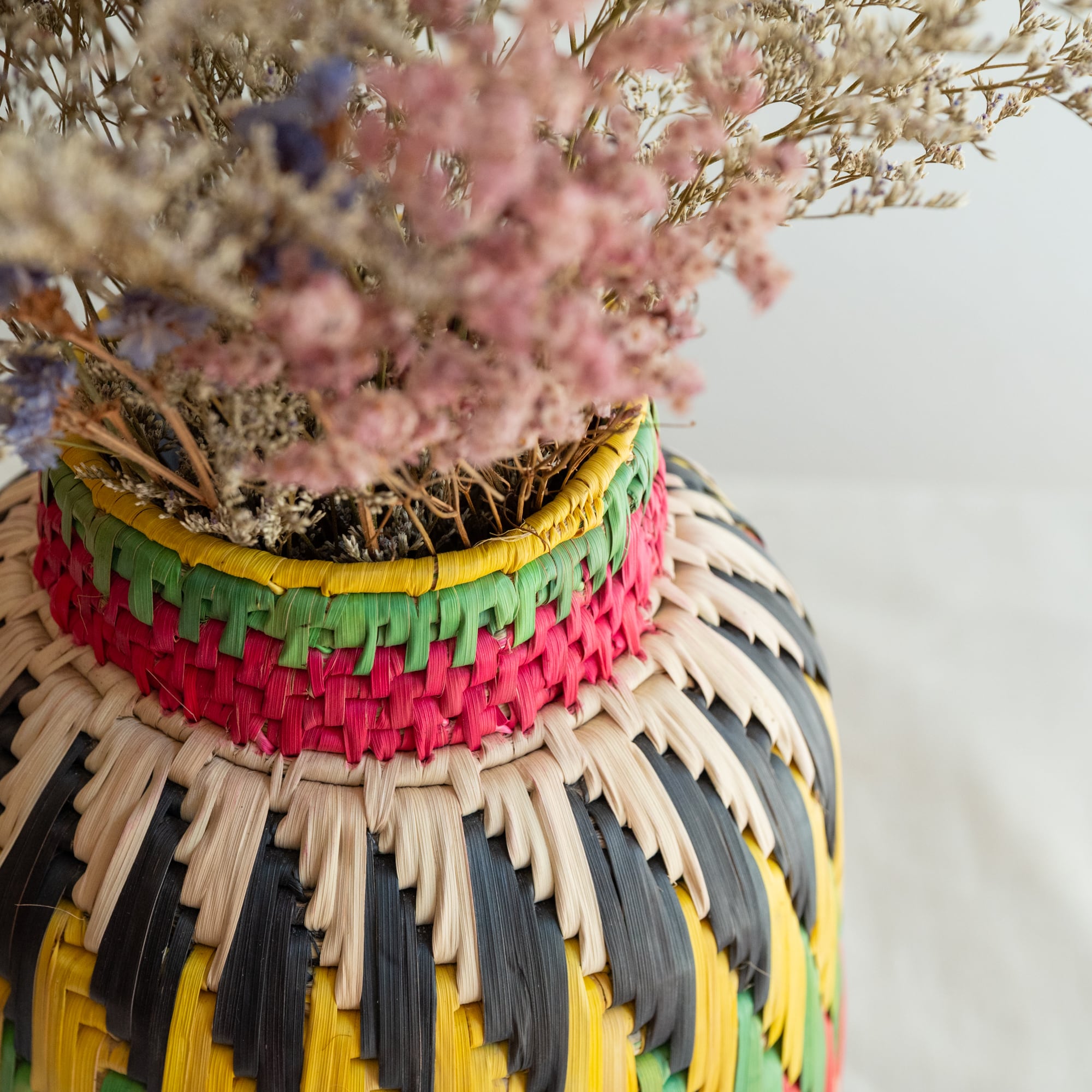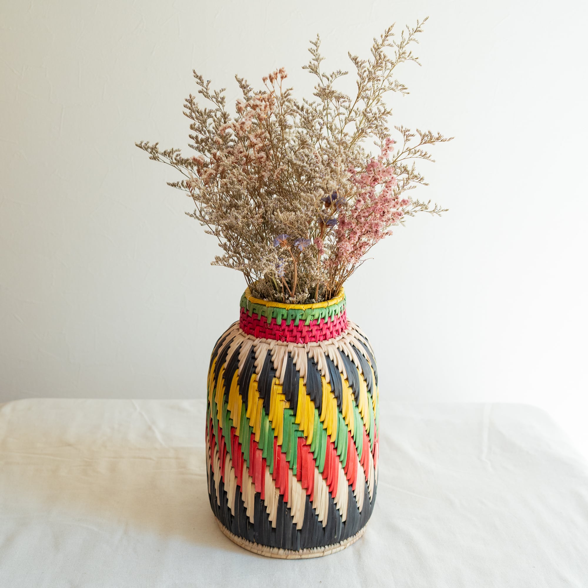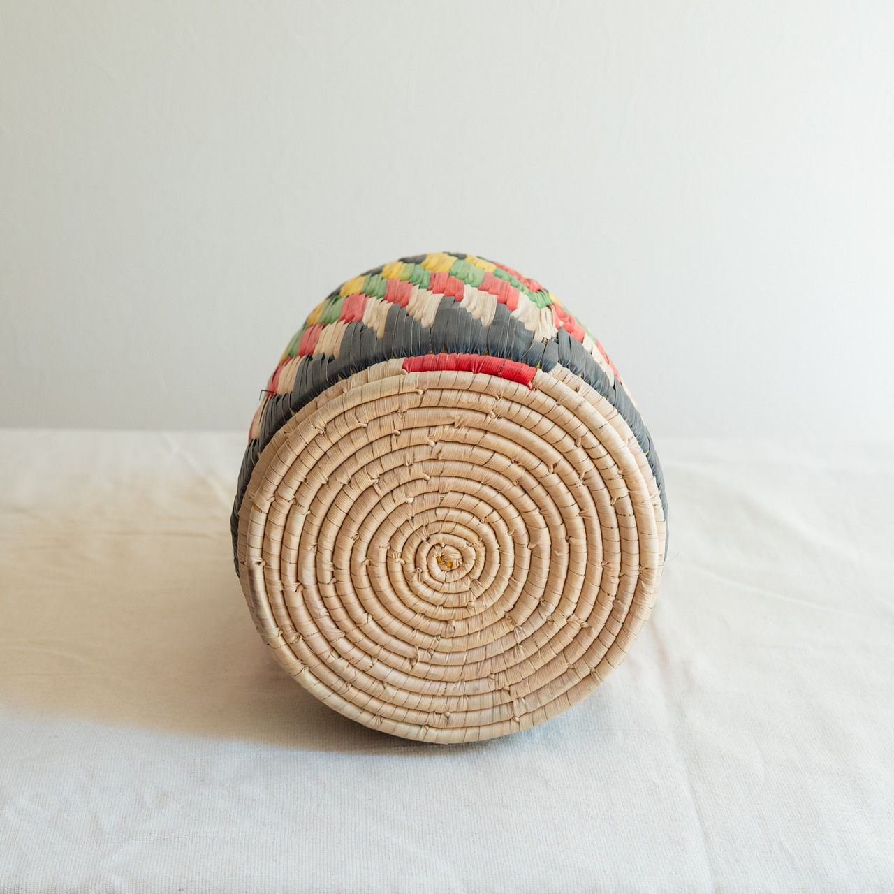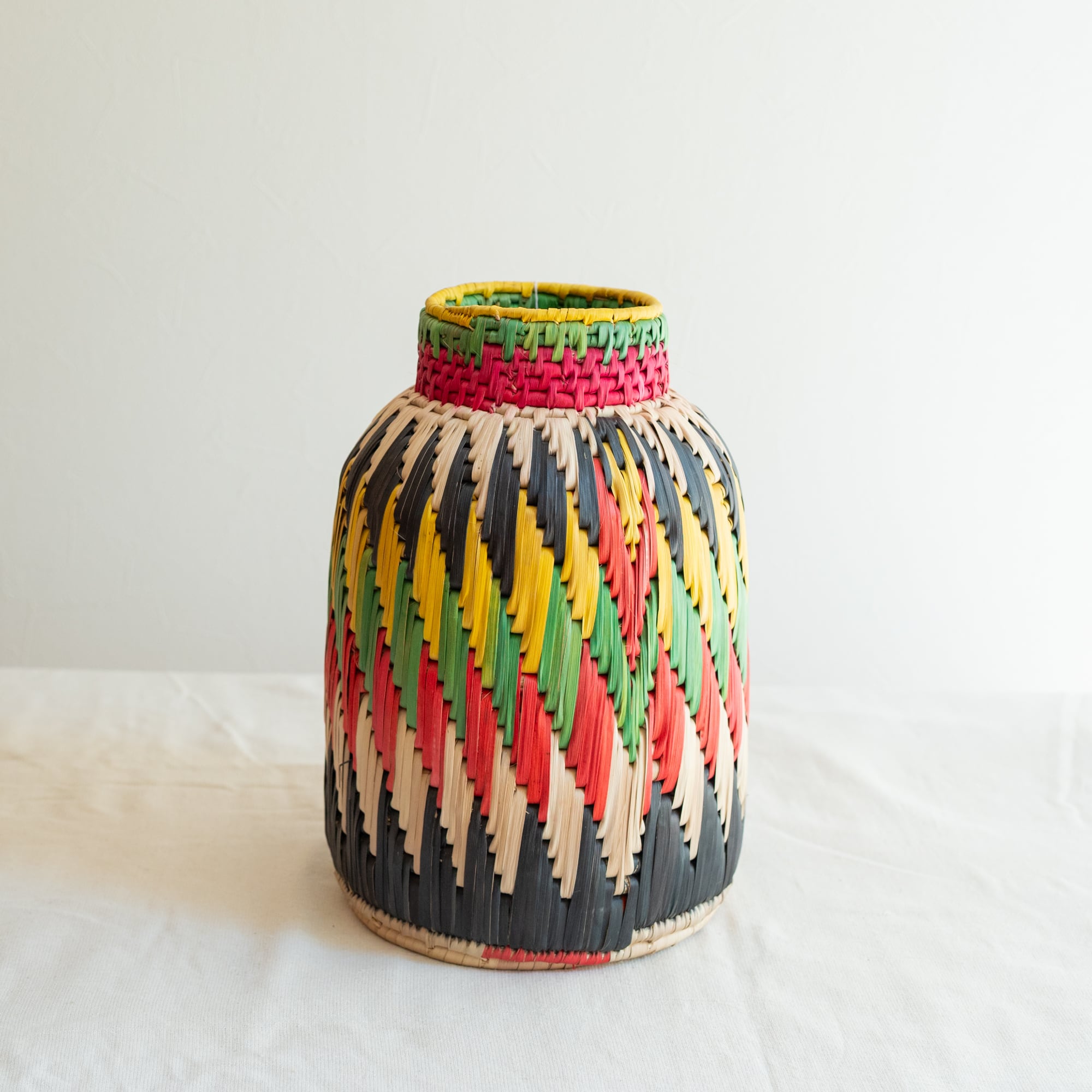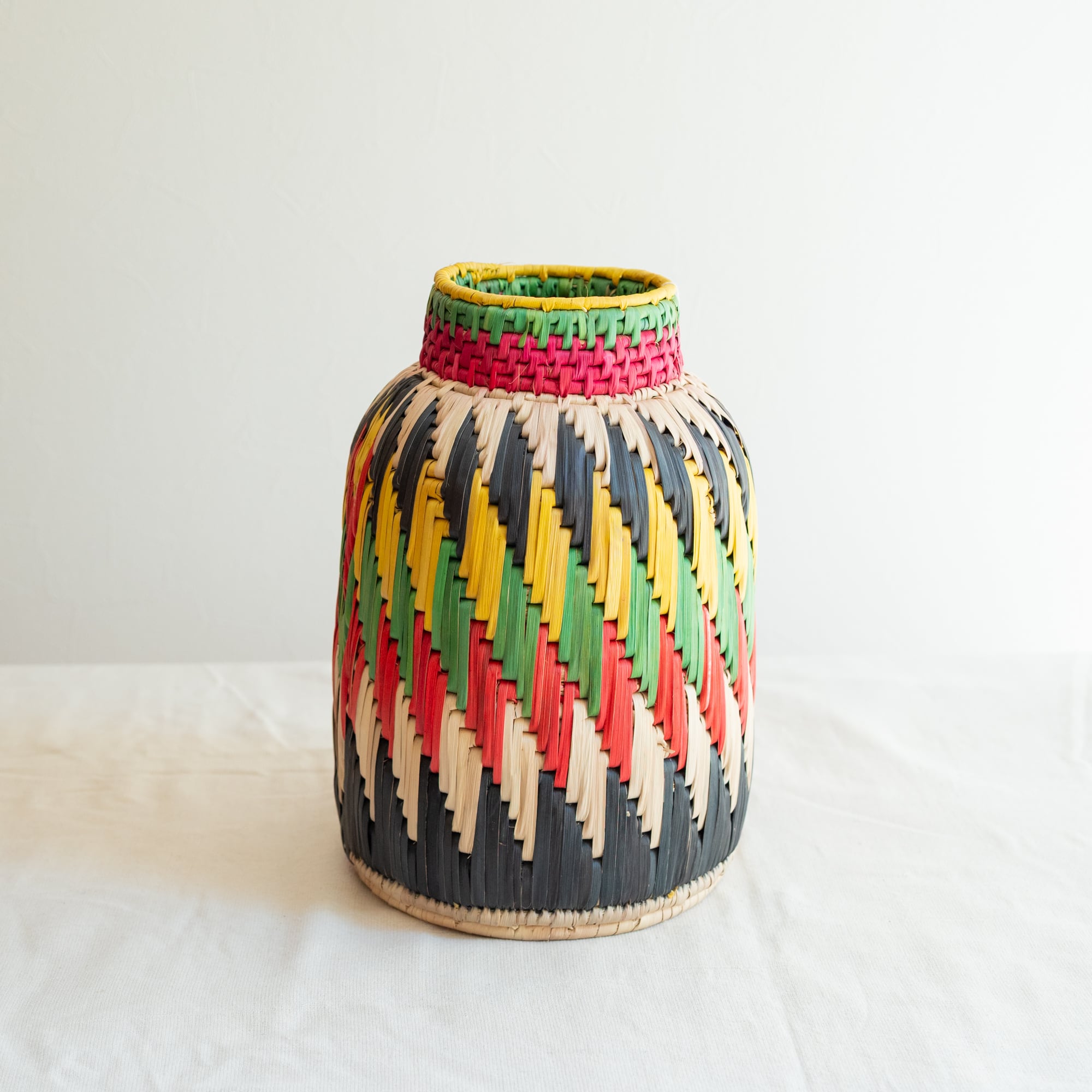 パキスタンの村の女性たちが、ナツメヤシの葉を手編みしてつくったカゴ。