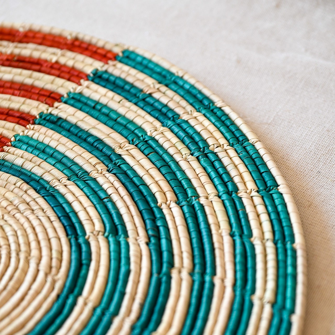 パキスタンの村の女性たちが、ナツメヤシの葉を手編みしてつくったカゴ。様々な模様がありますが、どれも手作りで少しずつサイズや深さが異なり、個性があります。