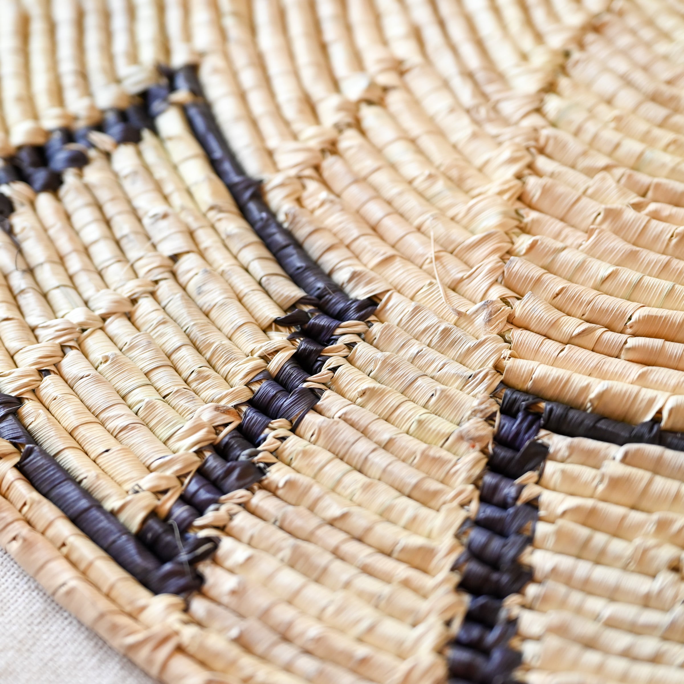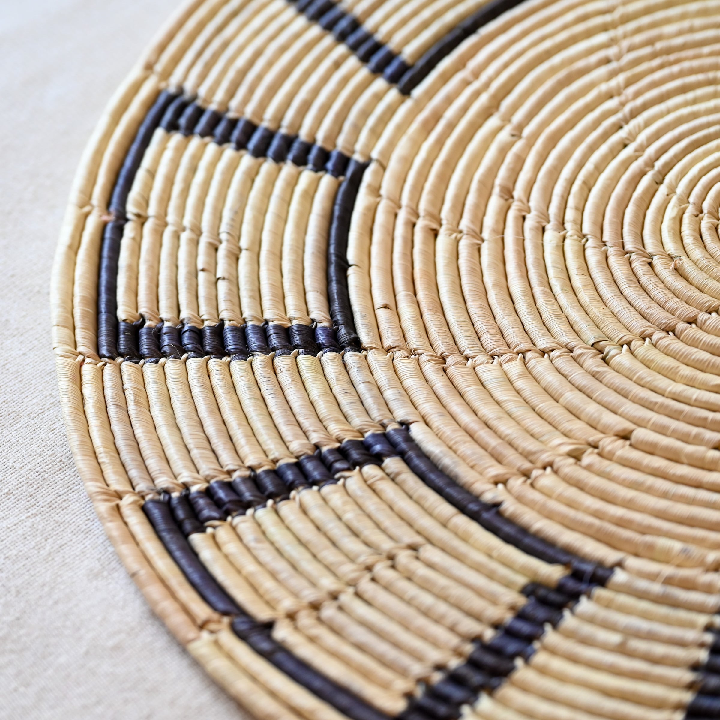 パキスタンの女性達が手編みで作ったプレイスマット。乾燥させたナツメヤシの葉を使い、丁寧に、丈夫に編まれています。