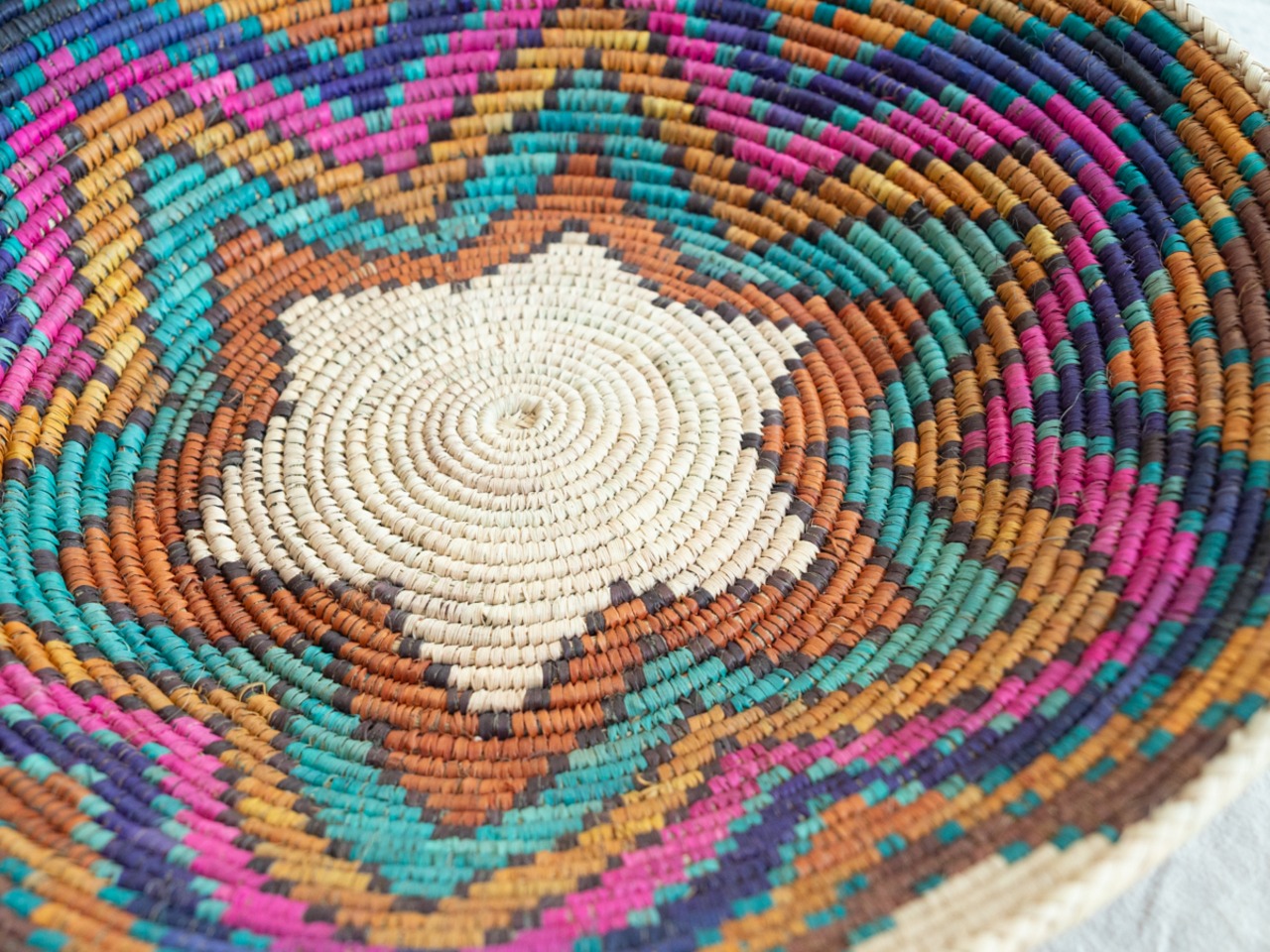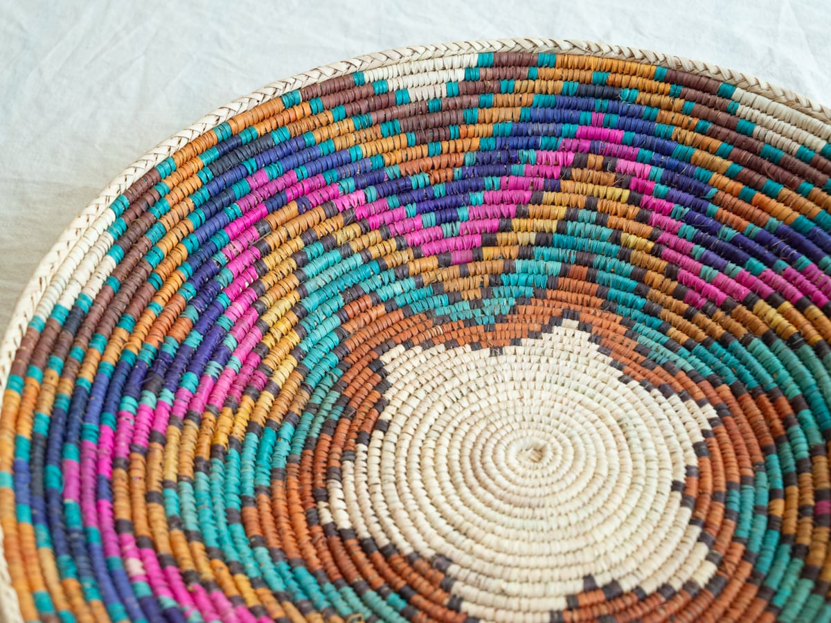 パキスタンの村の女性たちが、ナツメヤシの葉を手編みしてつくったカゴ。