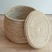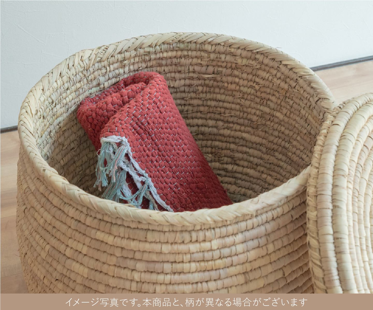 パキスタンのかご ふた付 特大バスケット No.1 直径50cm × 高さ40cm