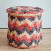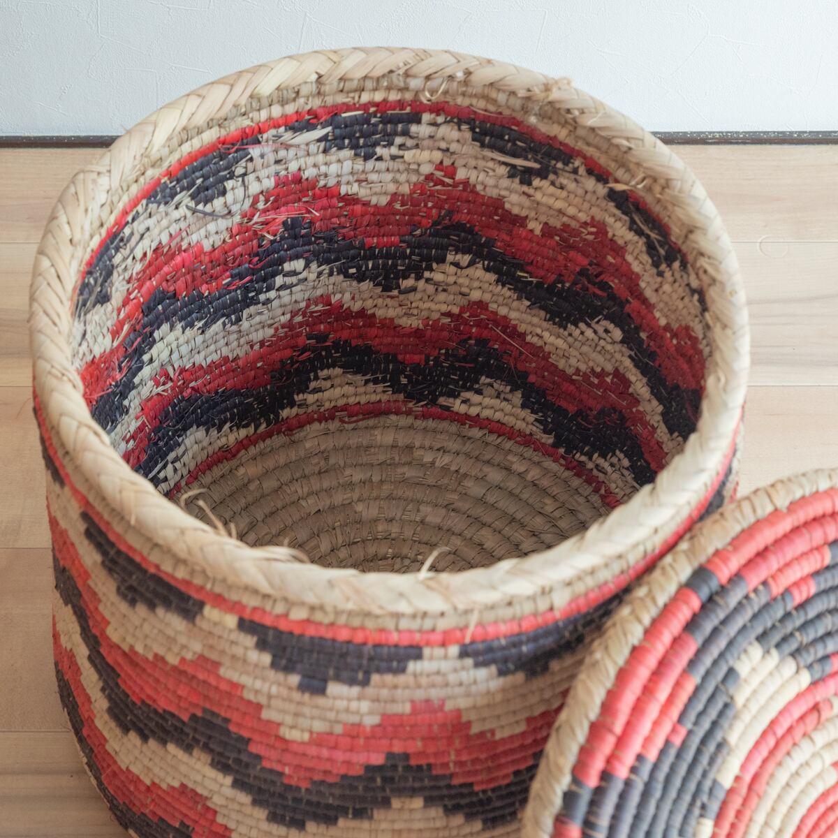 パキスタンのかご ふた付 特大バスケット No.2 直径44cm × 高さ44cm
