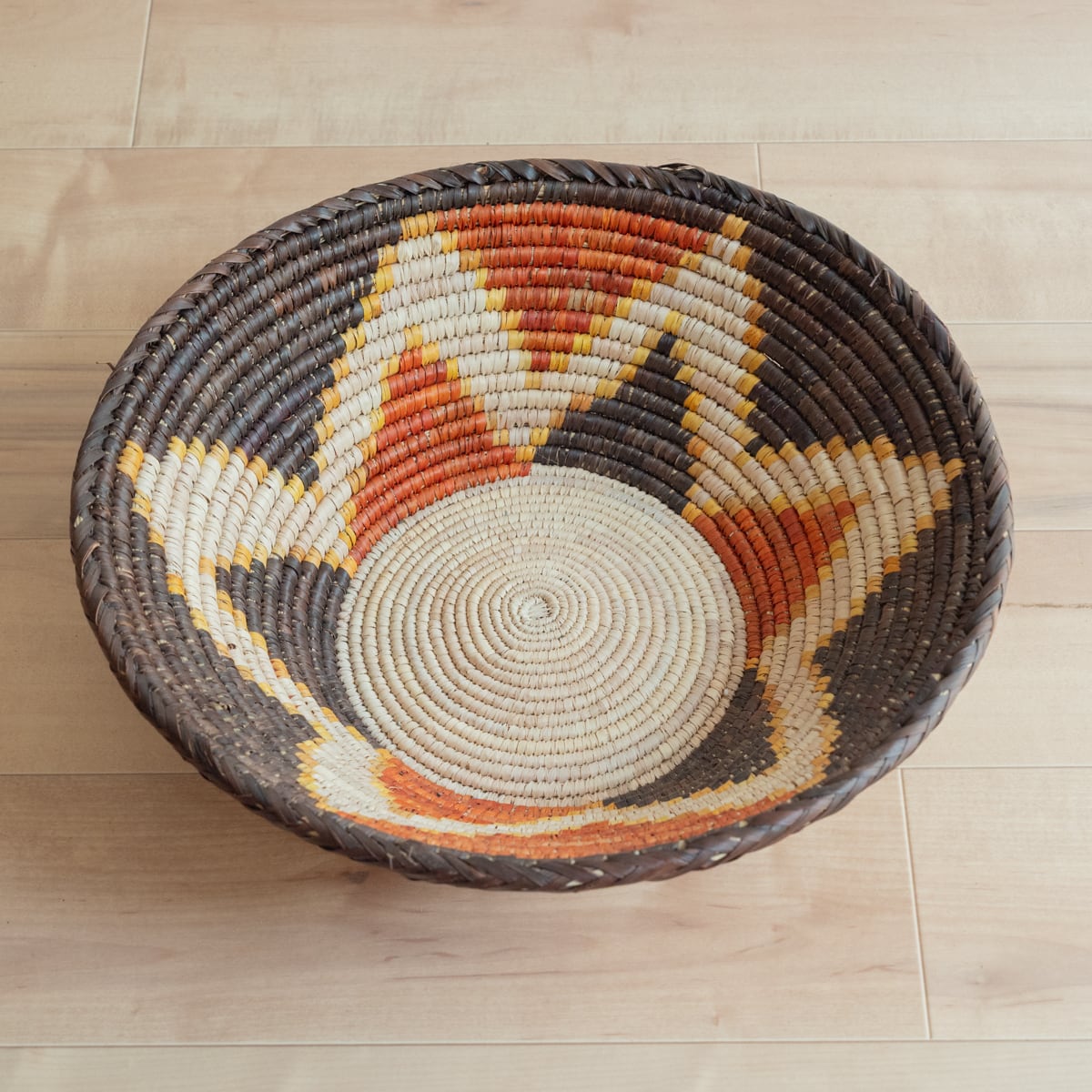 乾燥させたナツメヤシの葉を編んでつくった、天然素材のかごです。