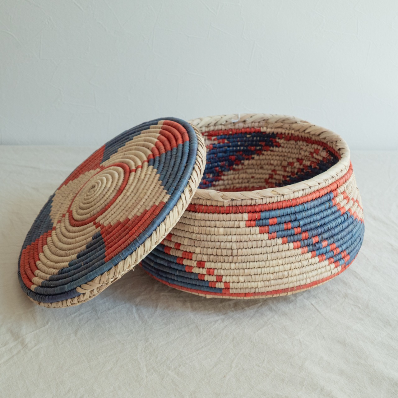 パキスタンのかご フタつきかごL No.3 直径34cm × 高さ21cm