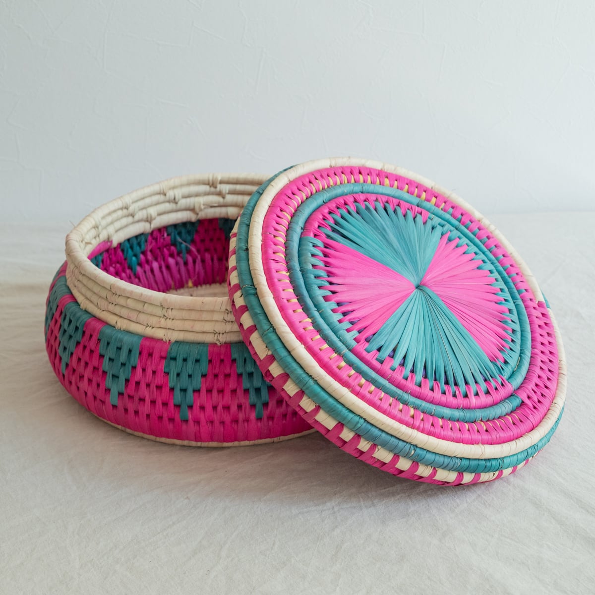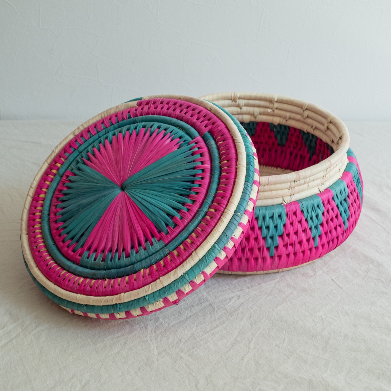 パキスタンのかご フタつきかごL No.4 直径32cm × 高さ16cm