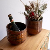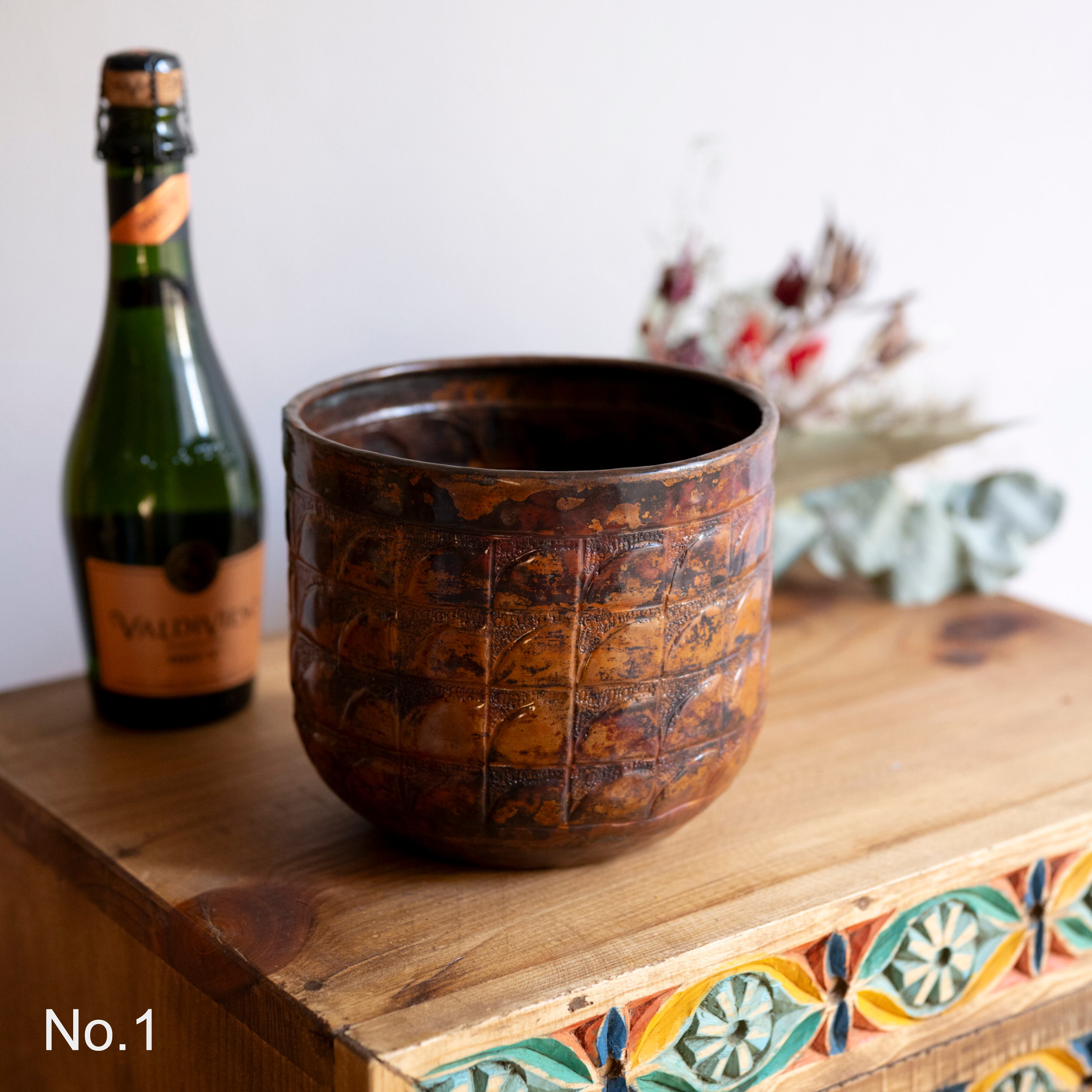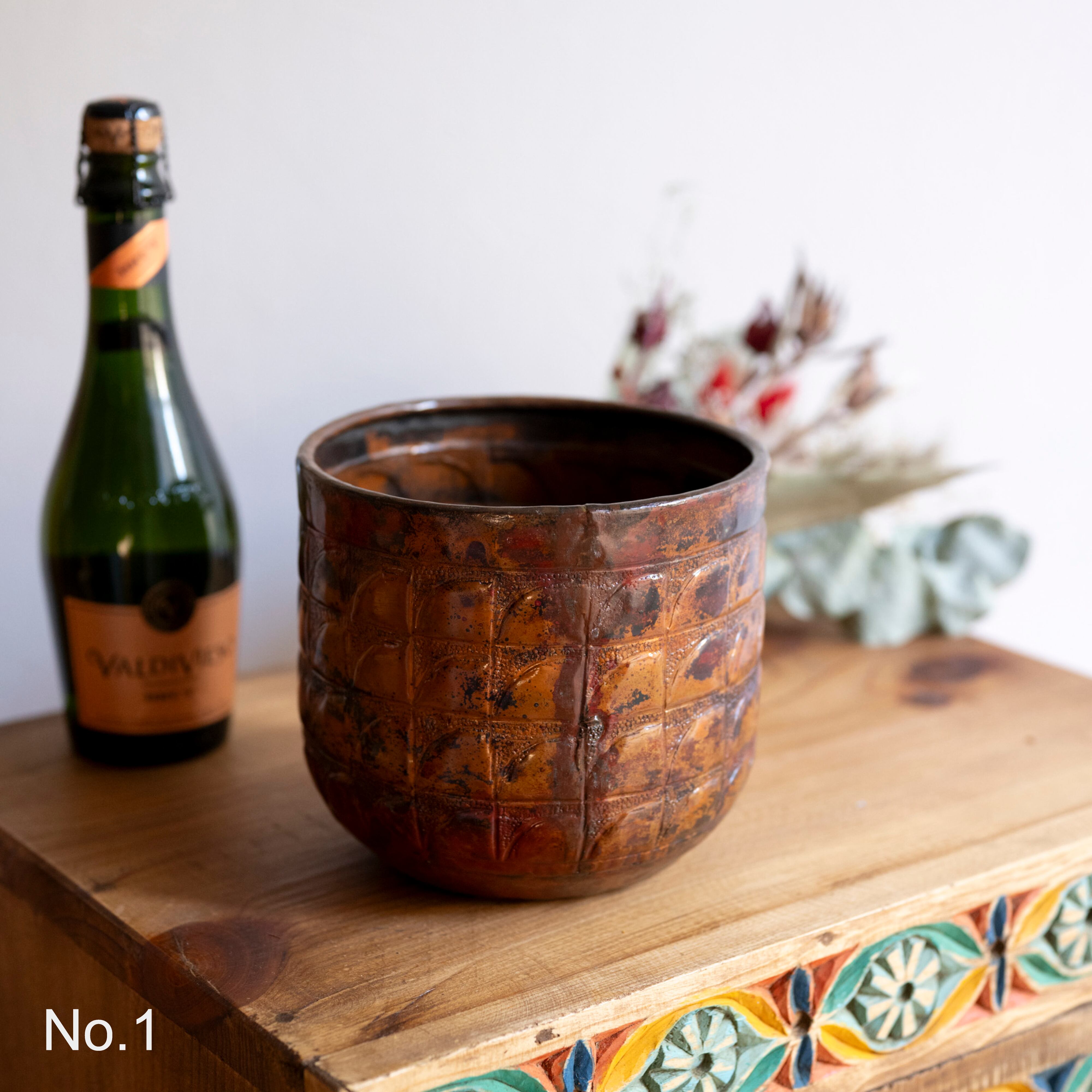 パキスタンの職人が手打ちで槌目(ハンマーで叩いた跡)をつけた鉢カバー。