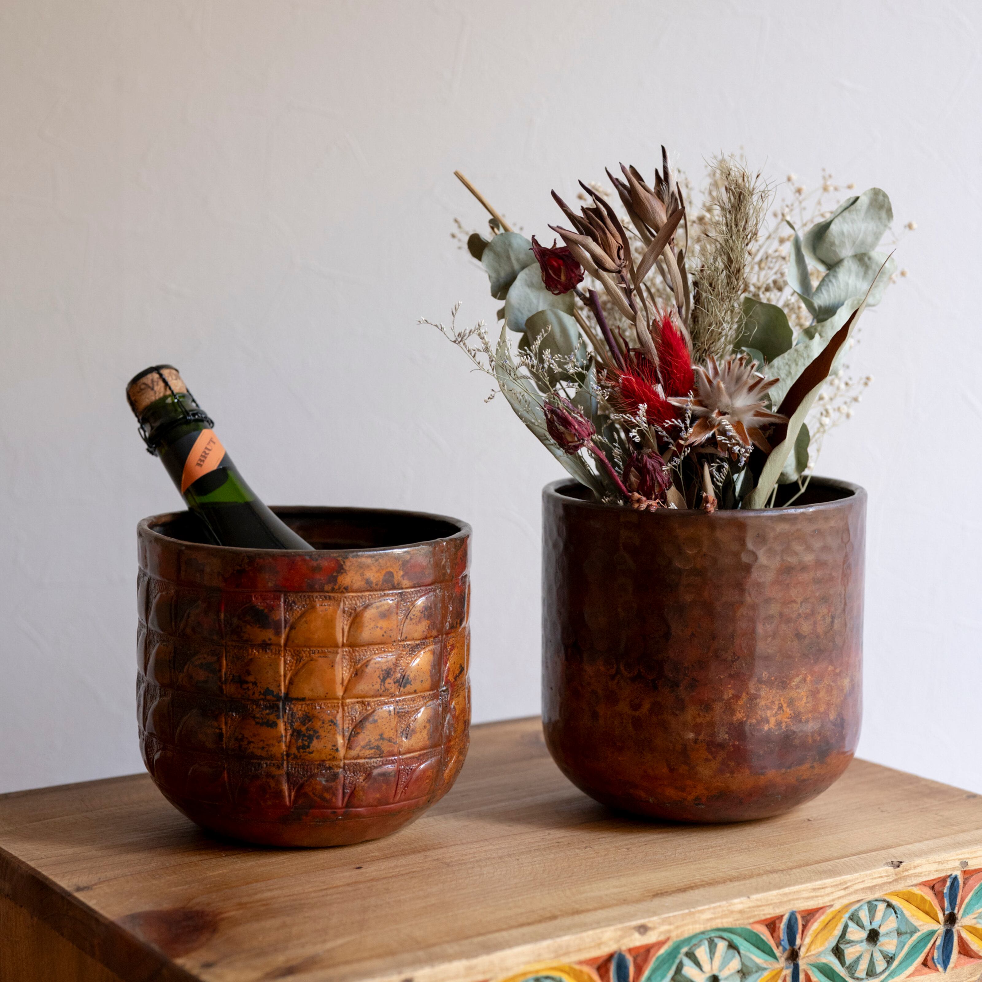 銅の花かごの方は、大きなワインボトルが入ると思いますので、
