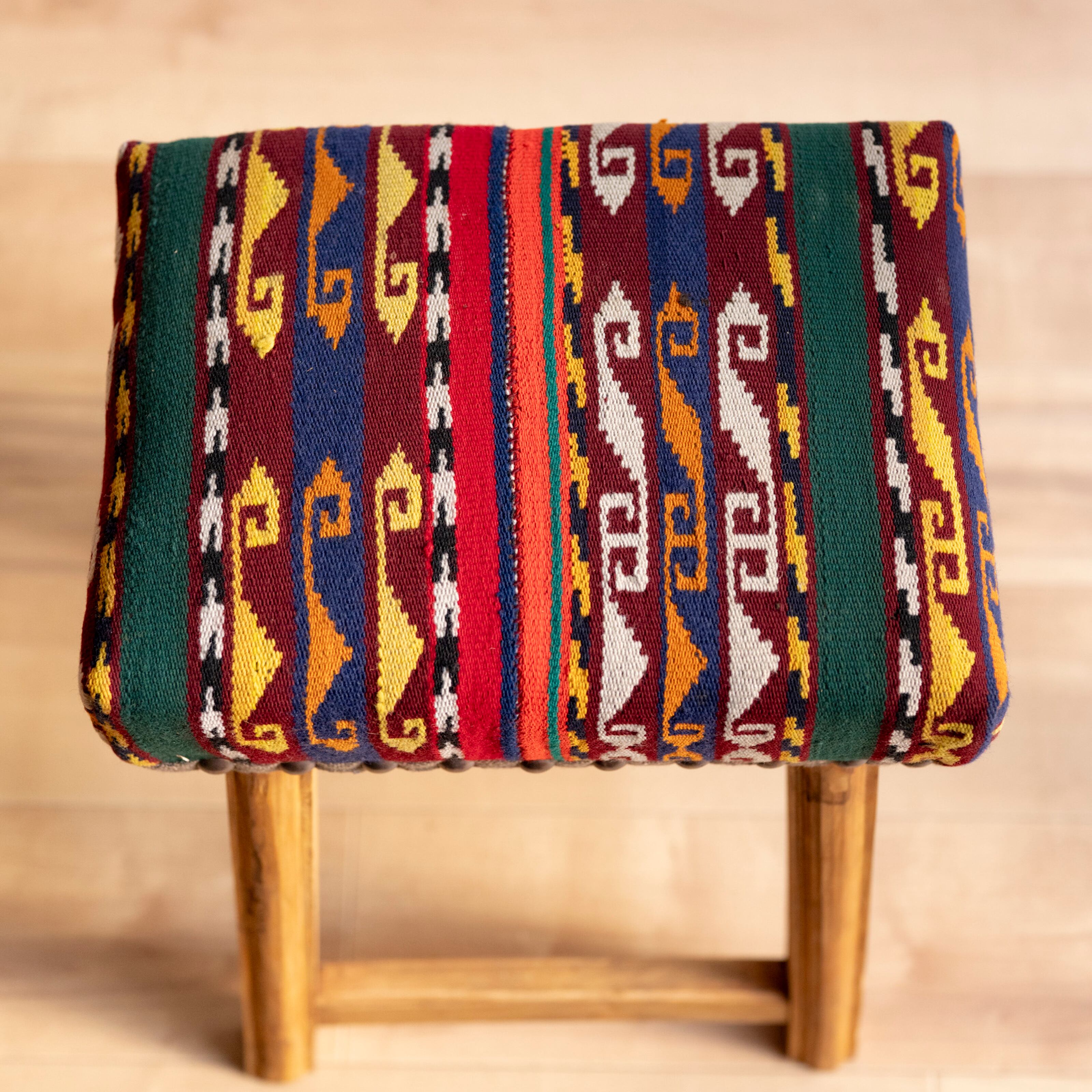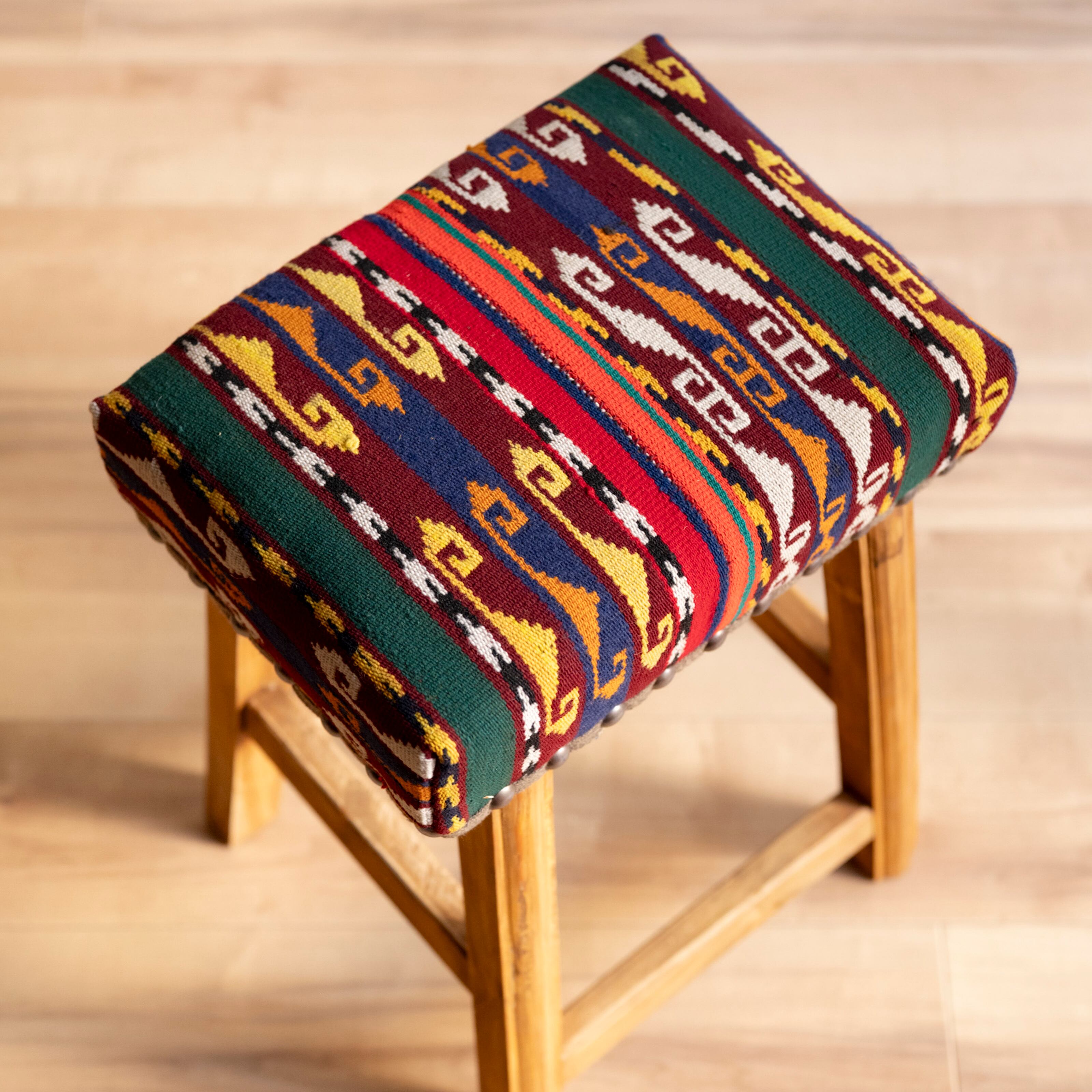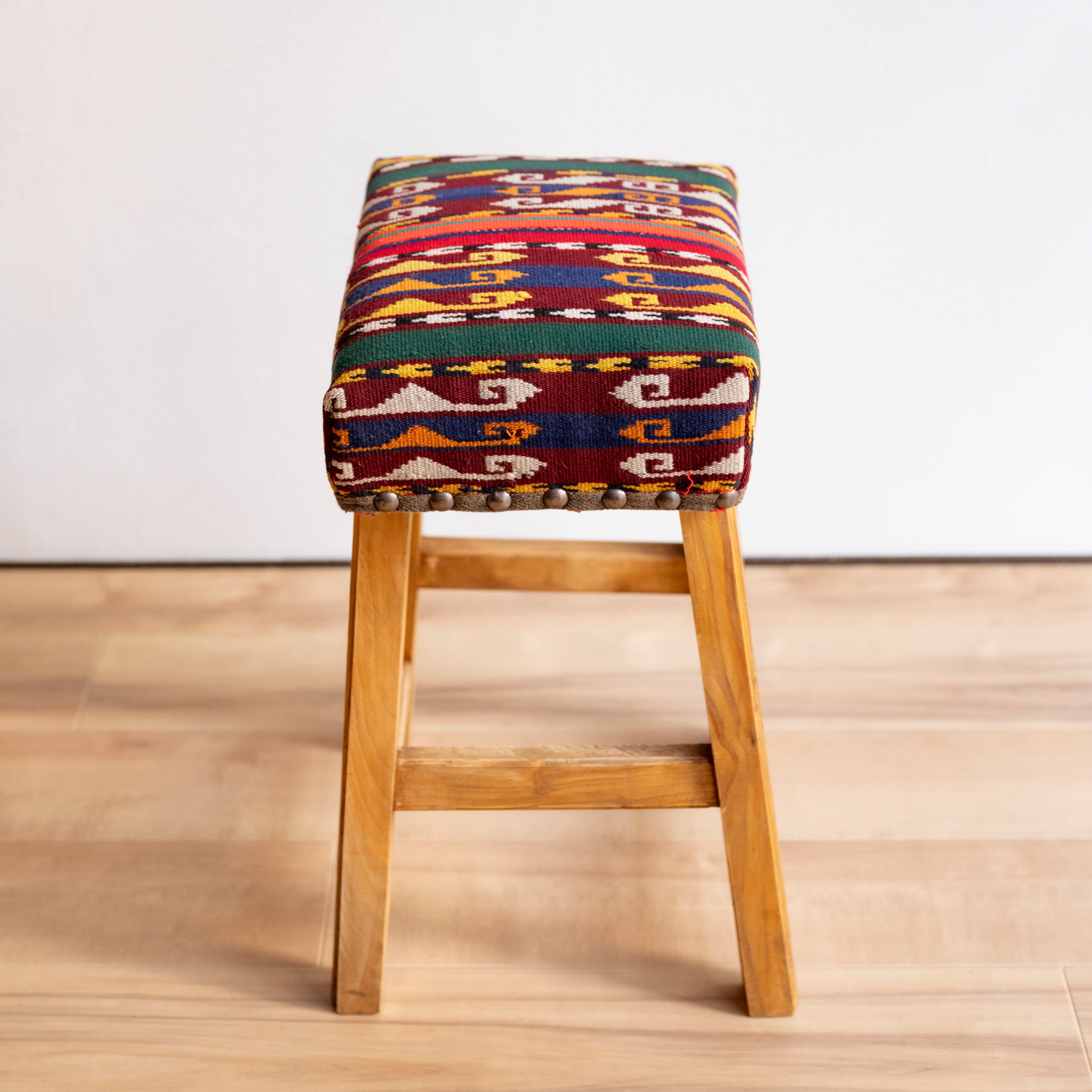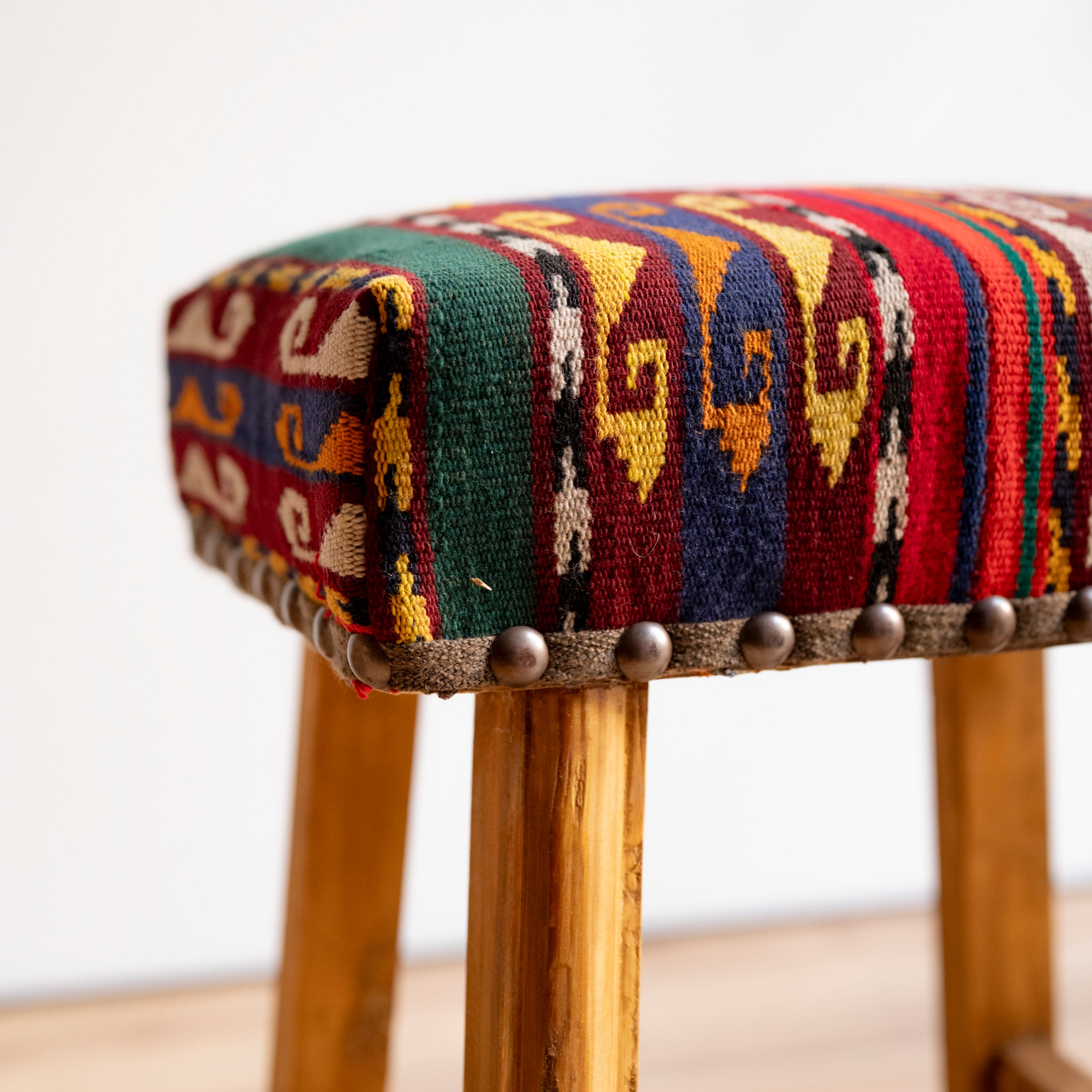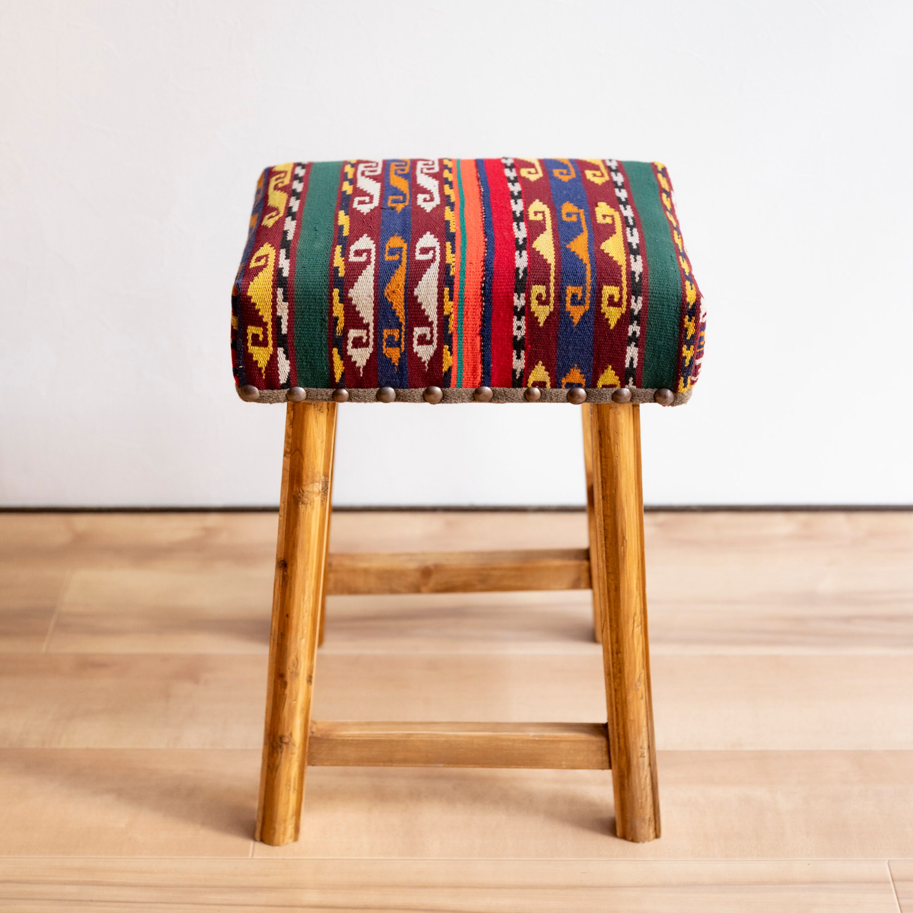 ウール製の手織りキリム(ラグ)を座面にあしらった、パキスタン製の椅子です。