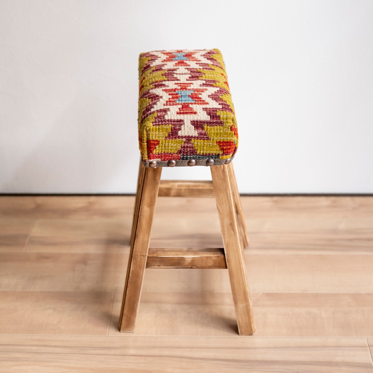 ウール製の手織りキリム(ラグ)を座面にあしらった、パキスタン製の椅子です。