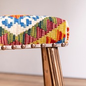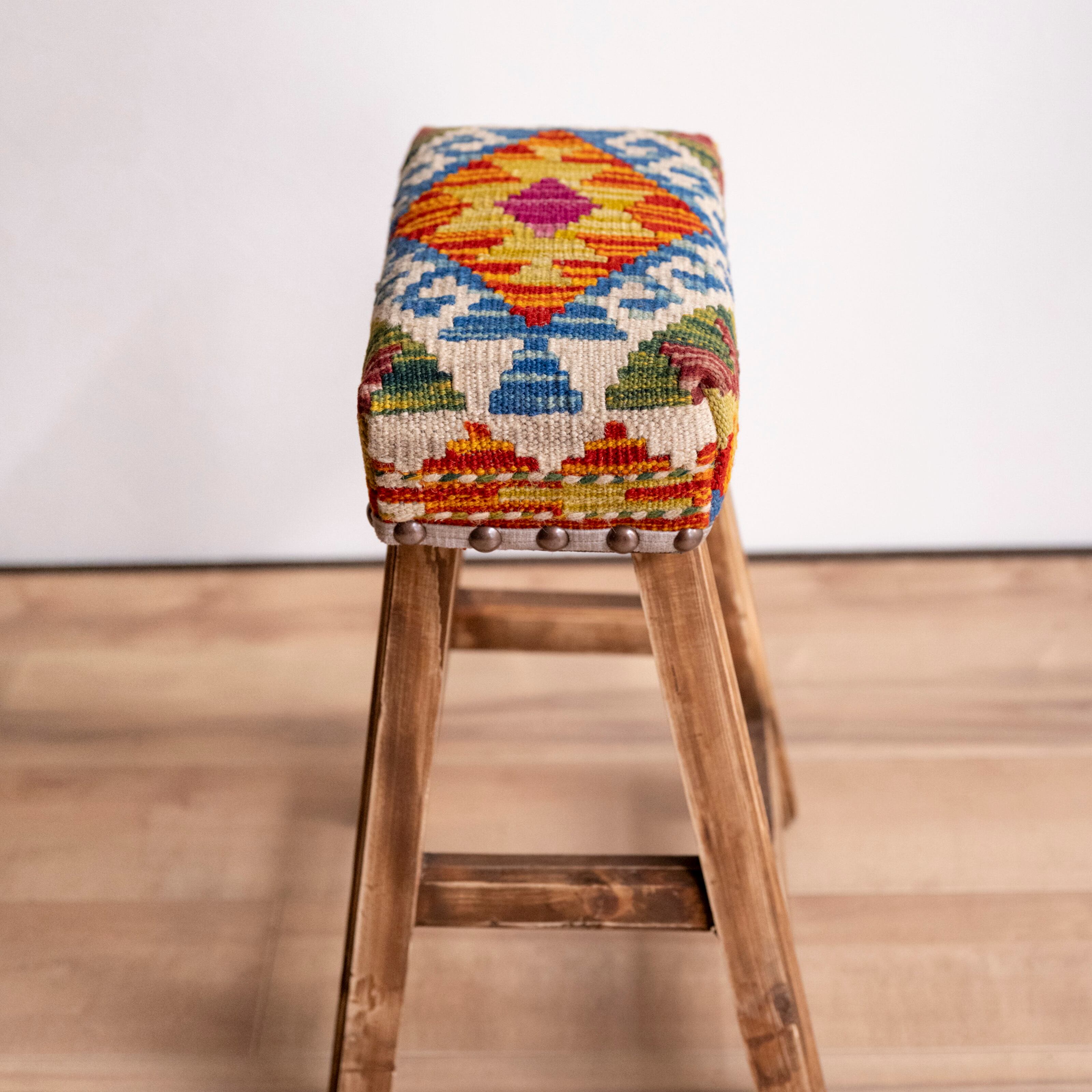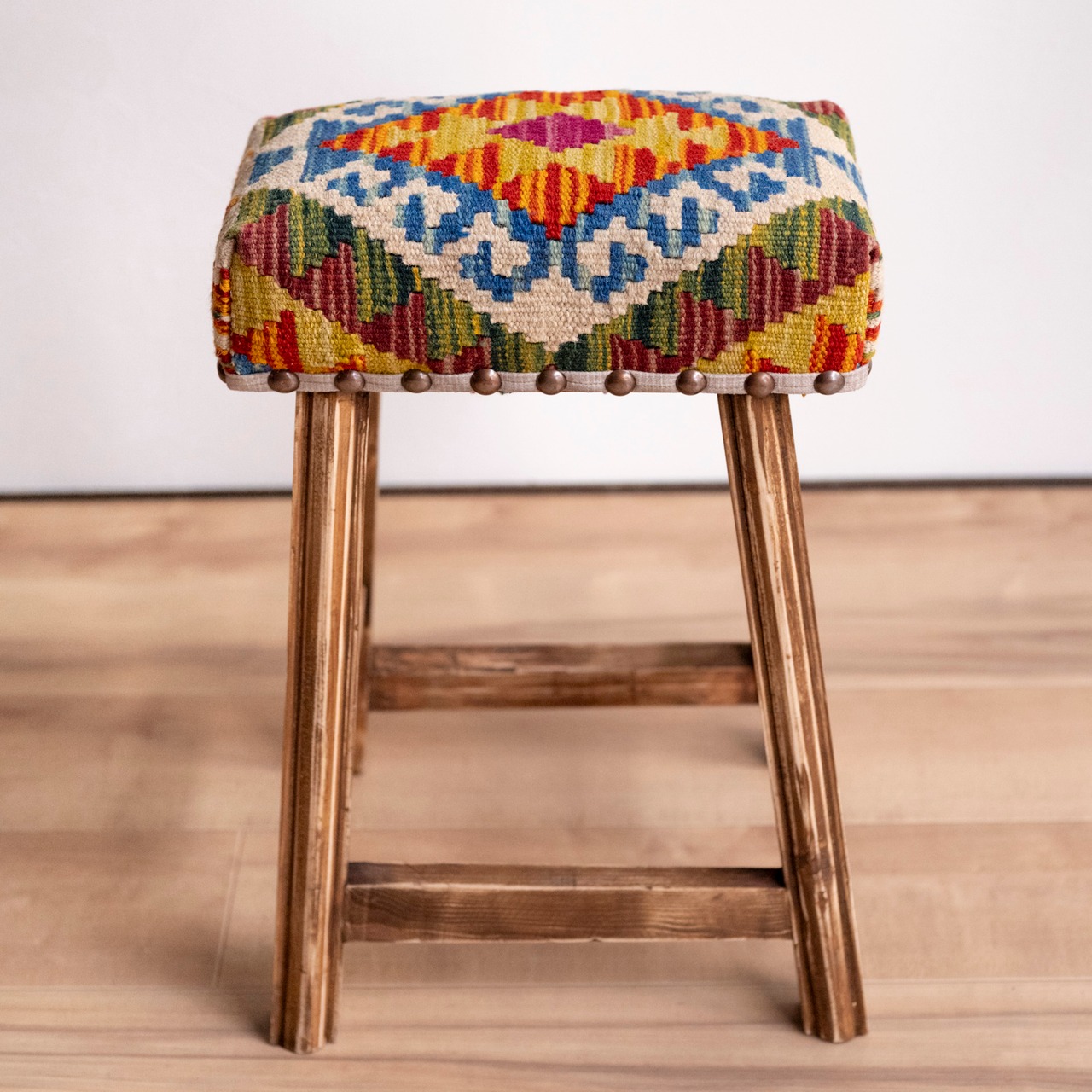 ウール製の手織りキリム(ラグ)を座面にあしらった、パキスタン製の椅子です。