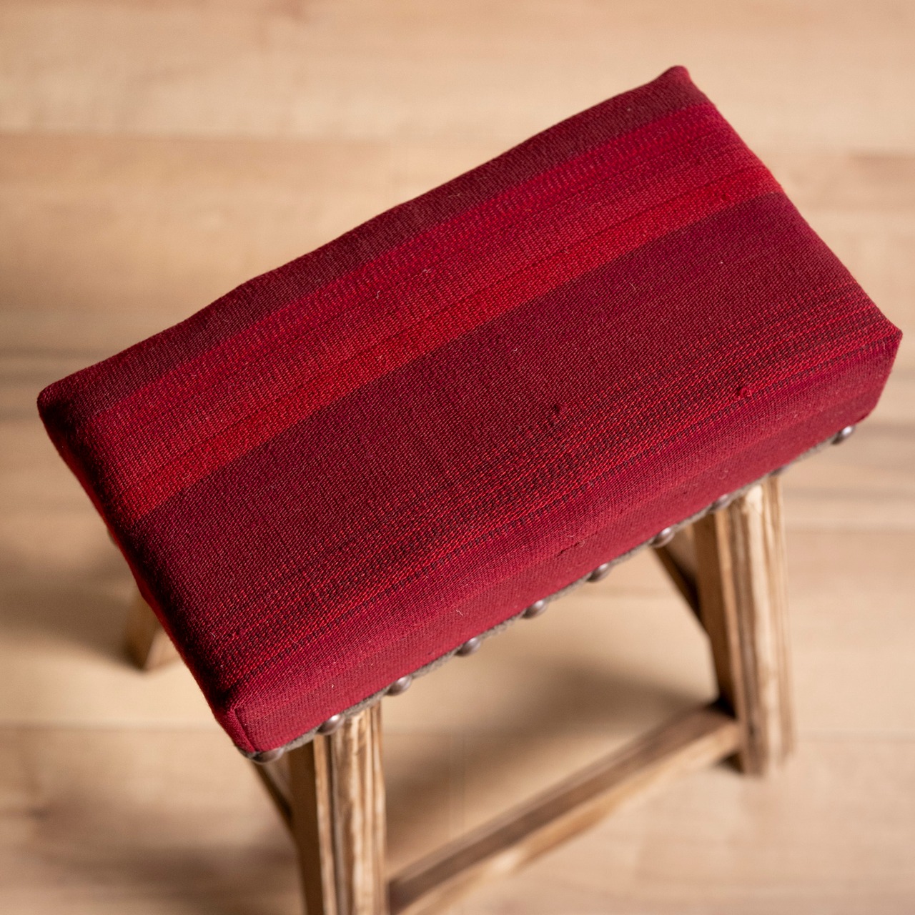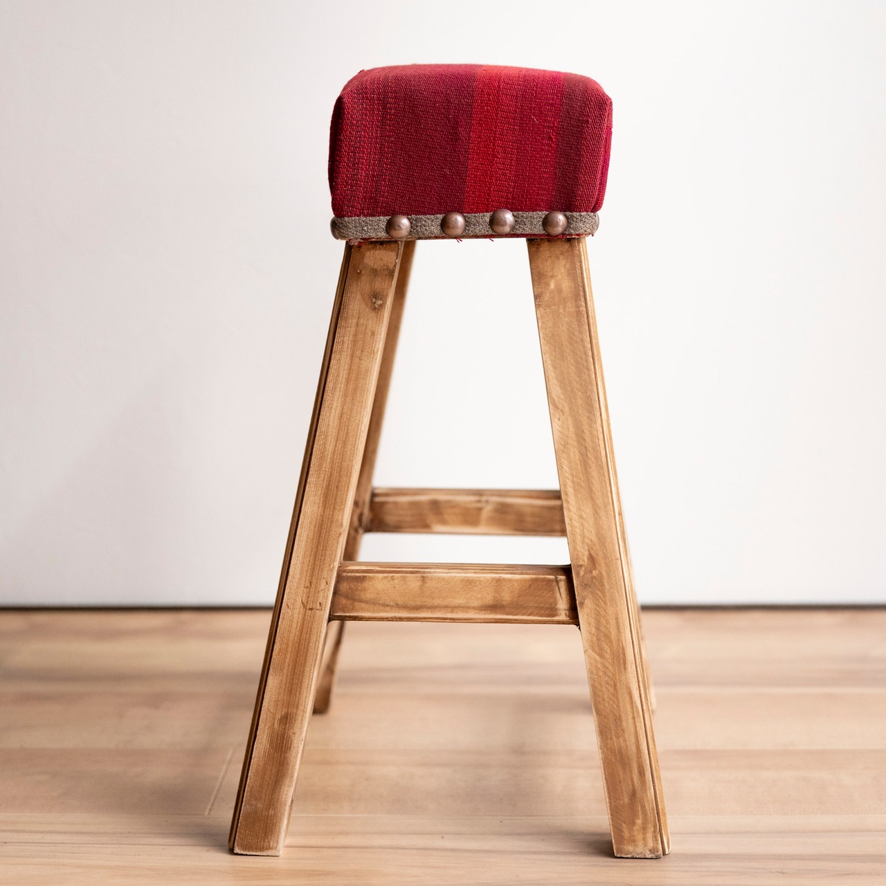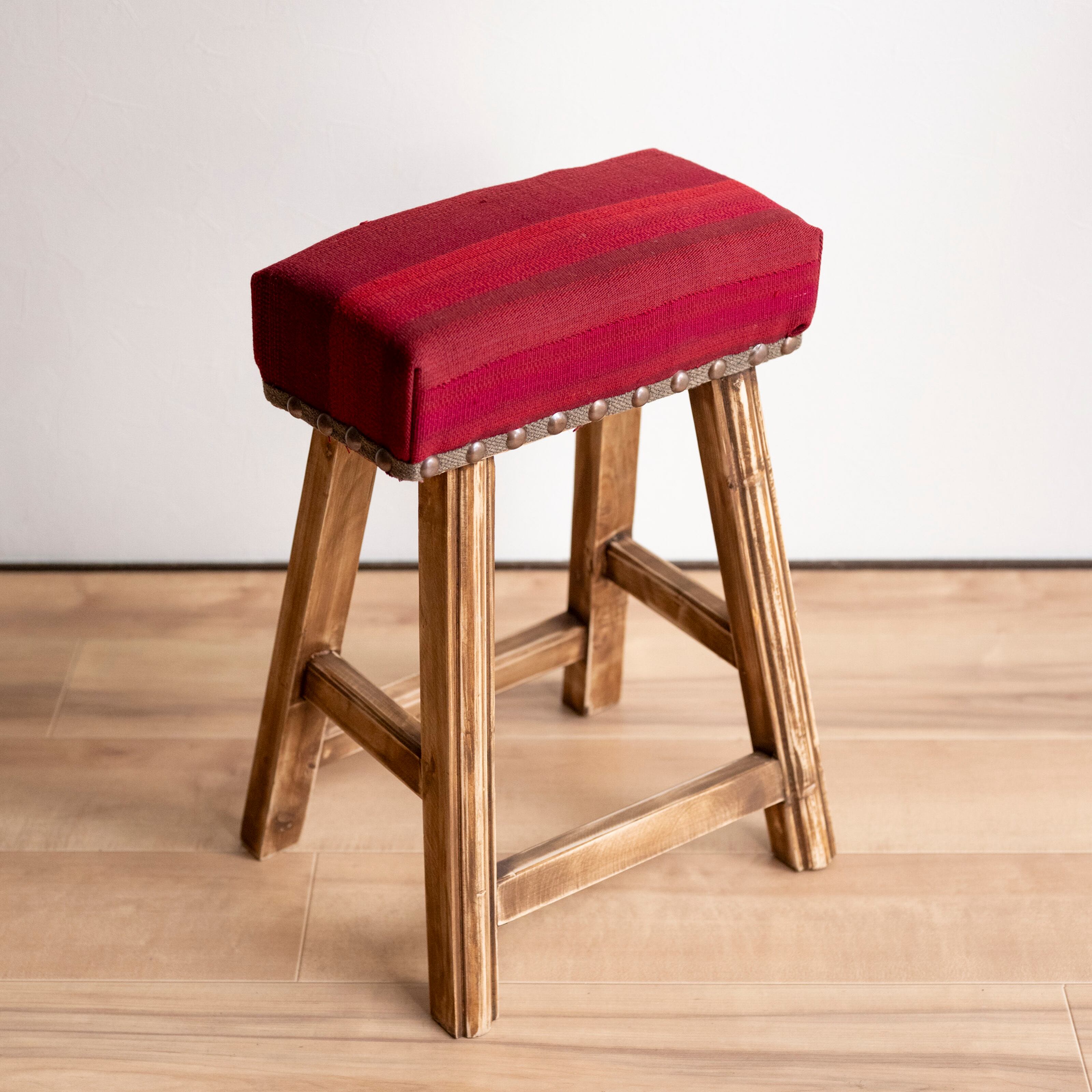 ウール製の手織りキリム(ラグ)を座面にあしらった、パキスタン製の椅子です。