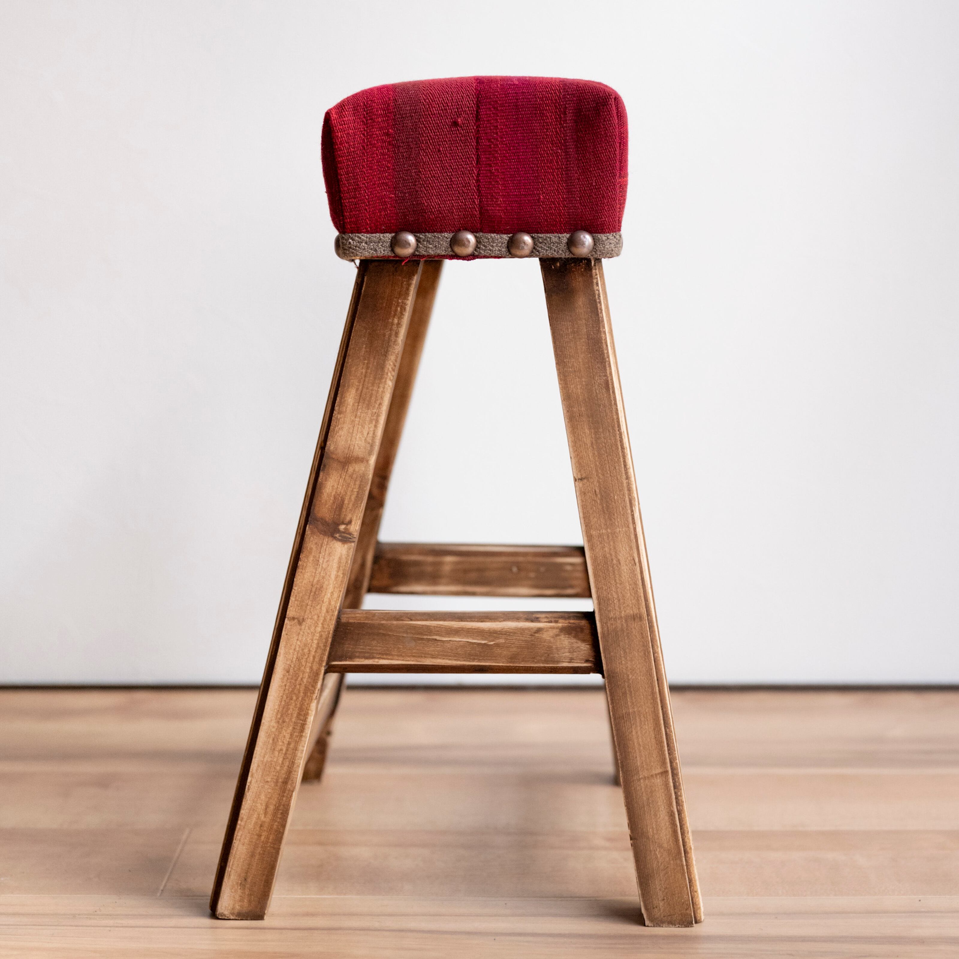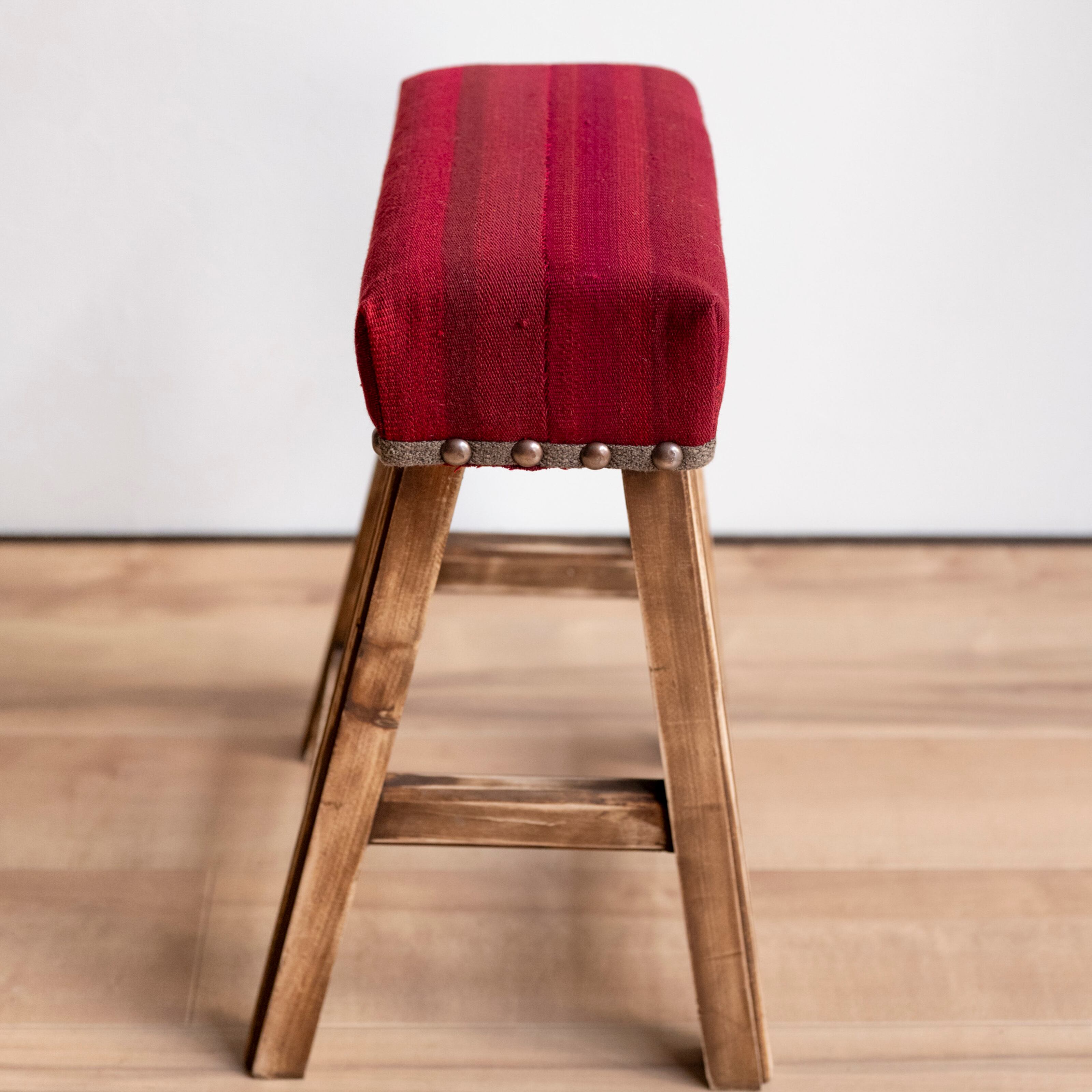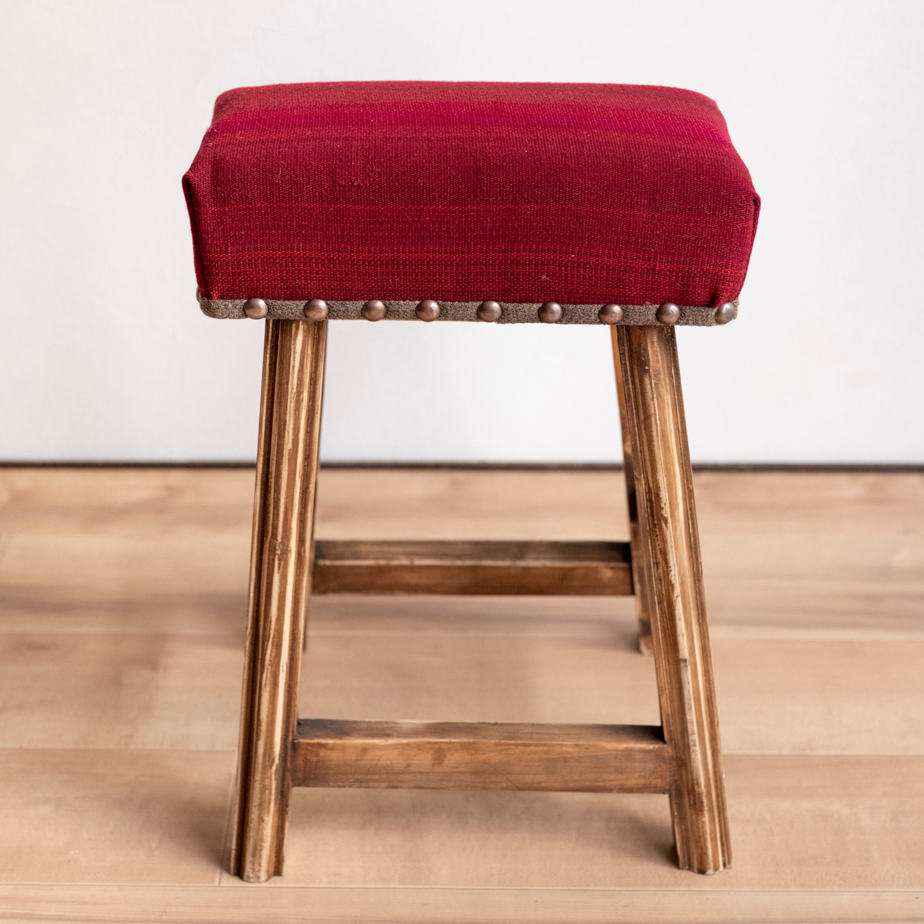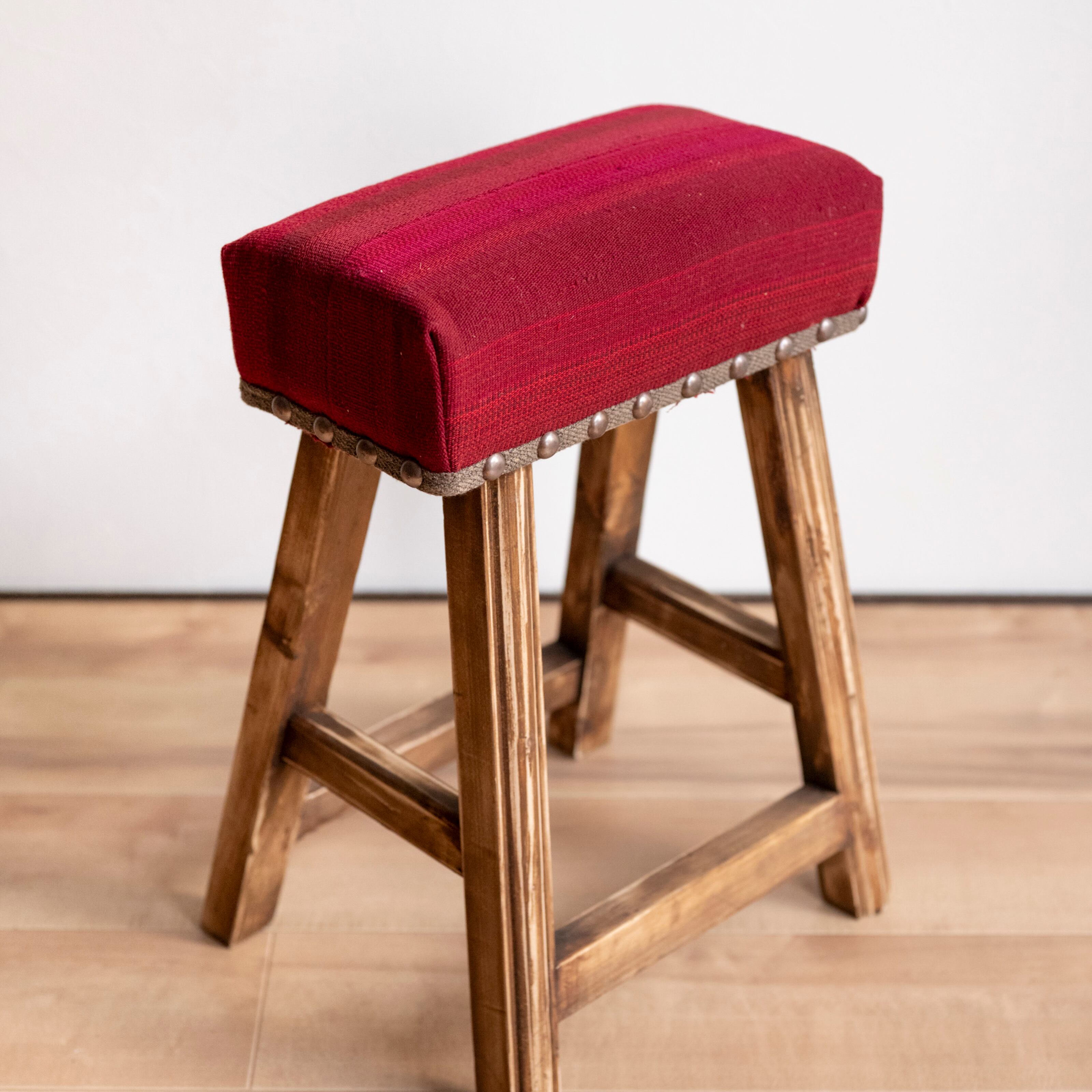 ウール製の手織りキリム(ラグ)を座面にあしらった、パキスタン製の椅子です。