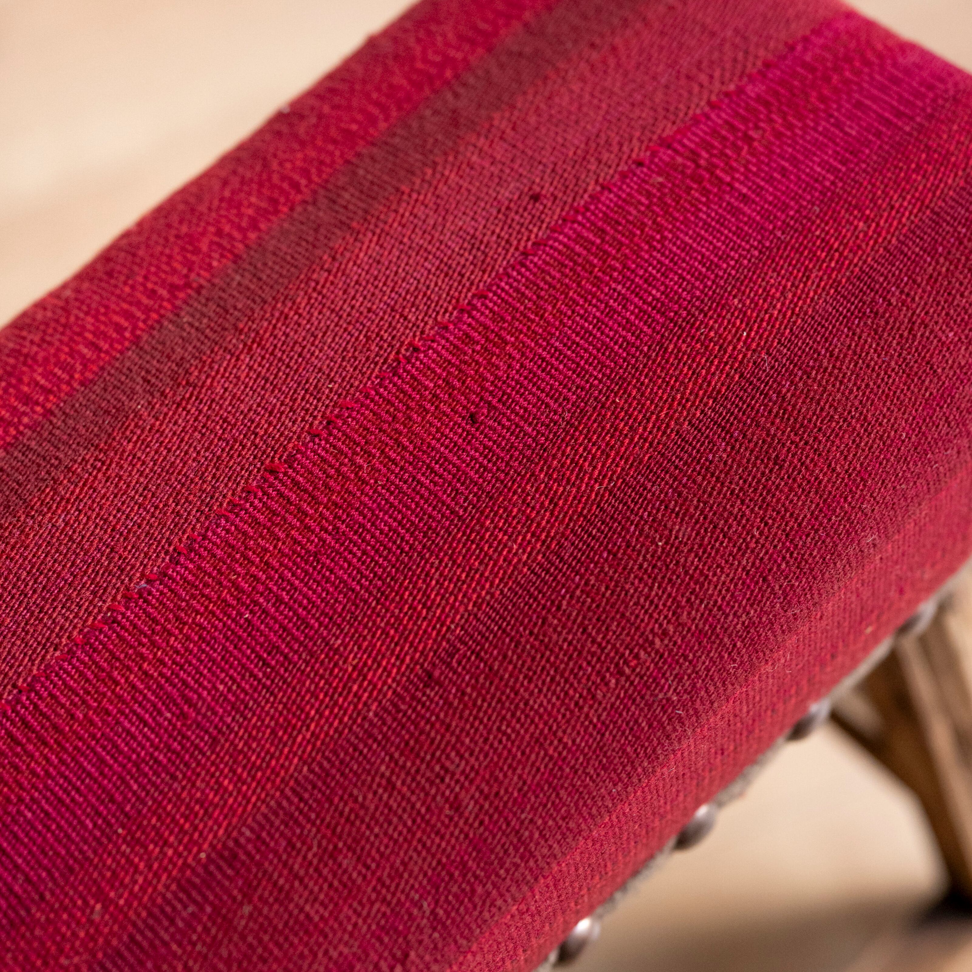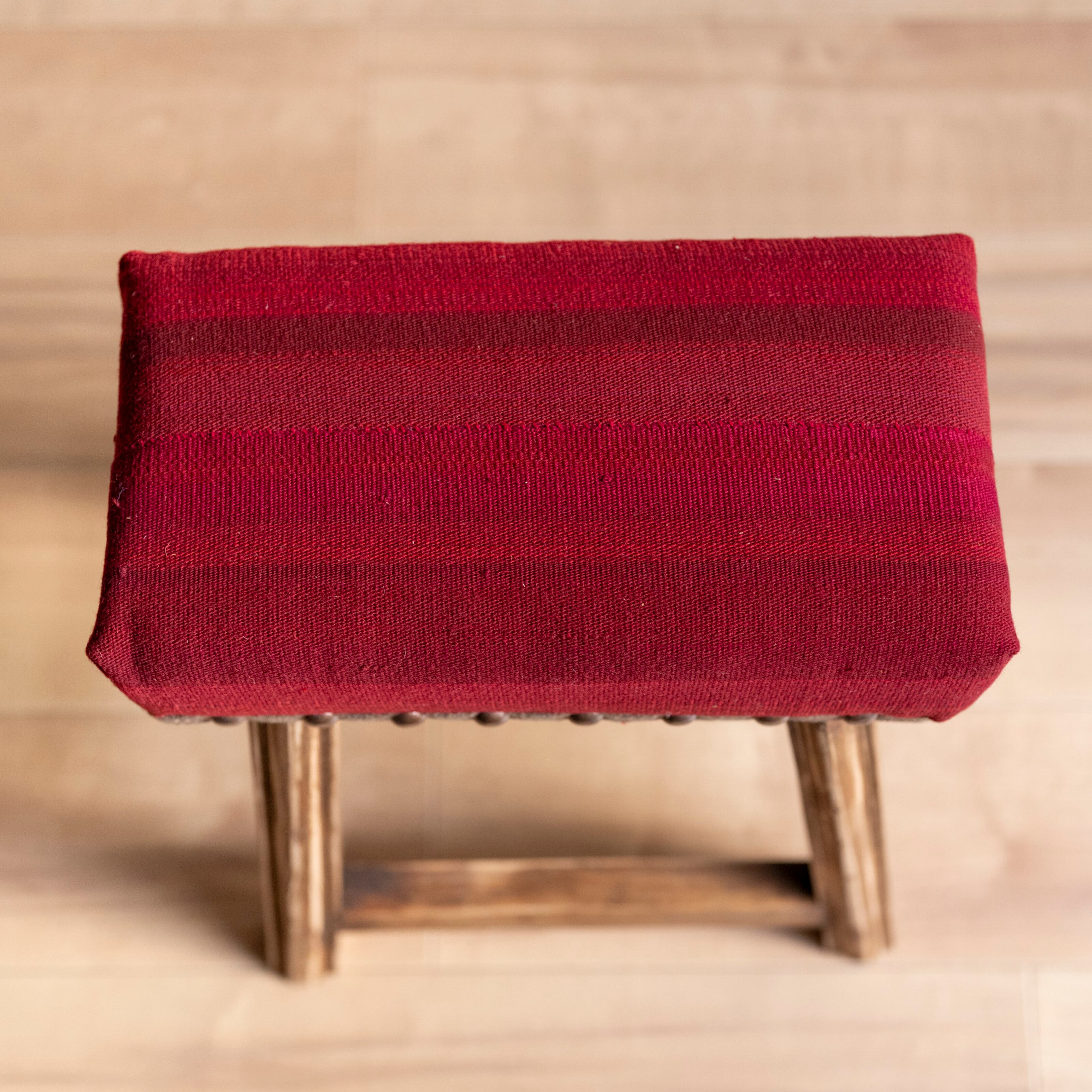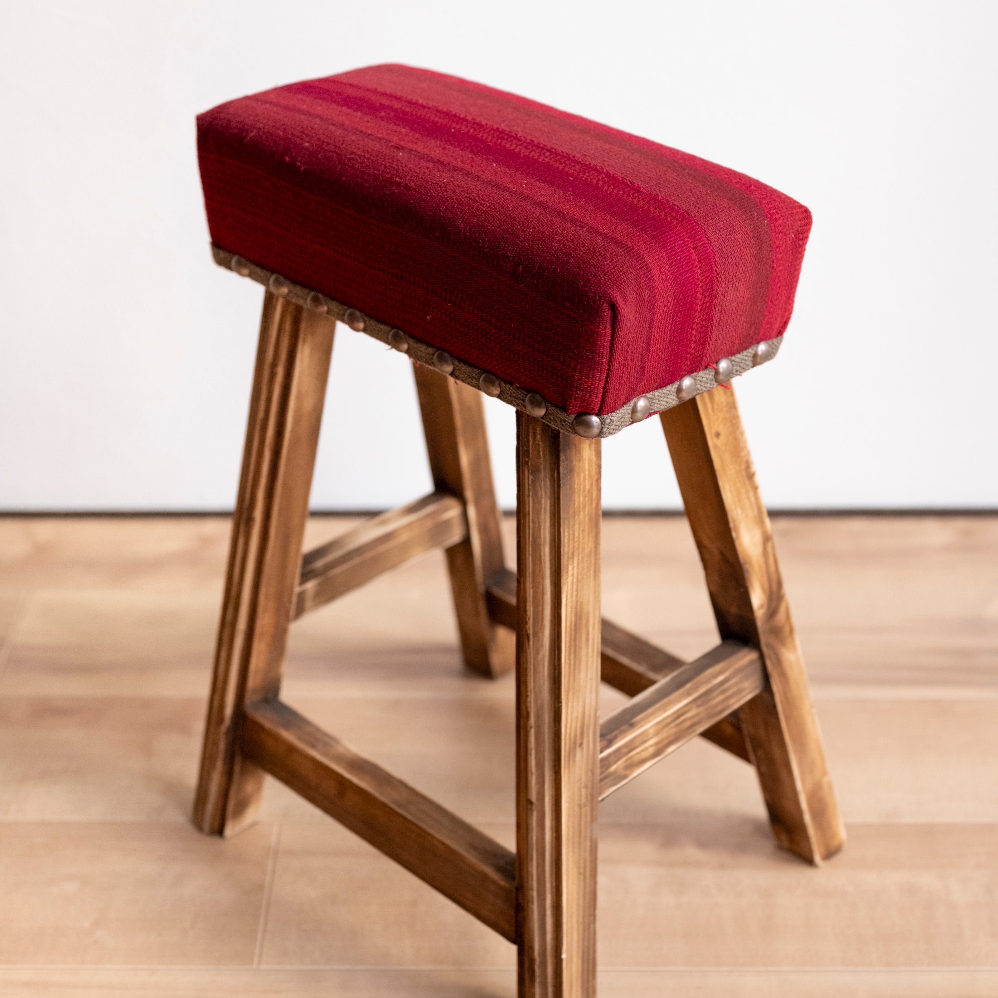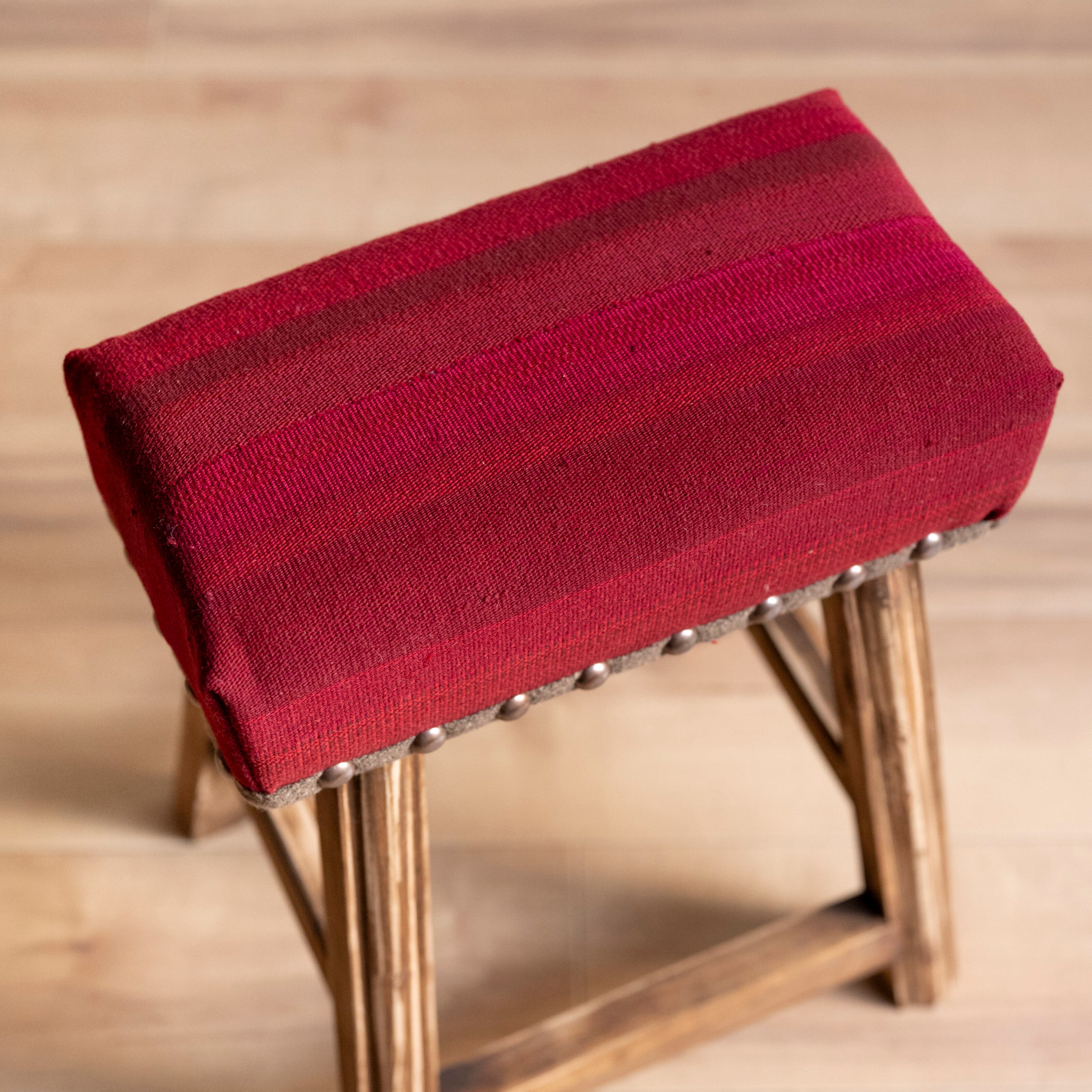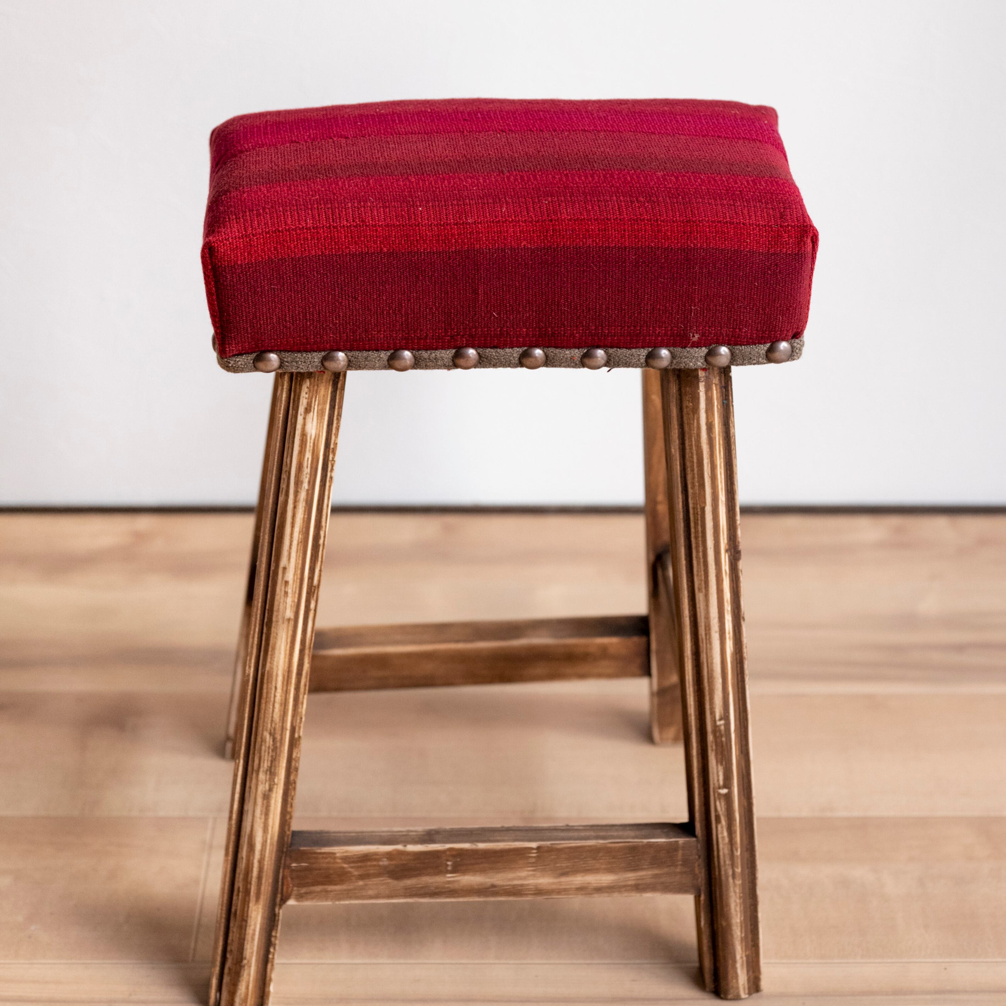 ウール製の手織りキリム(ラグ)を座面にあしらった、パキスタン製の椅子です。