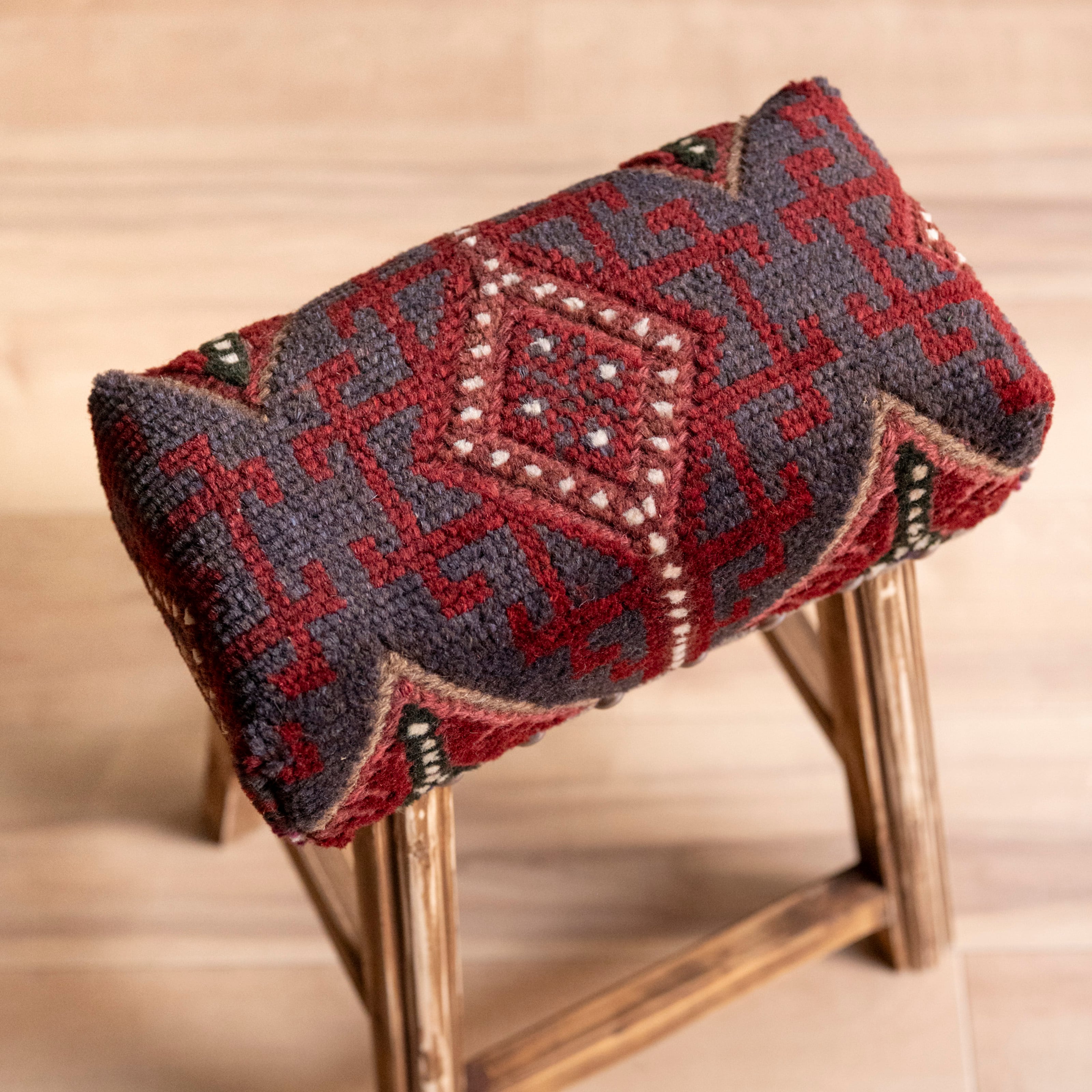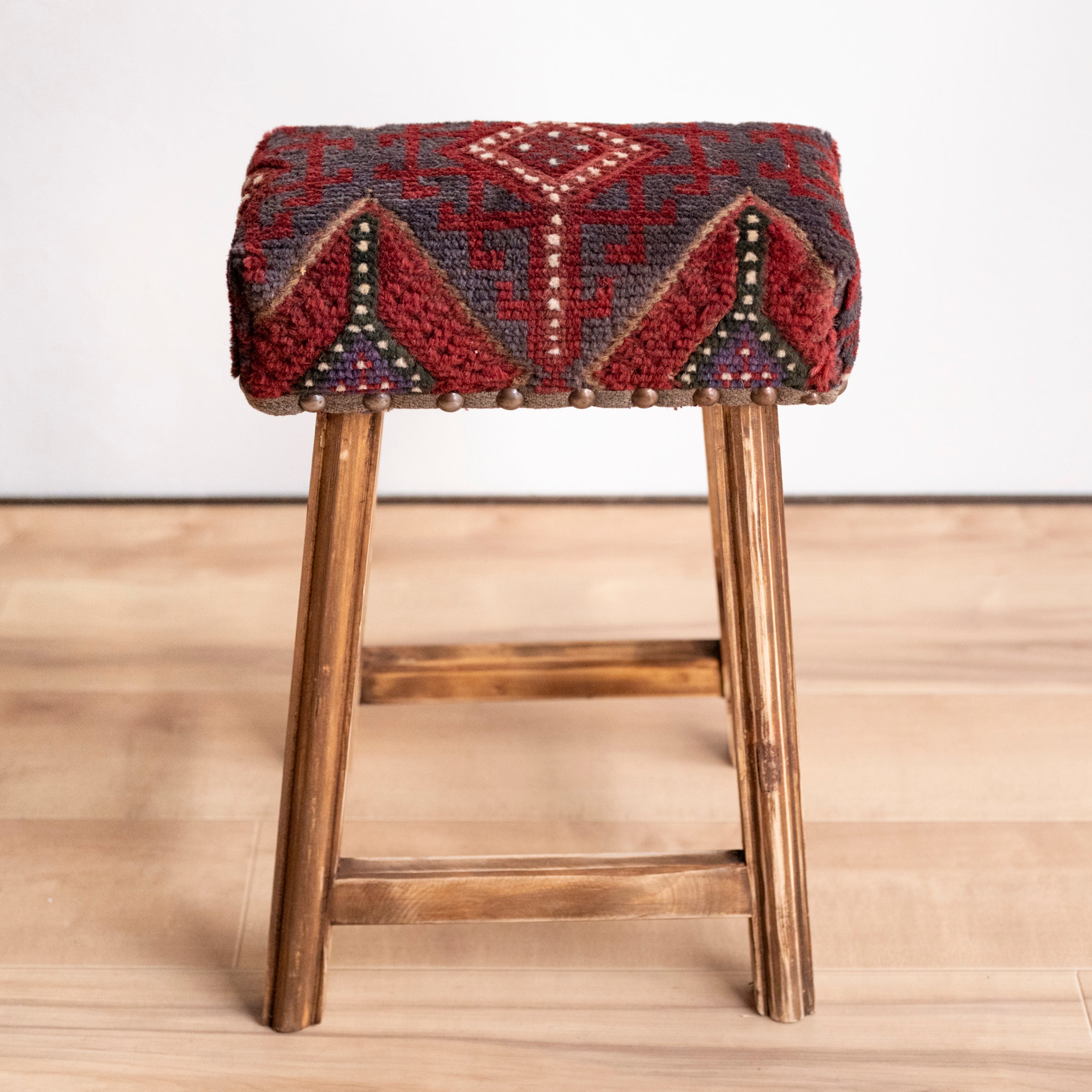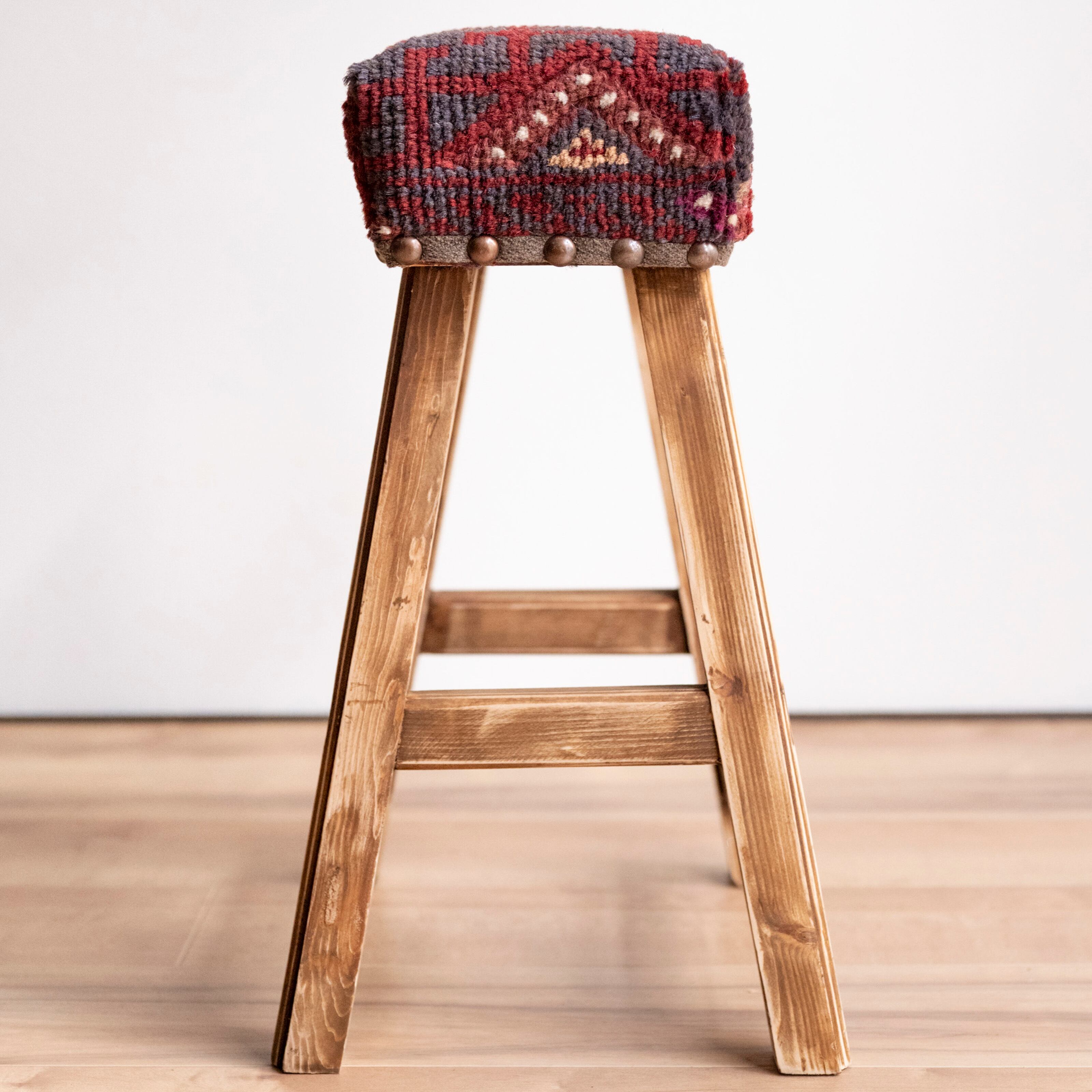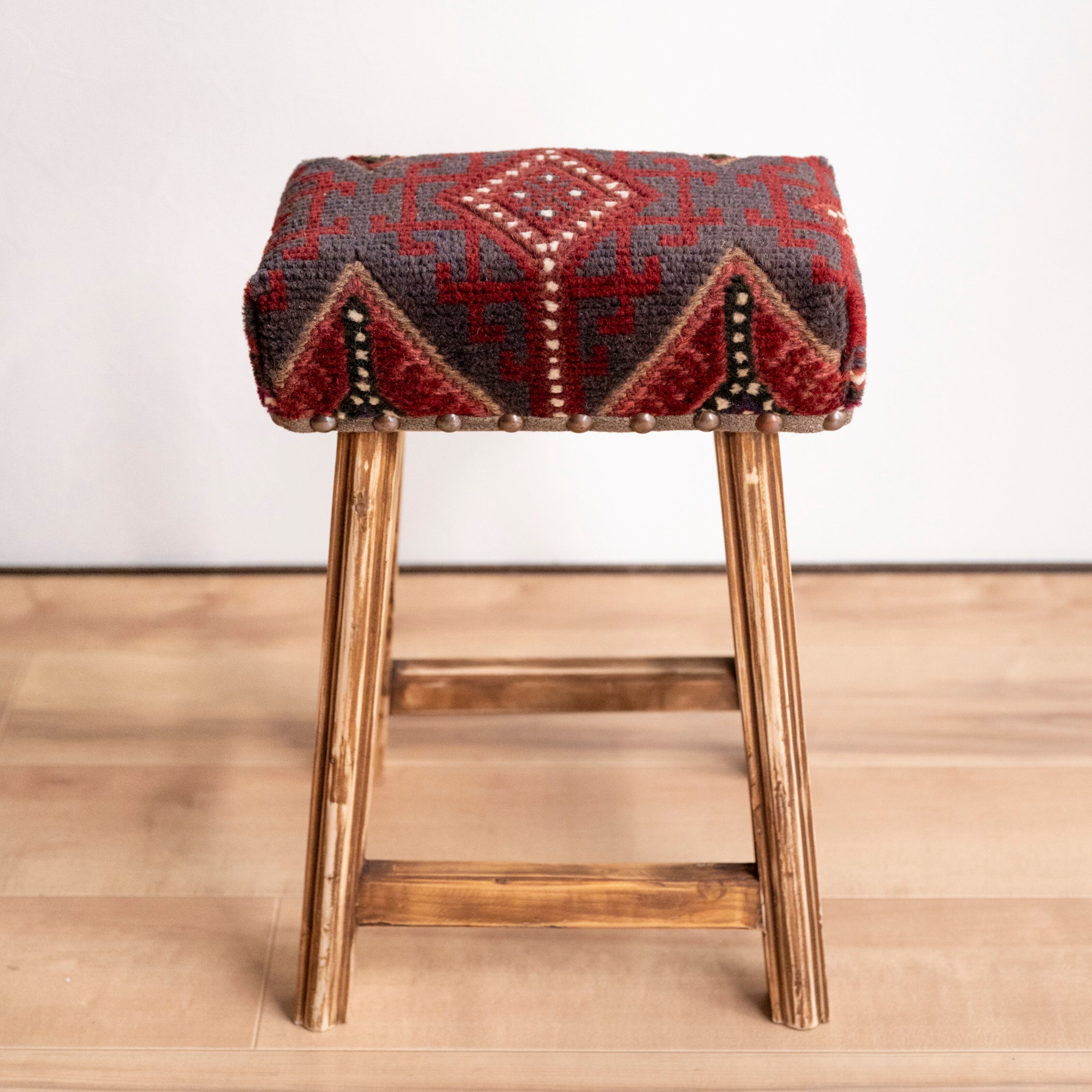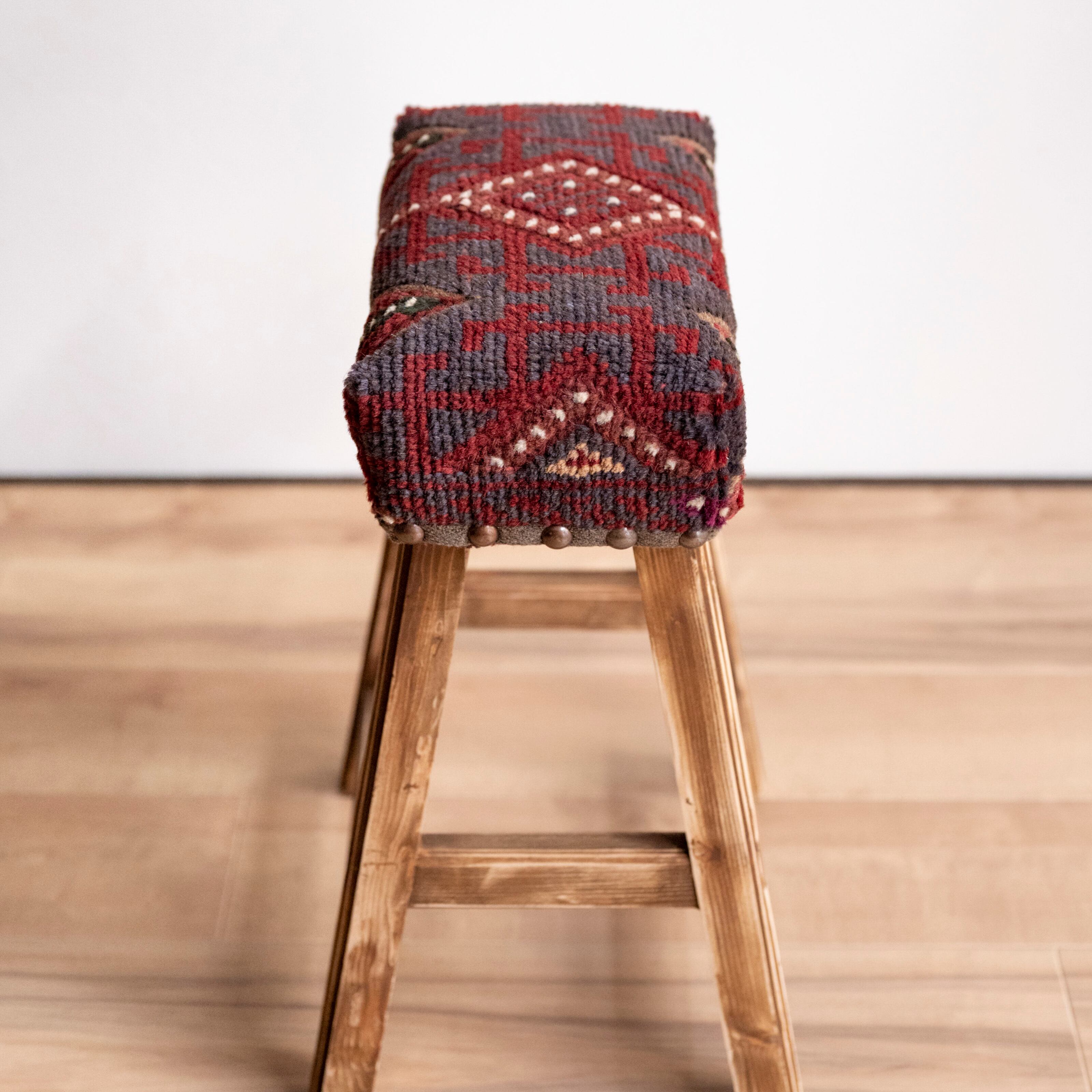 ウール製の手織り絨毯(他の椅子と異なり、毛足が外に出る絨毯の織り方です)を
