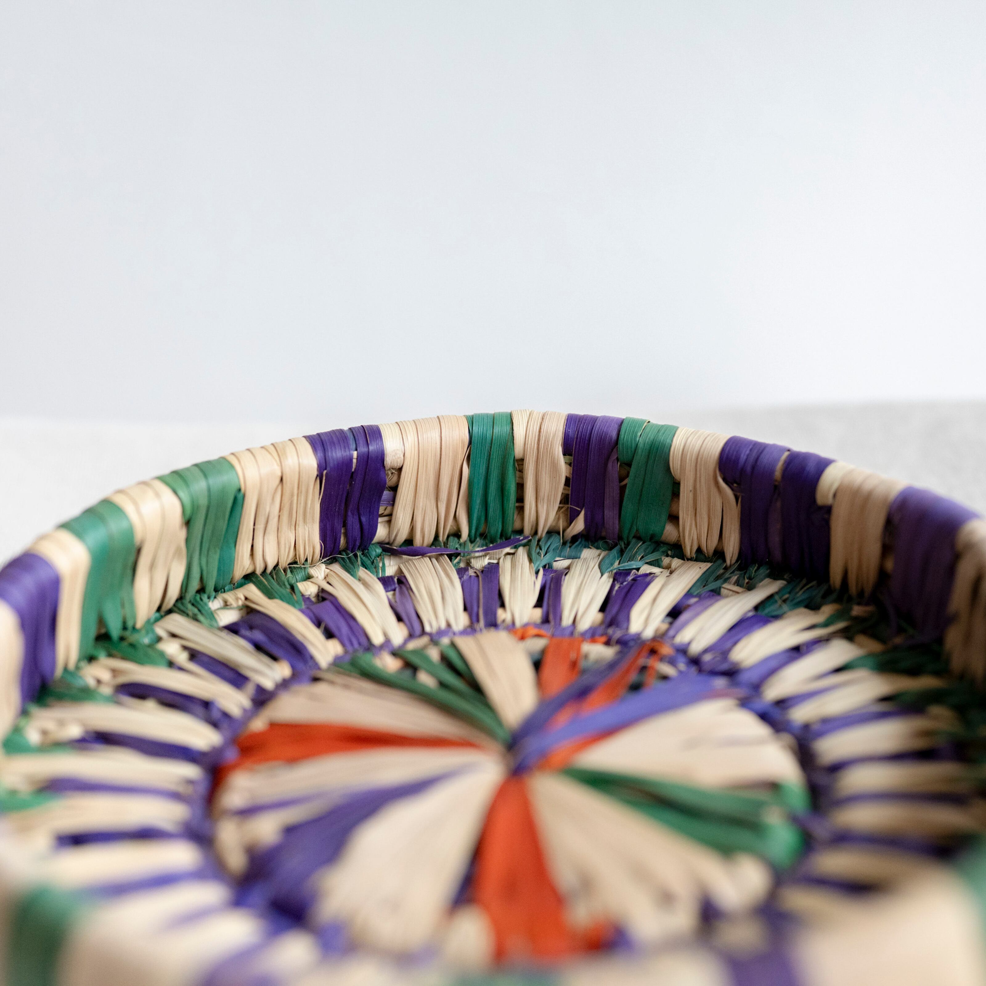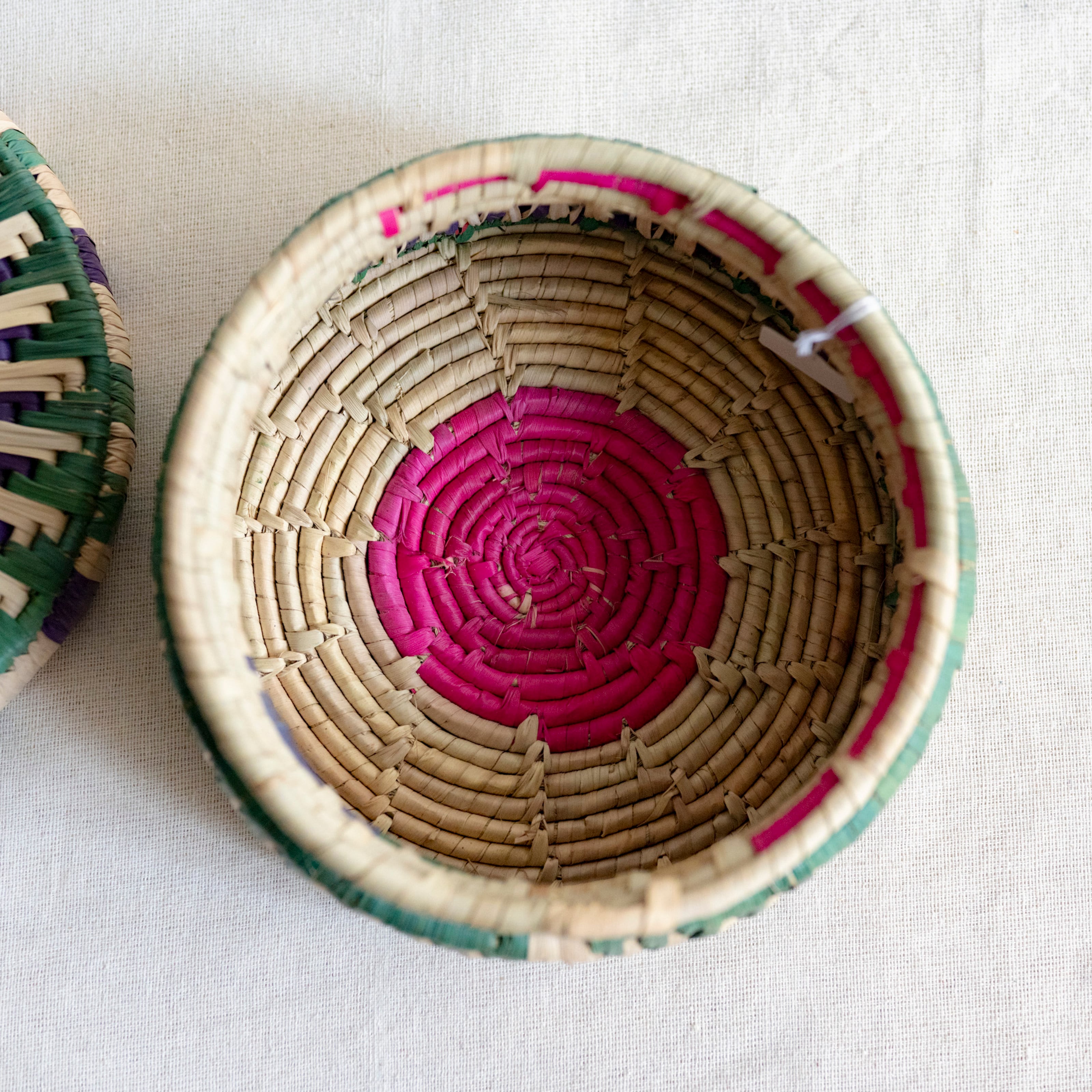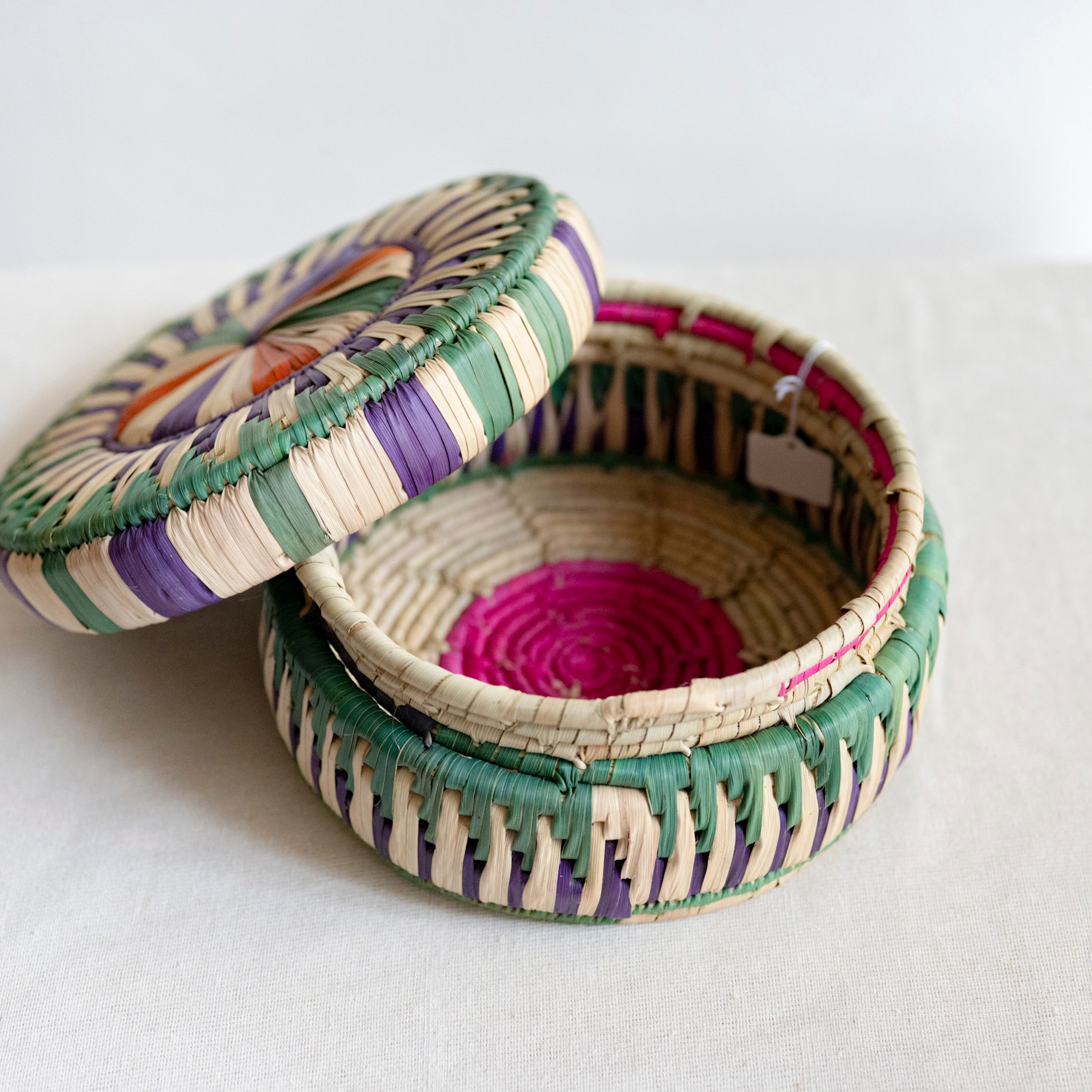 カラフルなパキスタンのかごシリーズの、フタ付きのデザインです。