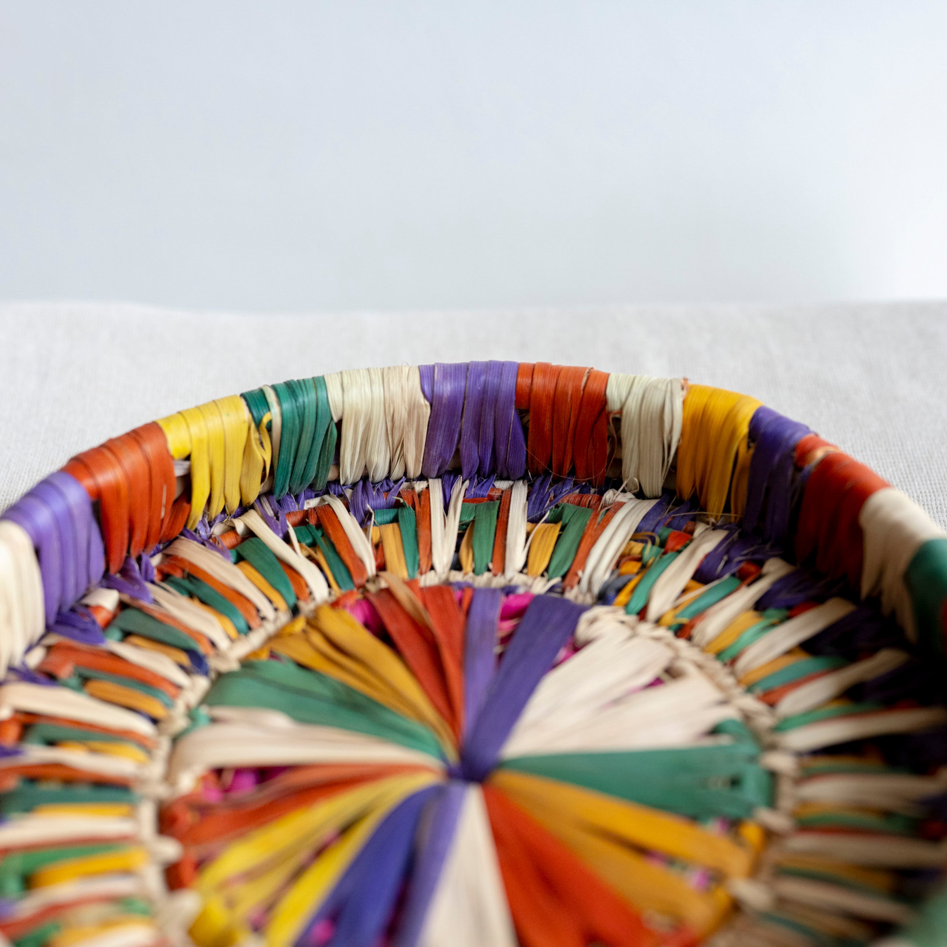 その葉っぱを数日置いて乾燥させ、色を染め、手で編んだのが、このかごです。