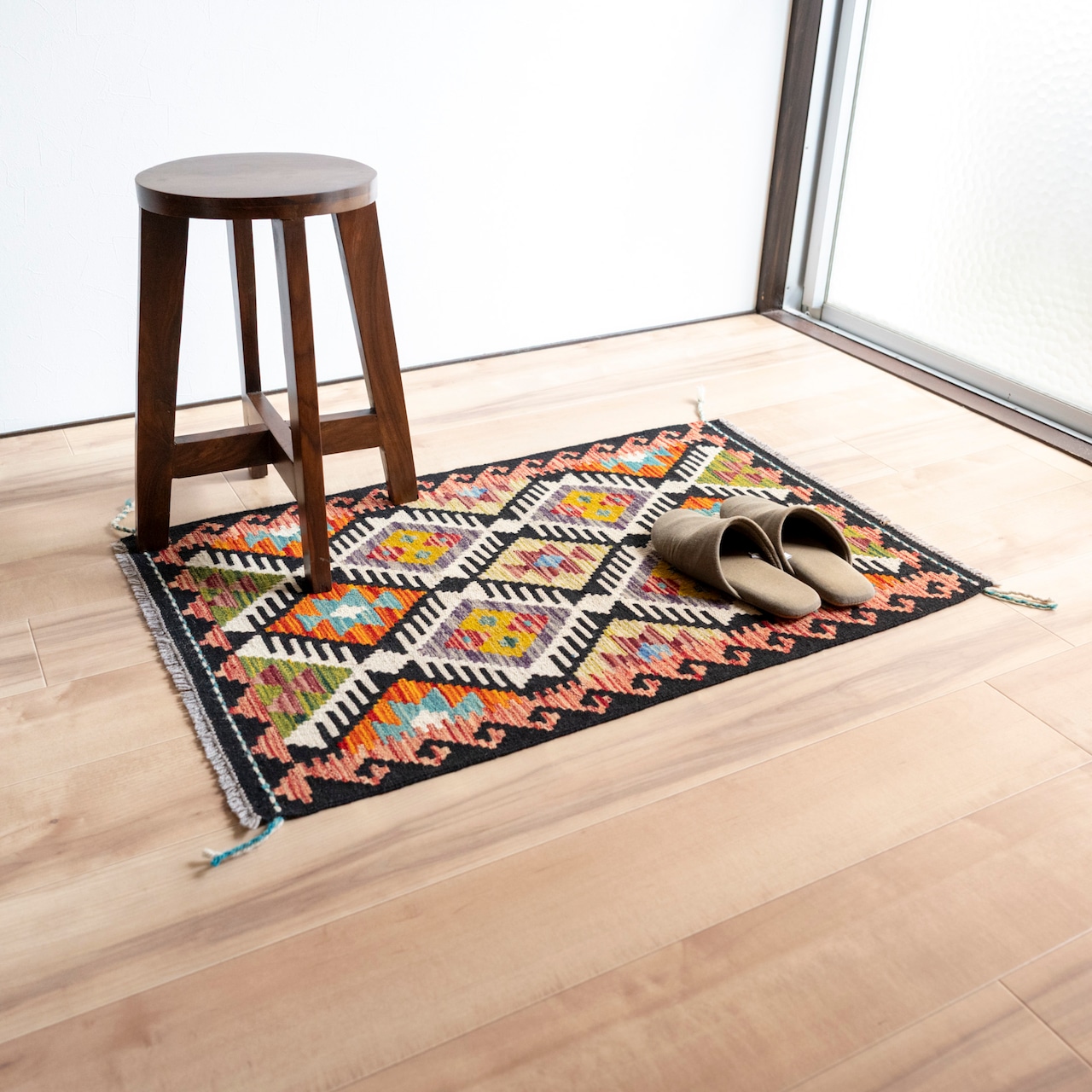 MONDAYのお店で玄関マットとして使っているキリムラグは、
