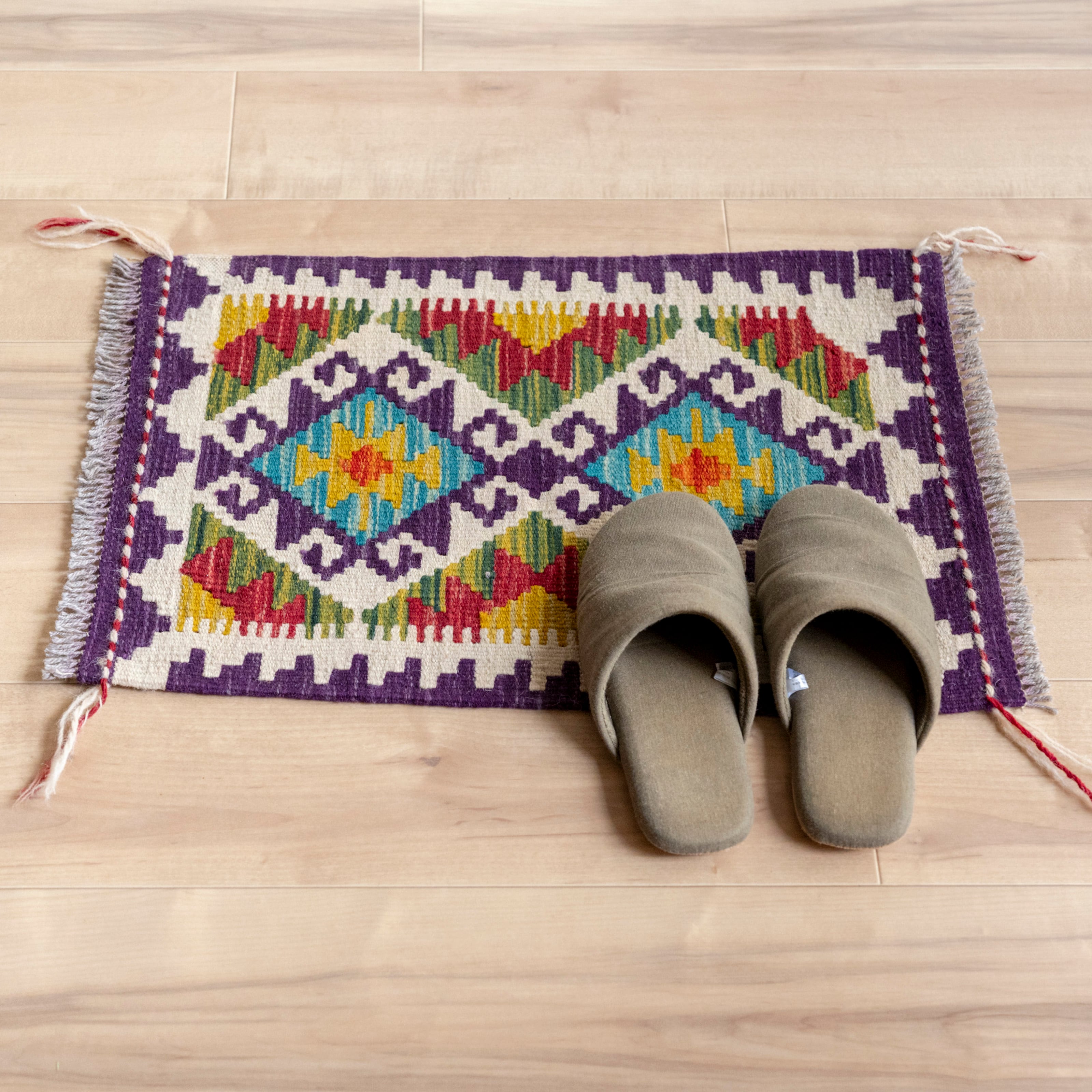初めて素足でキリムに足をのせると、ちょっとゴワゴワした印象があるかもしれません。