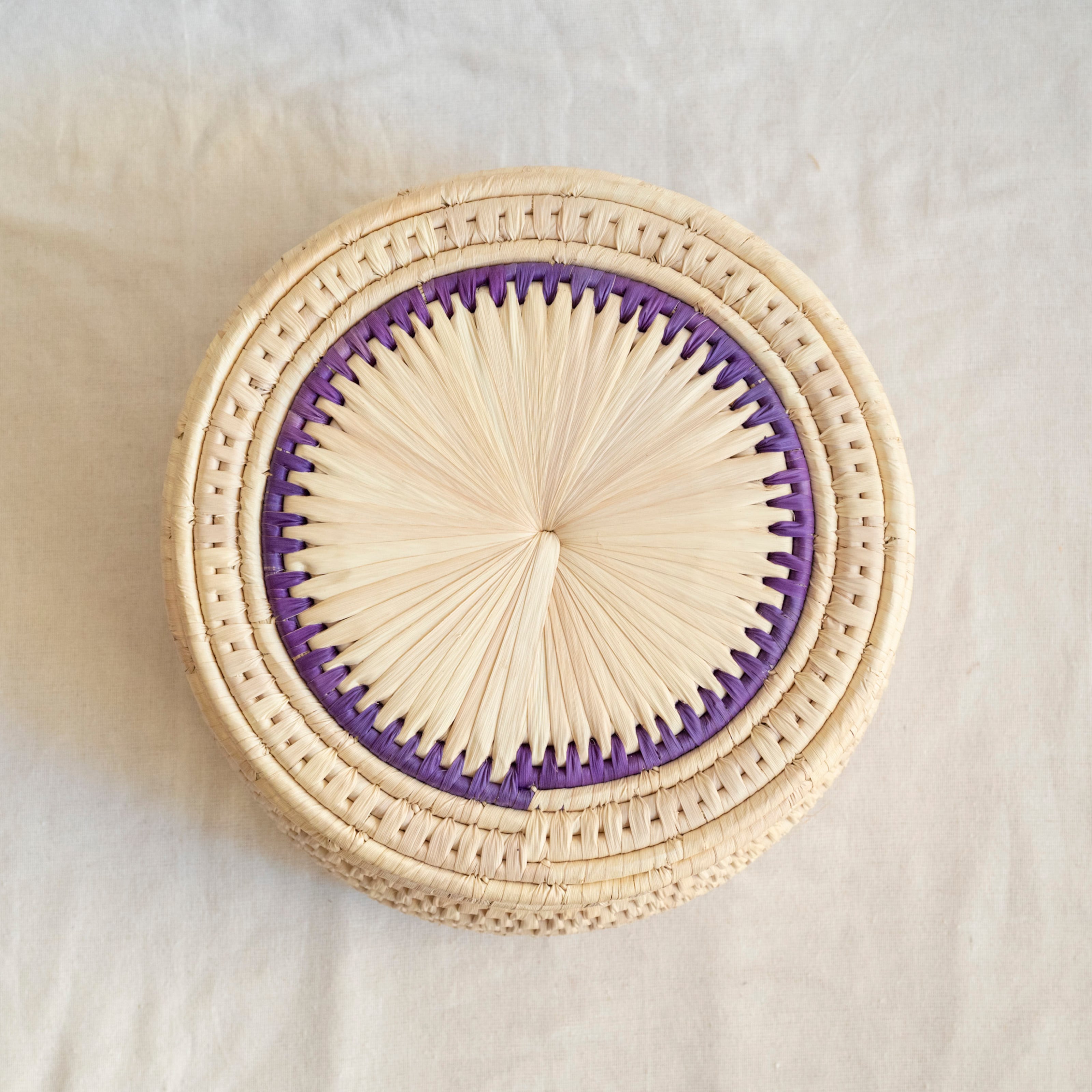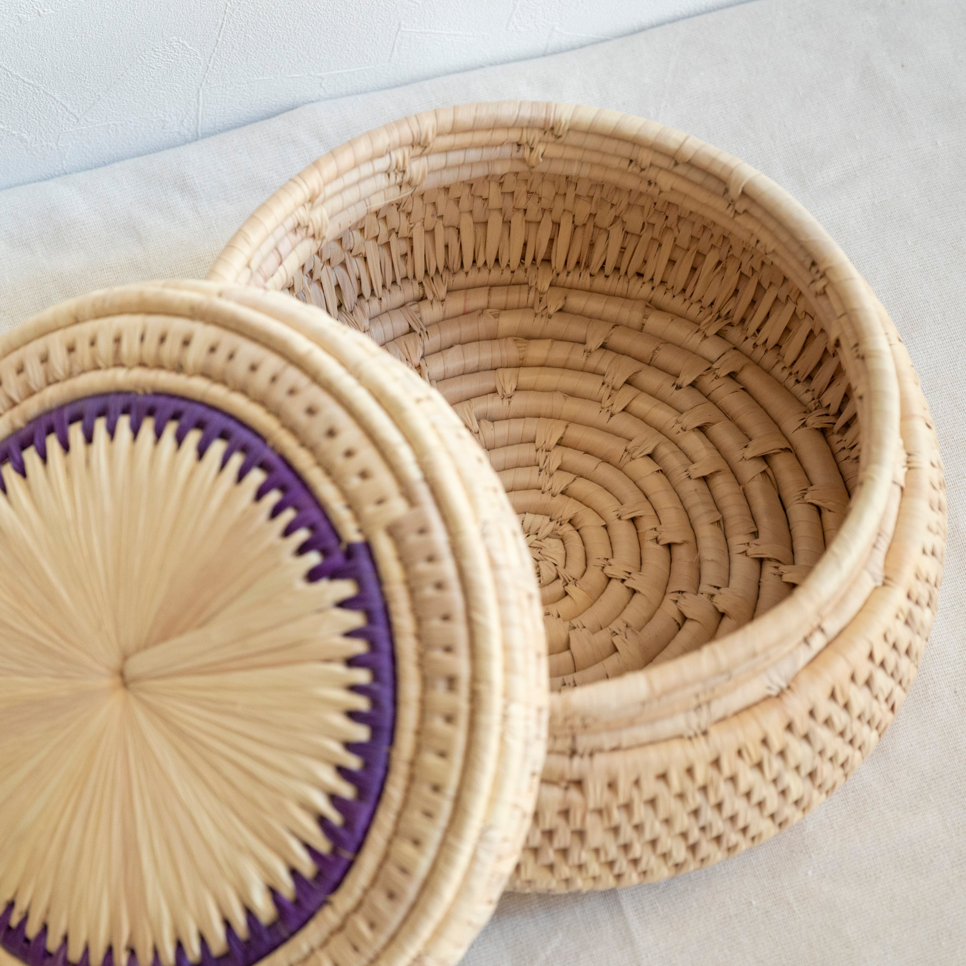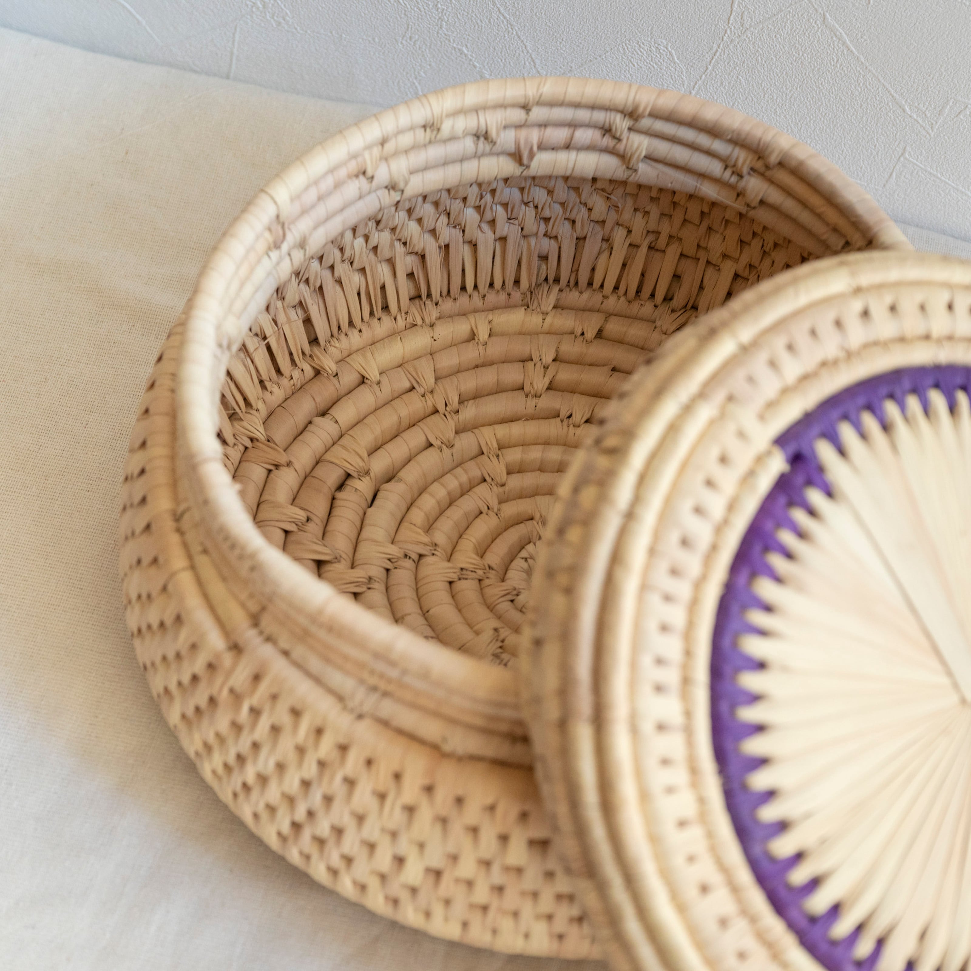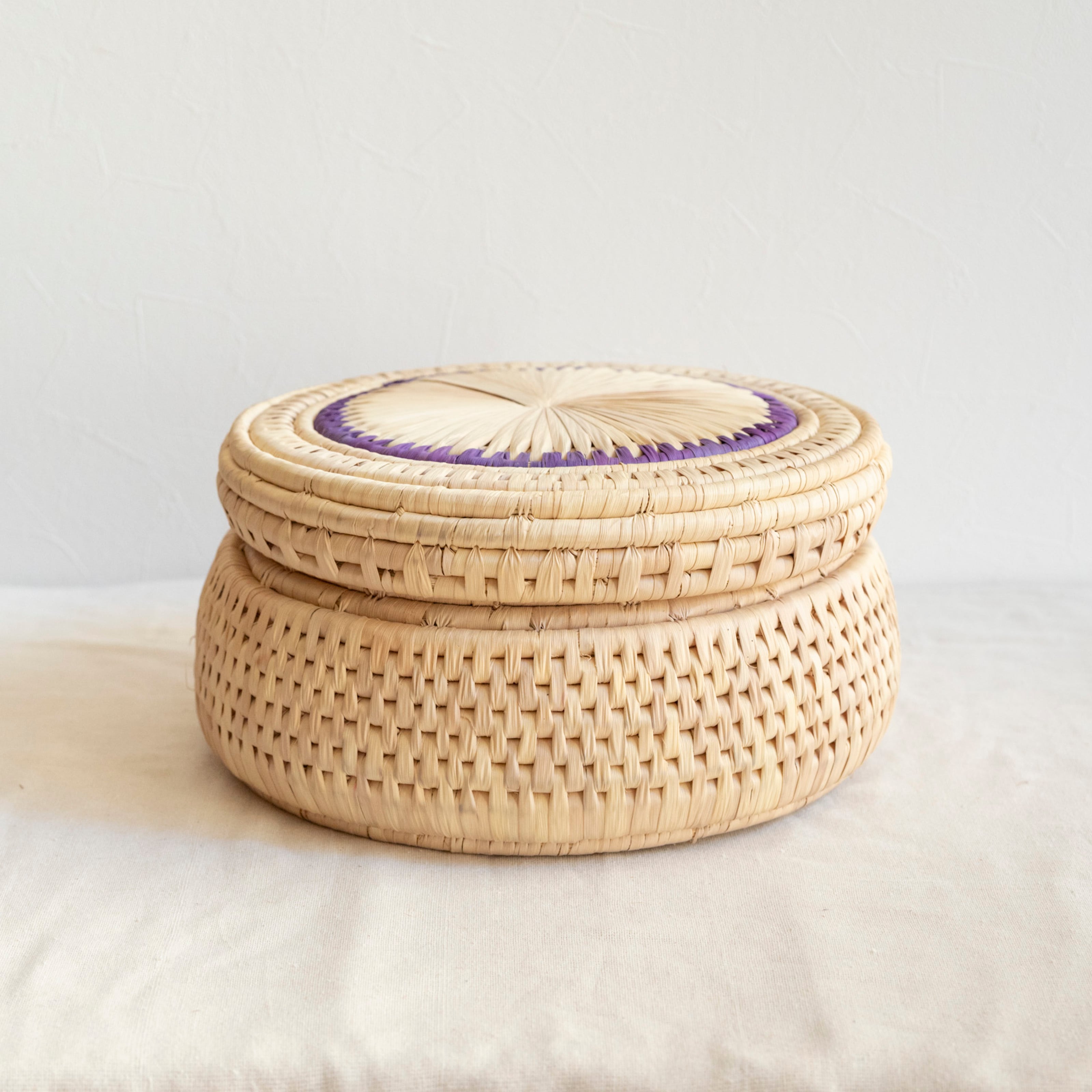 パキスタンのかご フタつきかごL No.6 直径32cm × 高さ16cm