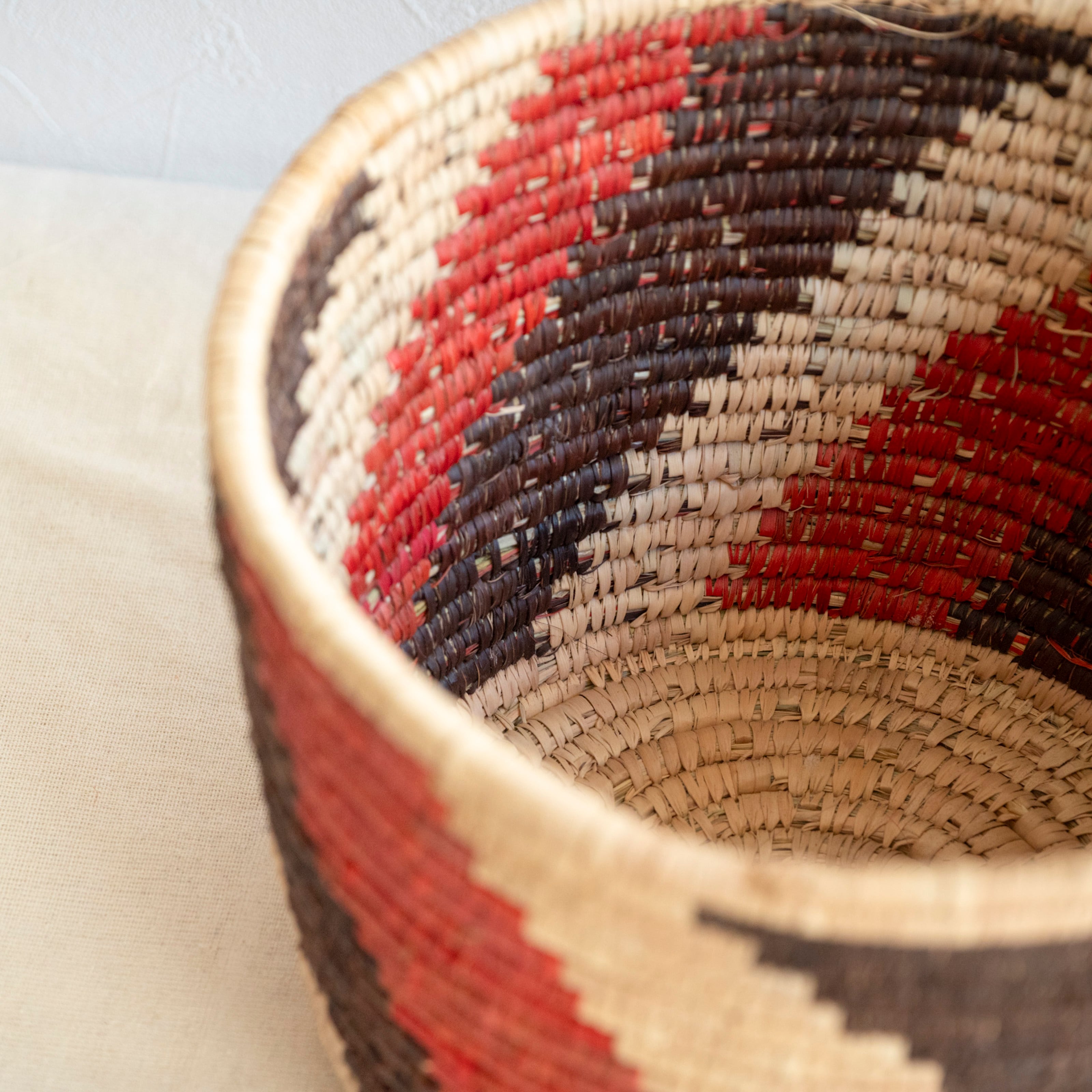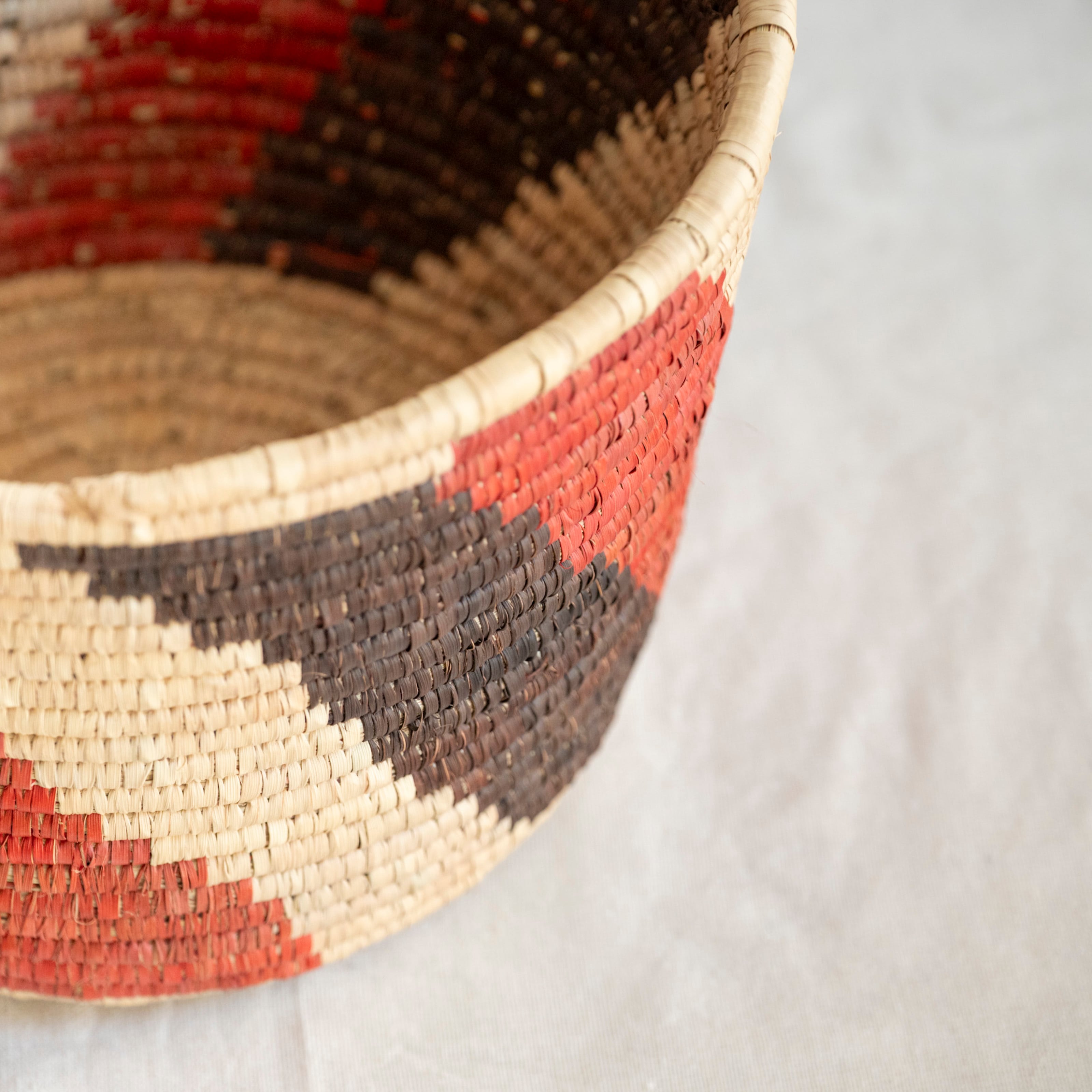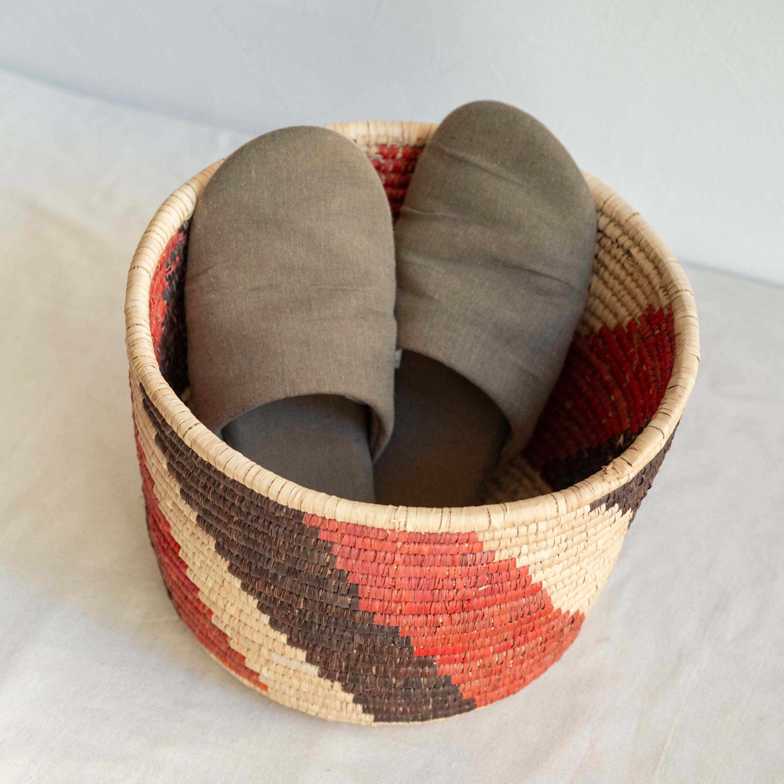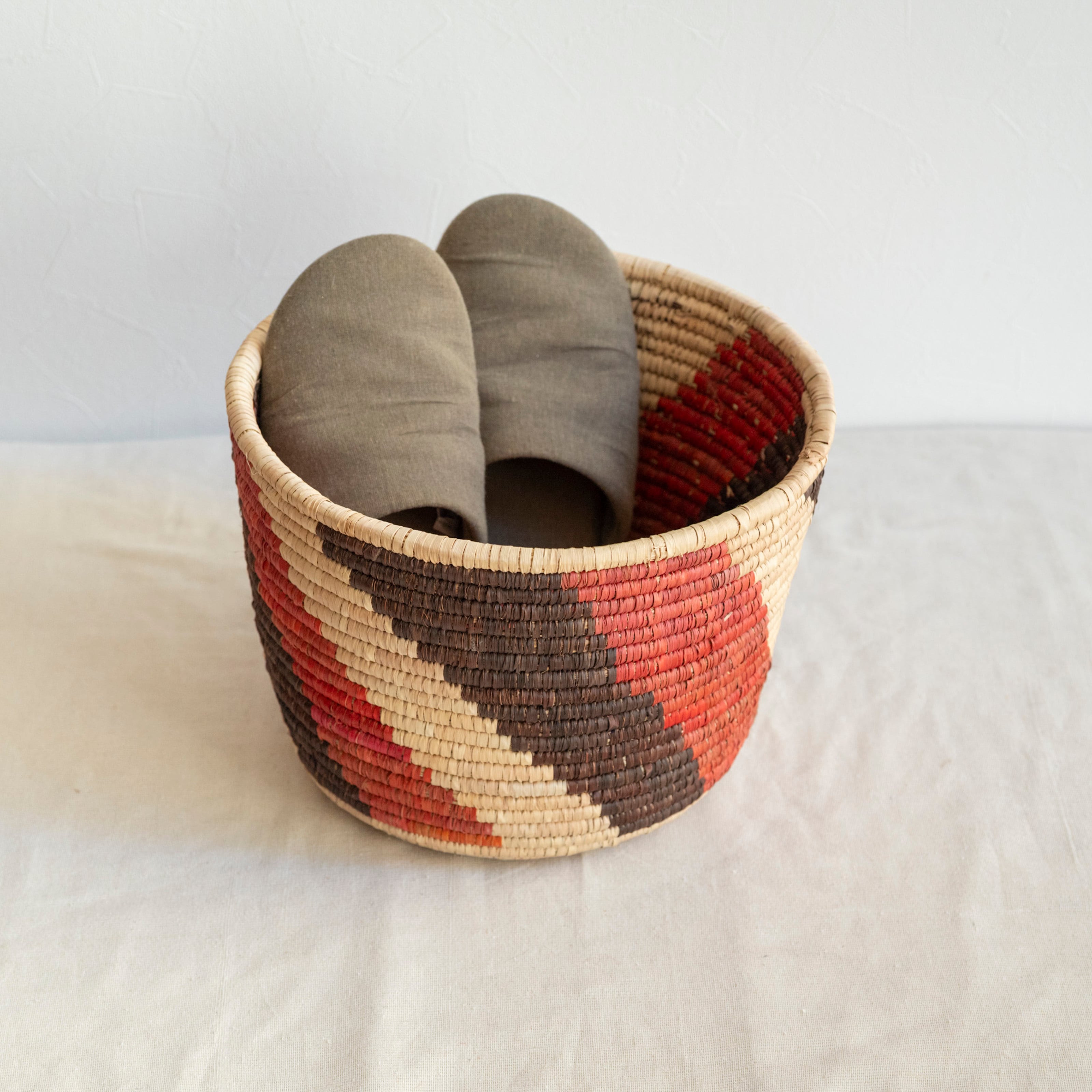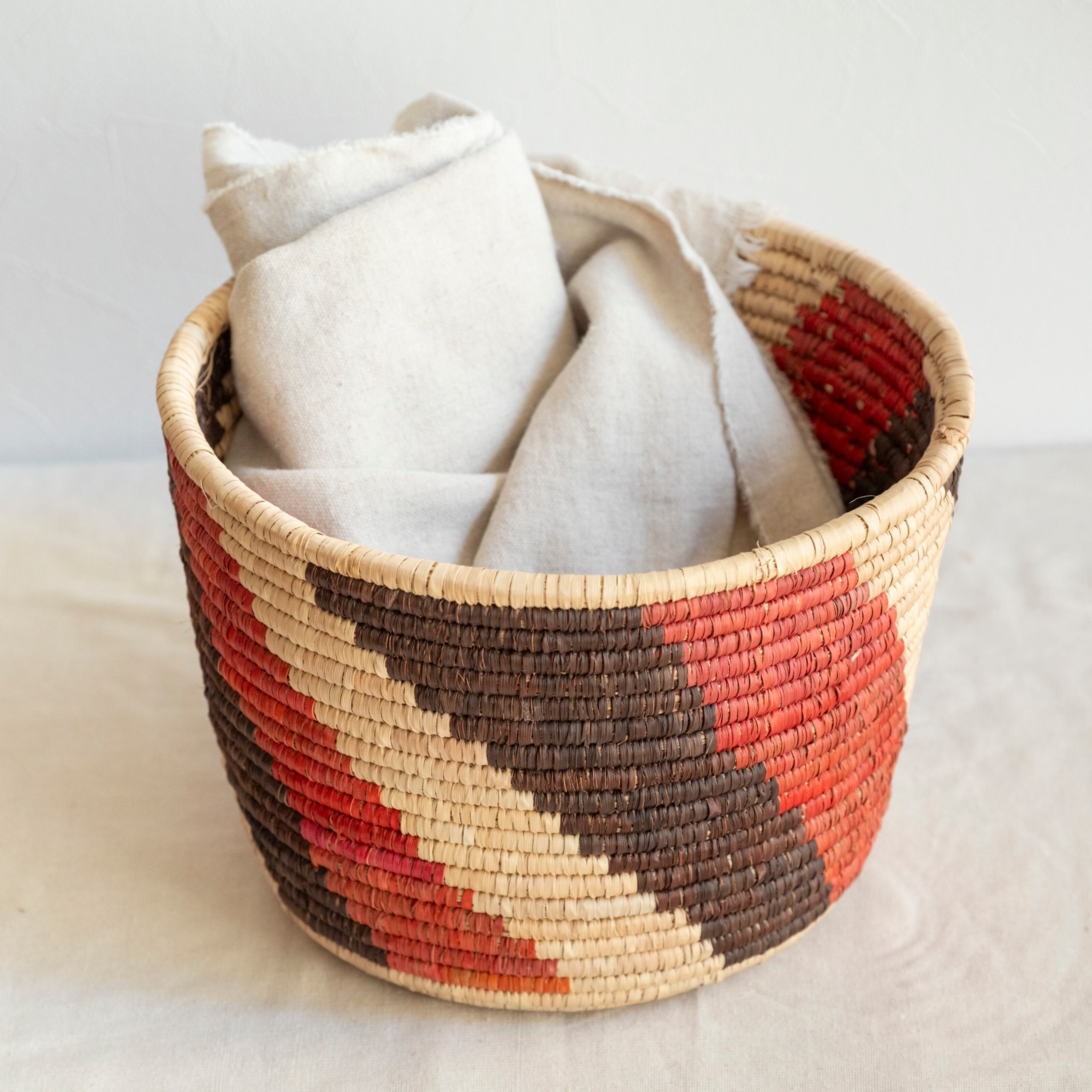 乾燥させたナツメヤシの葉を編んでつくった、天然素材のかごです。