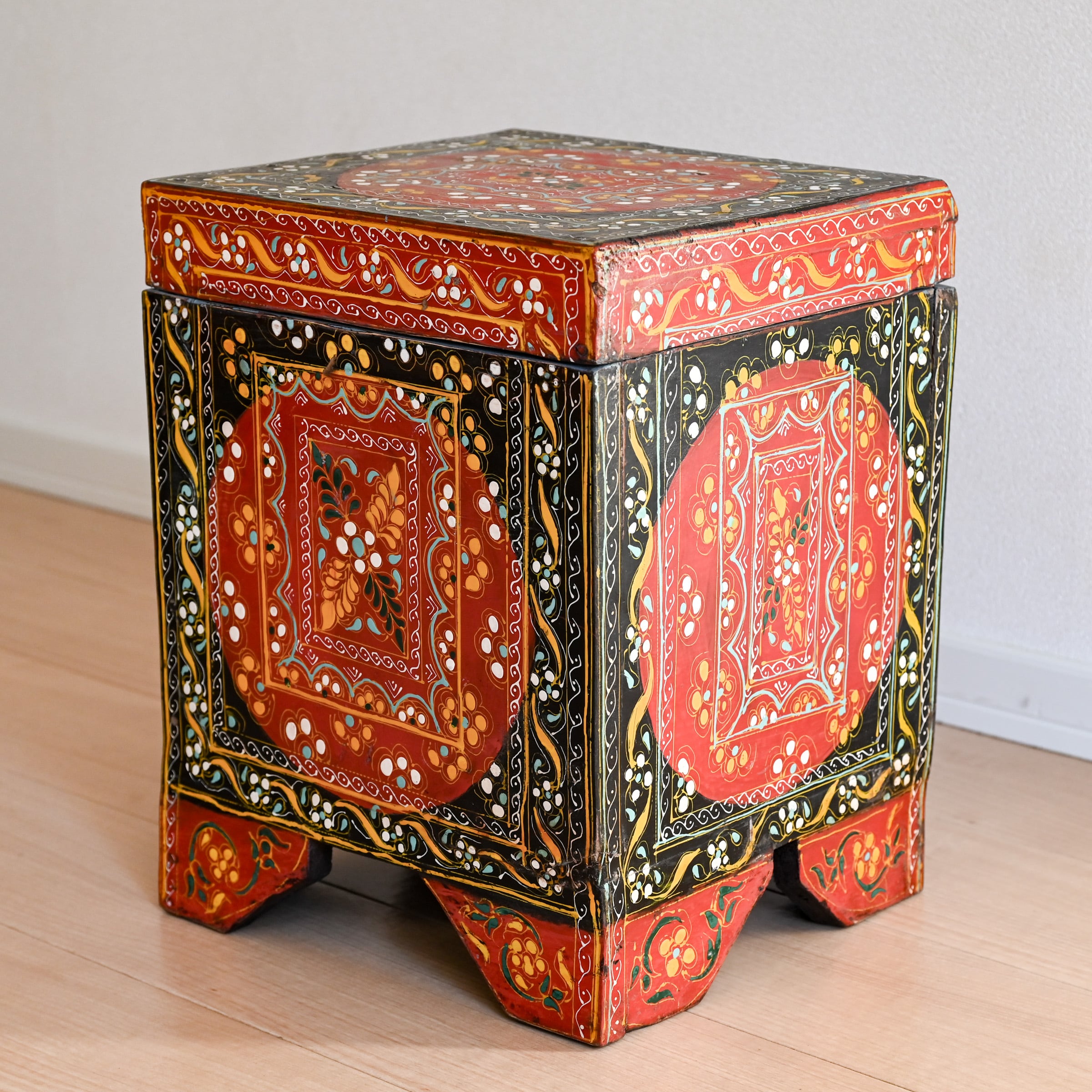 パキスタン製 ハンドペイントのヴィンテージ木箱 No.1