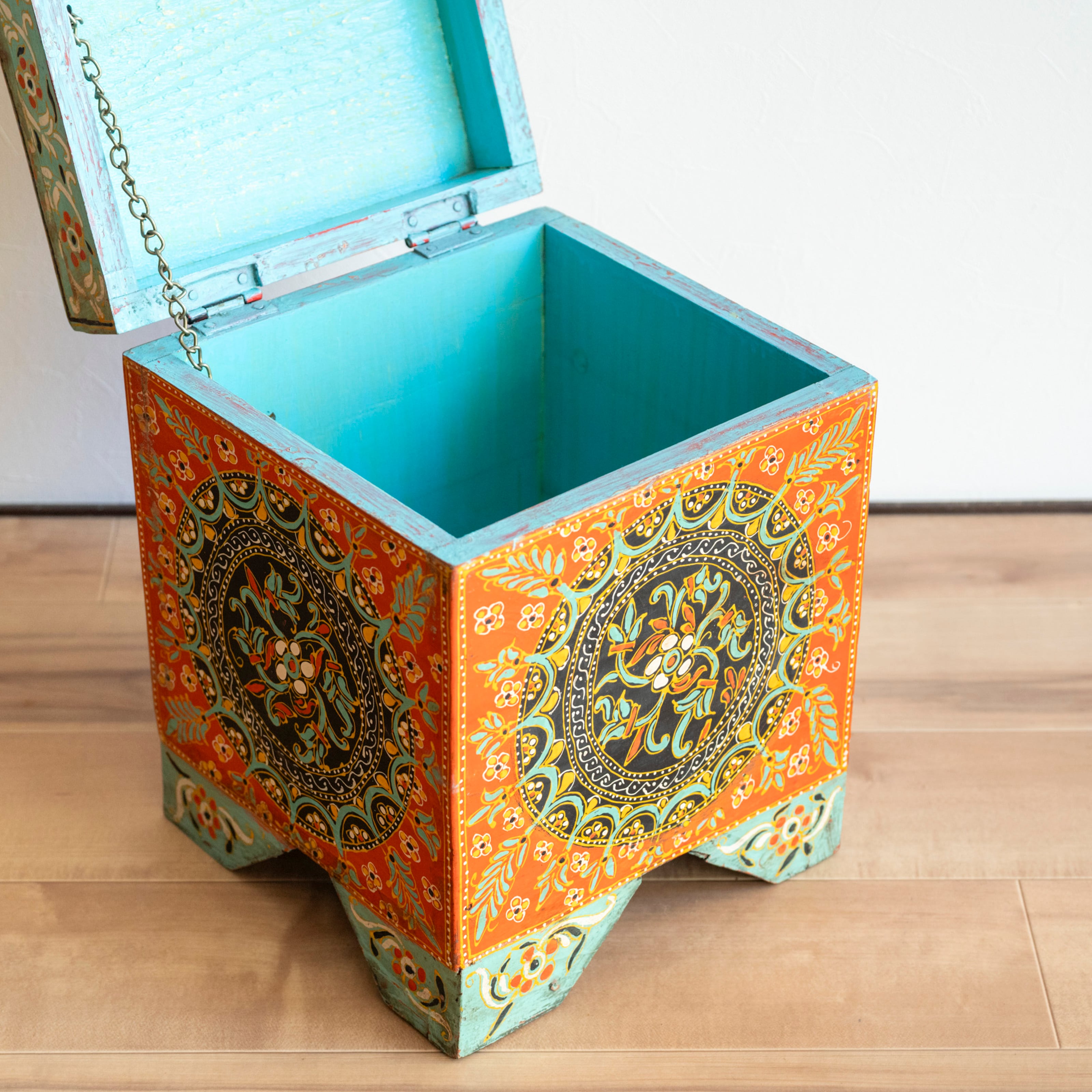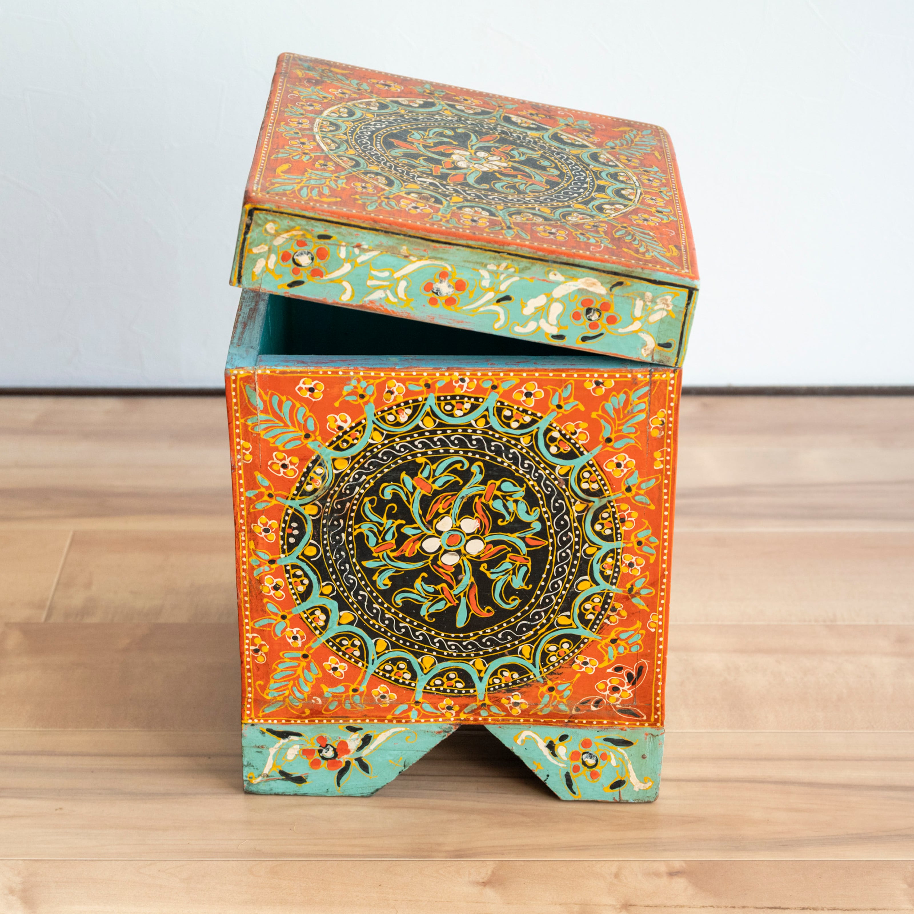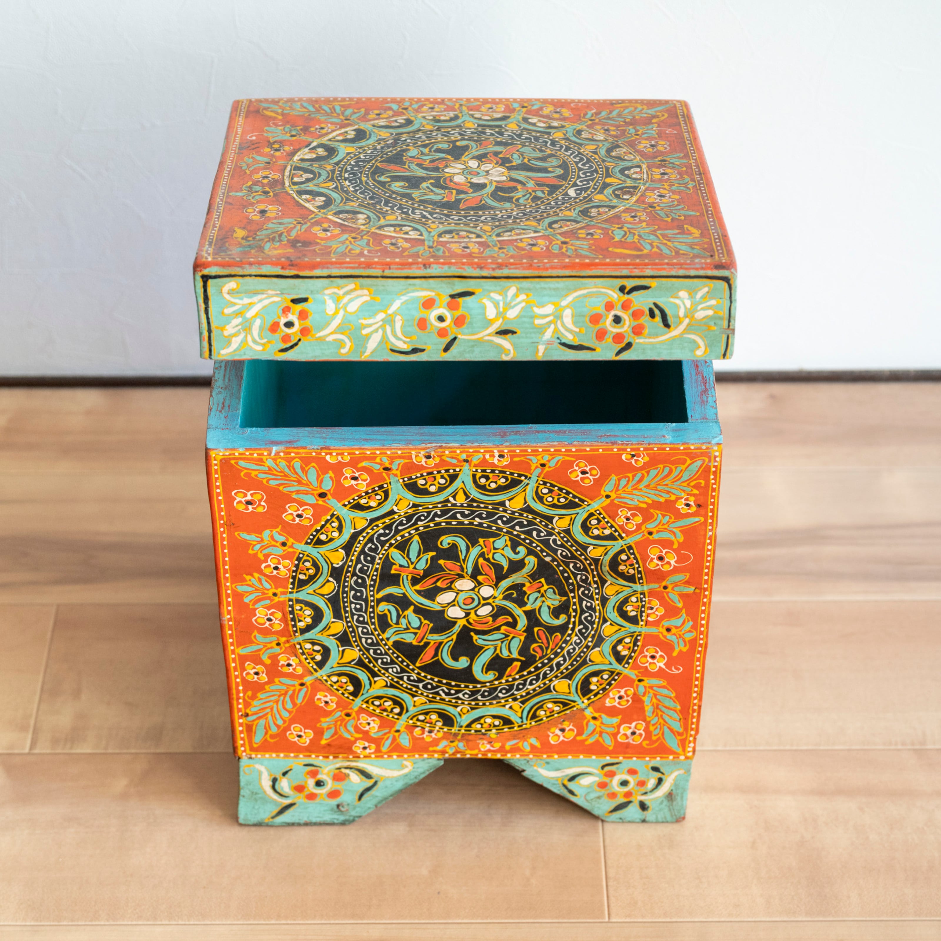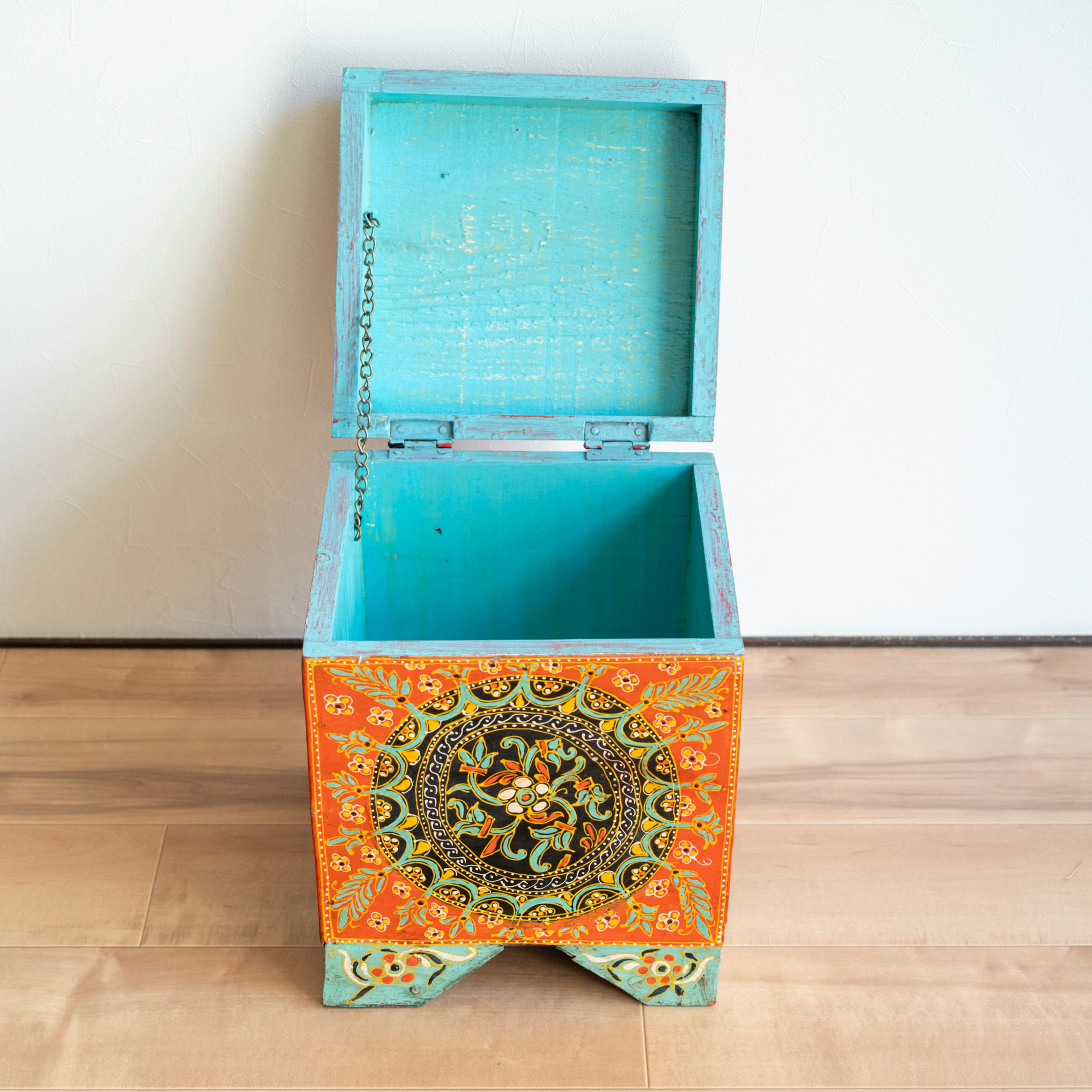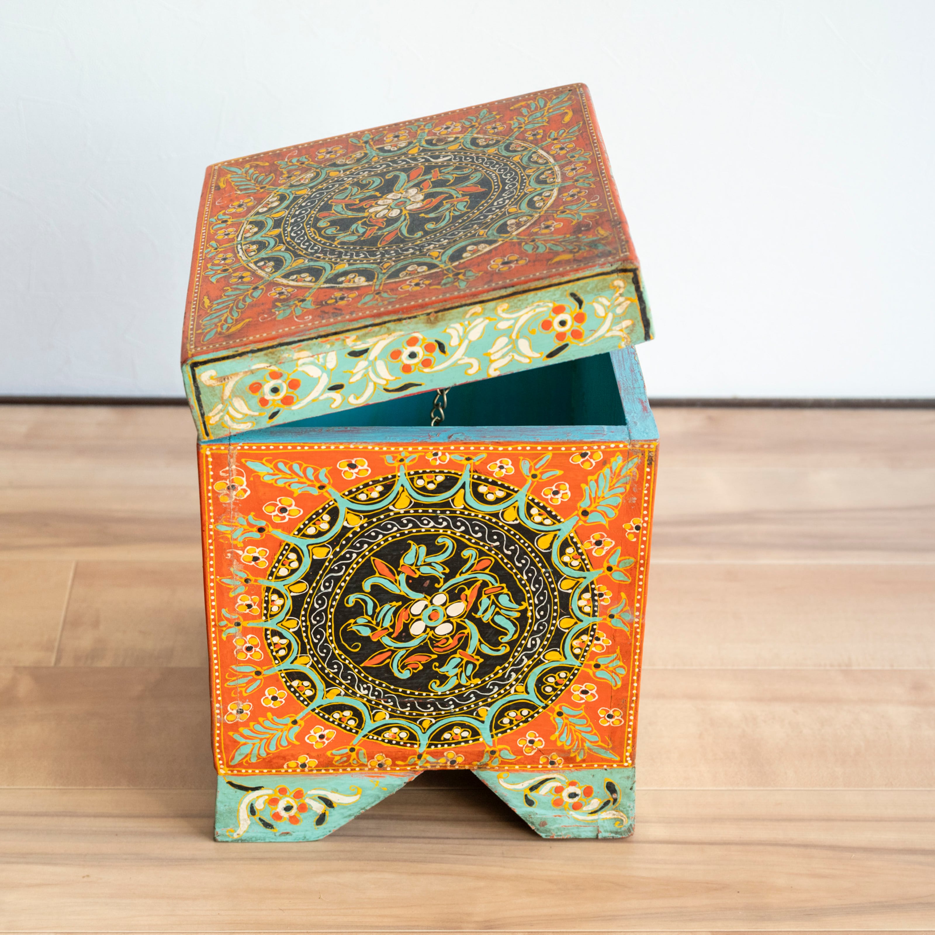 パキスタン製 ハンドペイントのヴィンテージ木箱 No.3