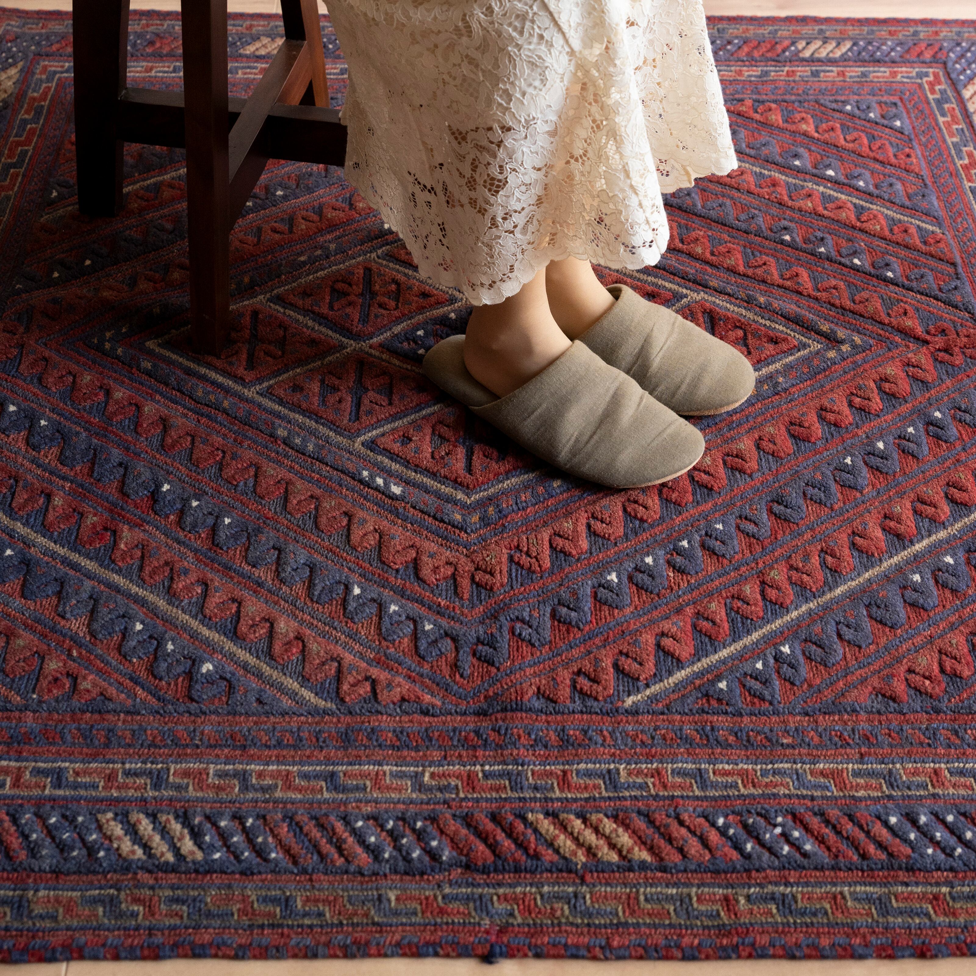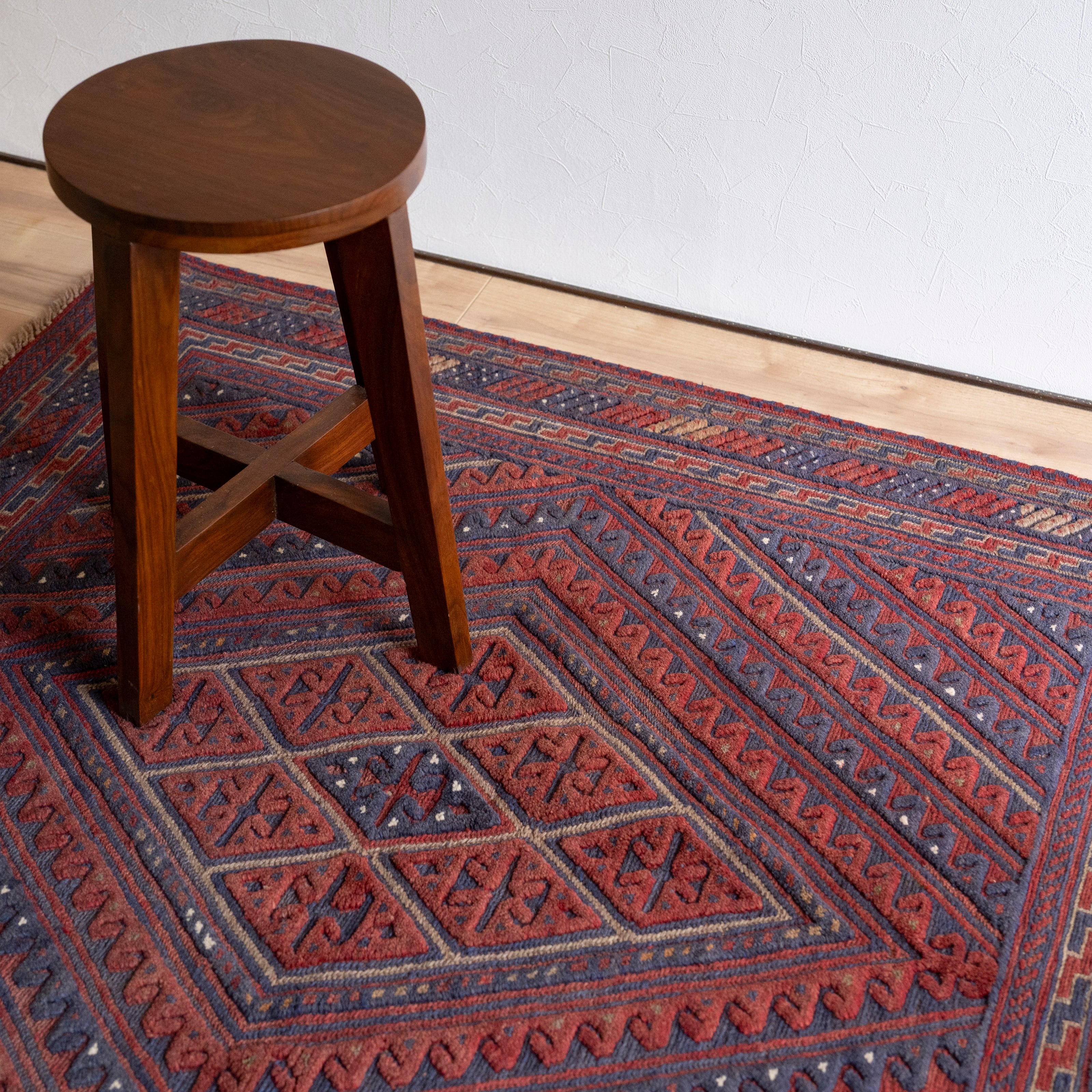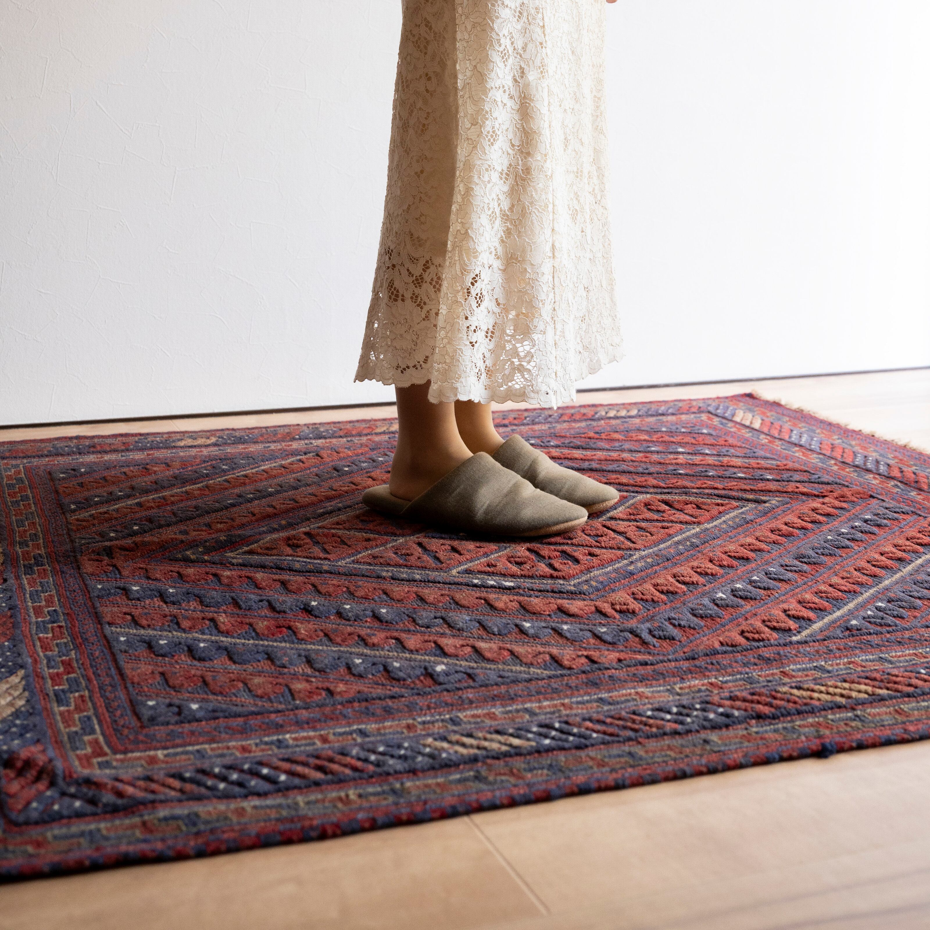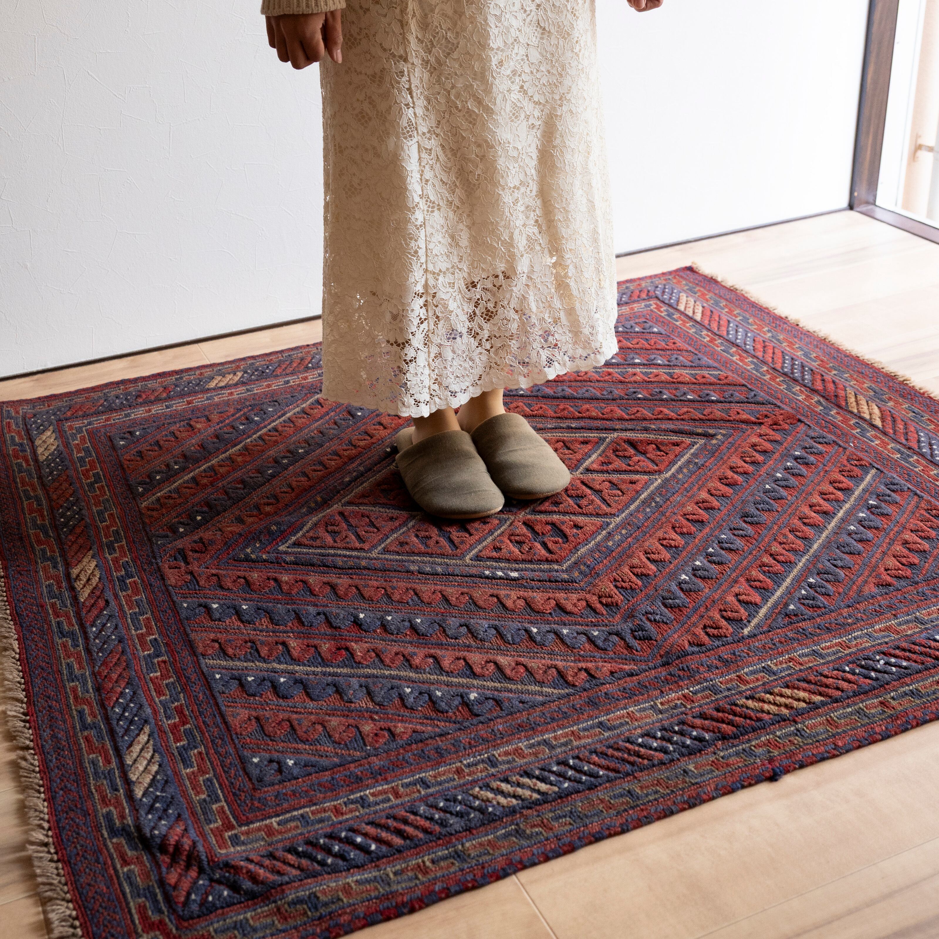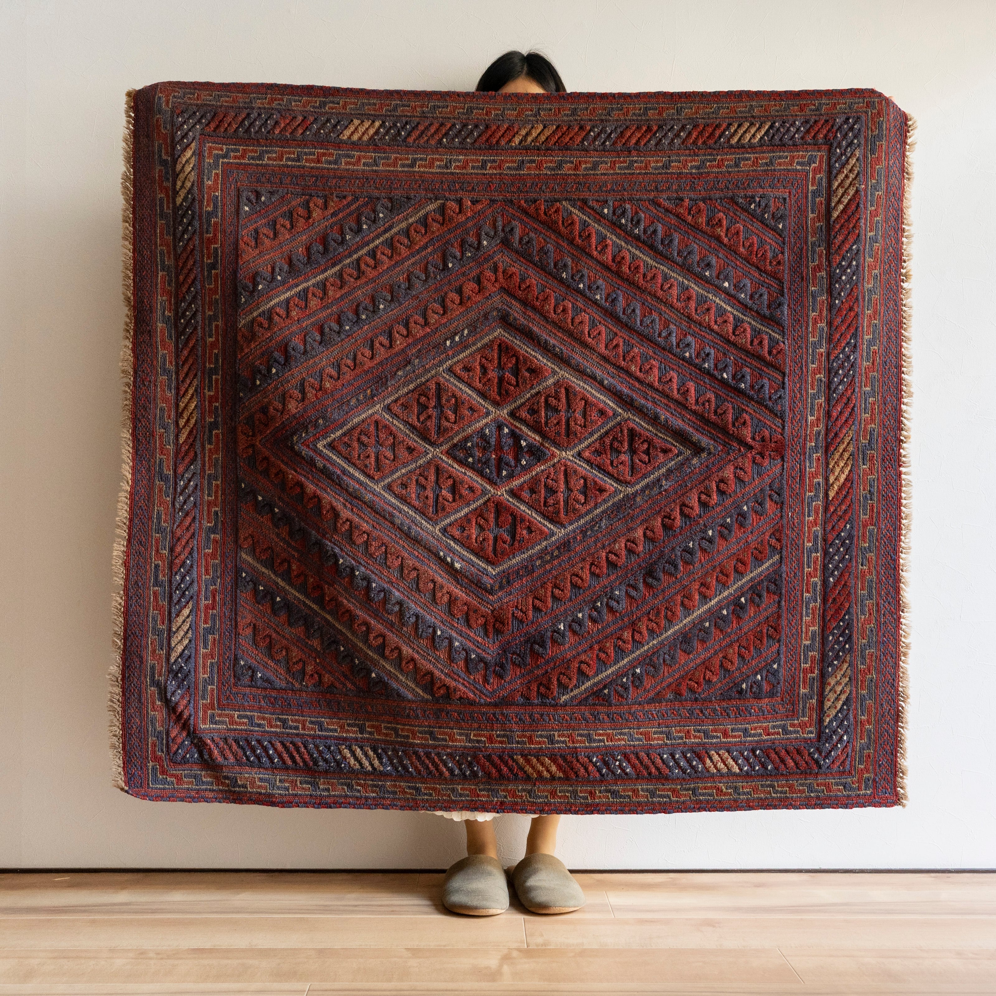 アフガニスタン 手織スマックラグ No.7 [約124×136cm] リビングや寝室に敷くサイズ