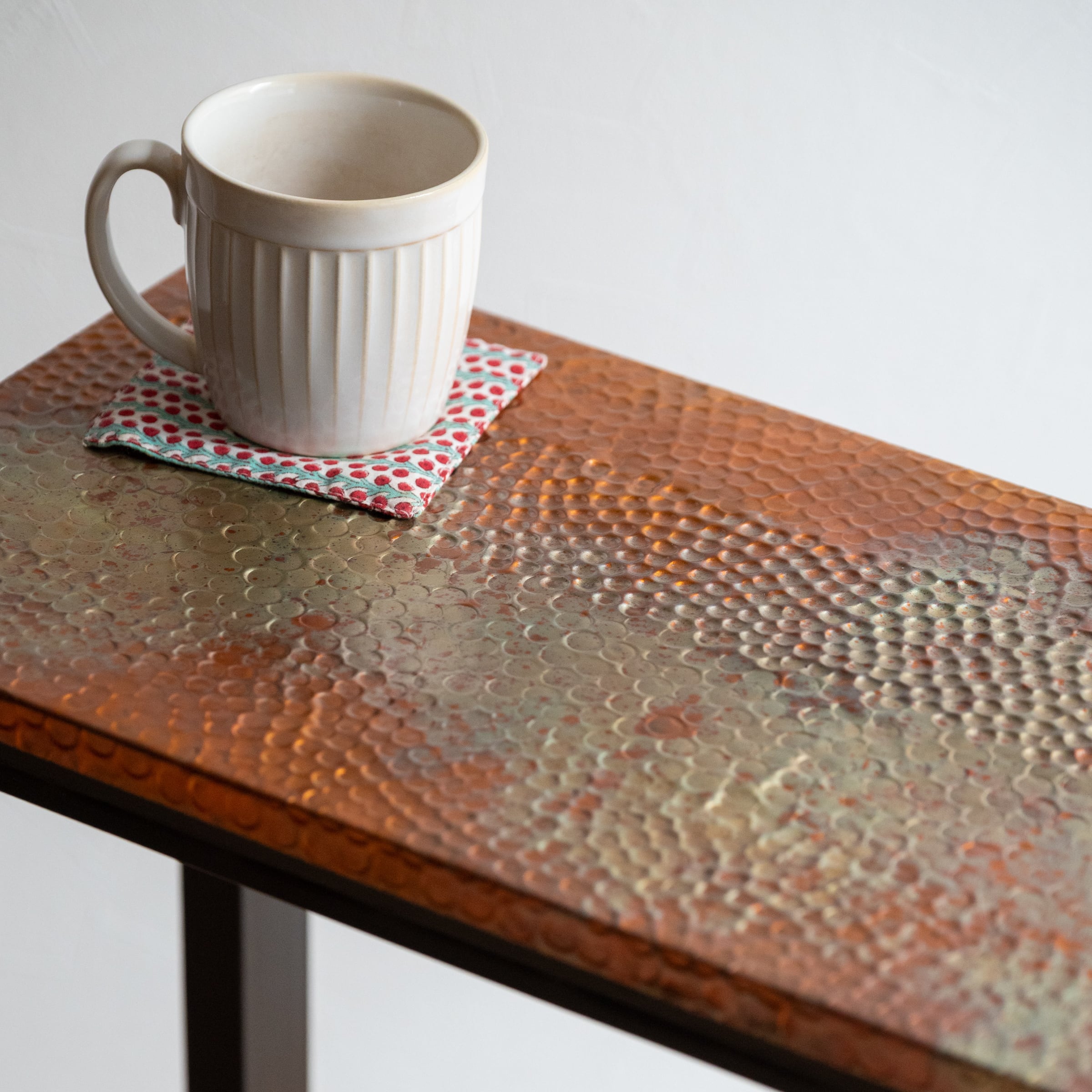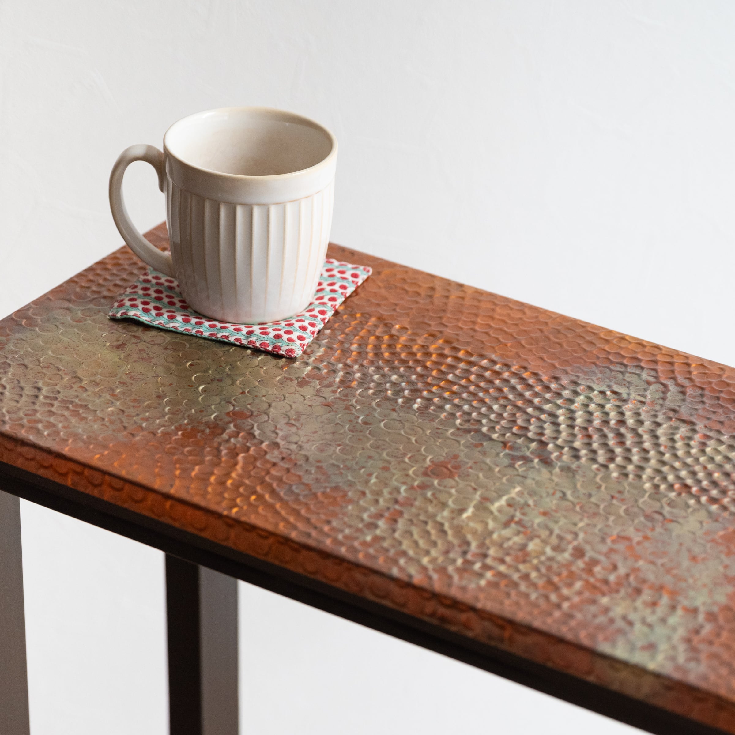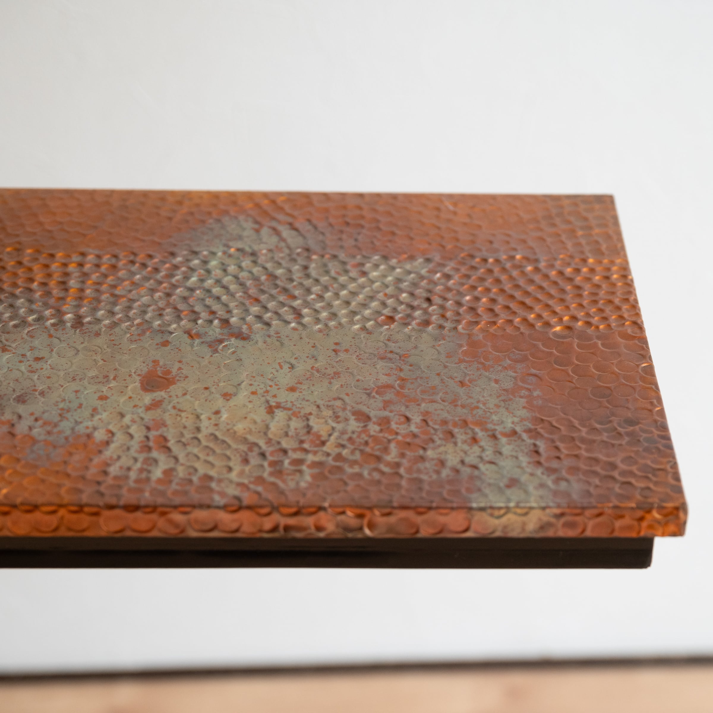 天板には手打ちの槌目(つちめ)でデザインされた銅板が張られています。
