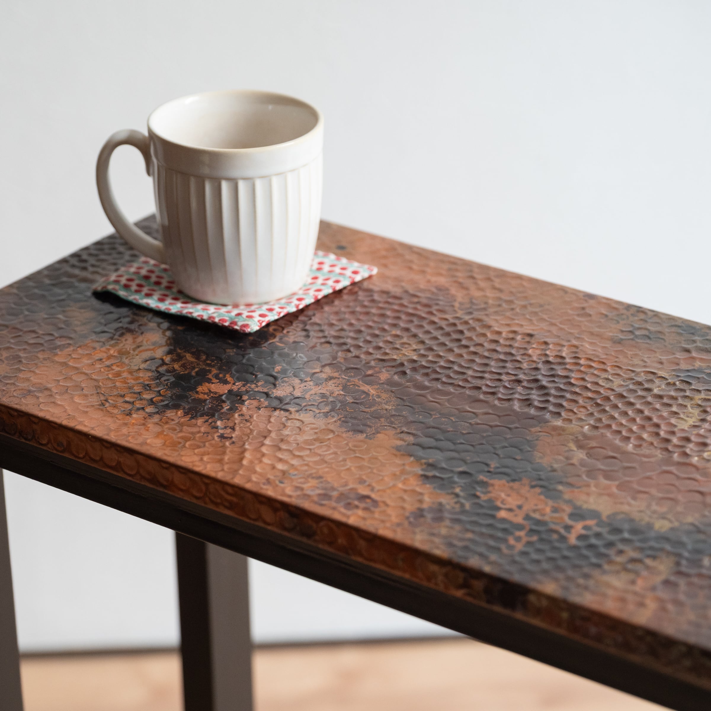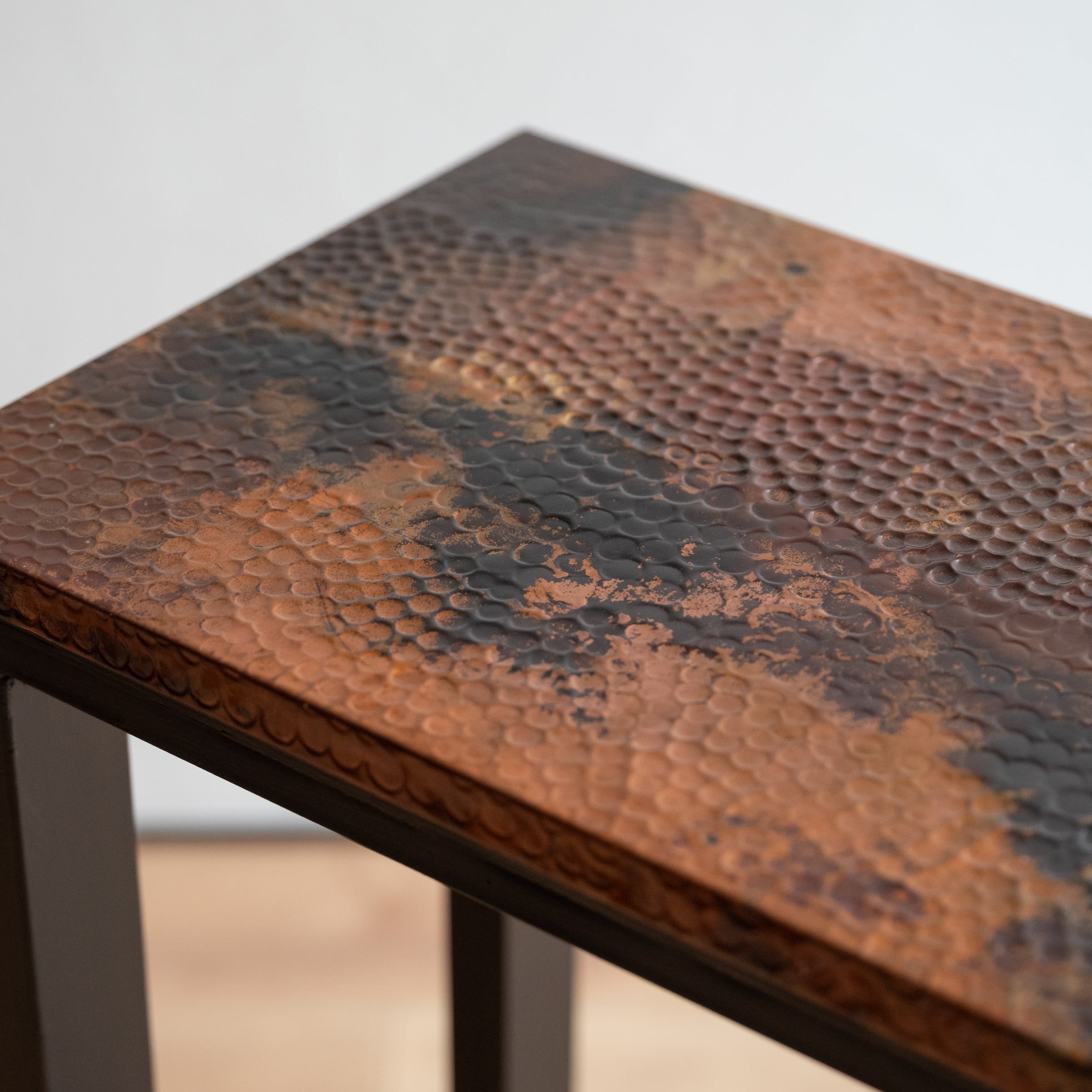 天板には手打ちの槌目(つちめ)でデザインされた銅板が張られています。