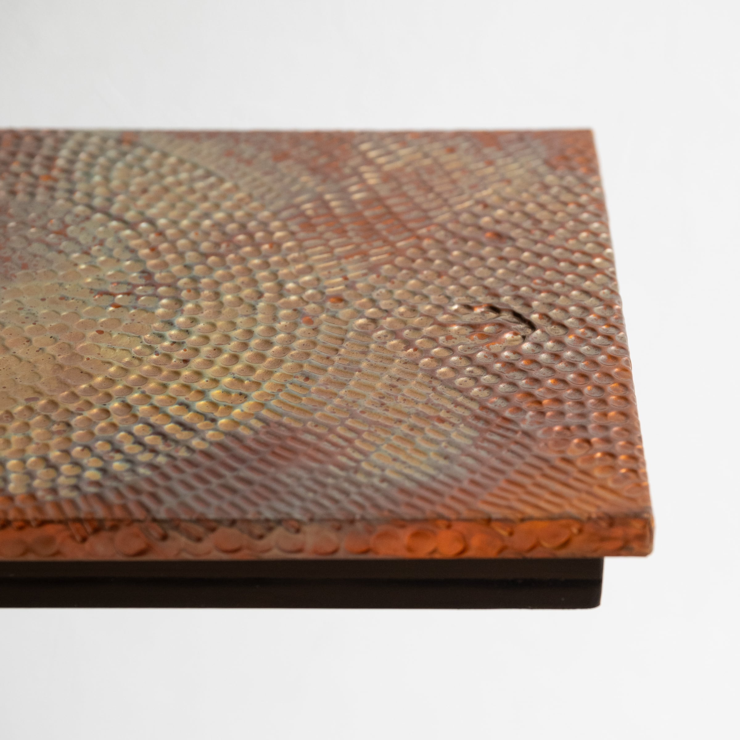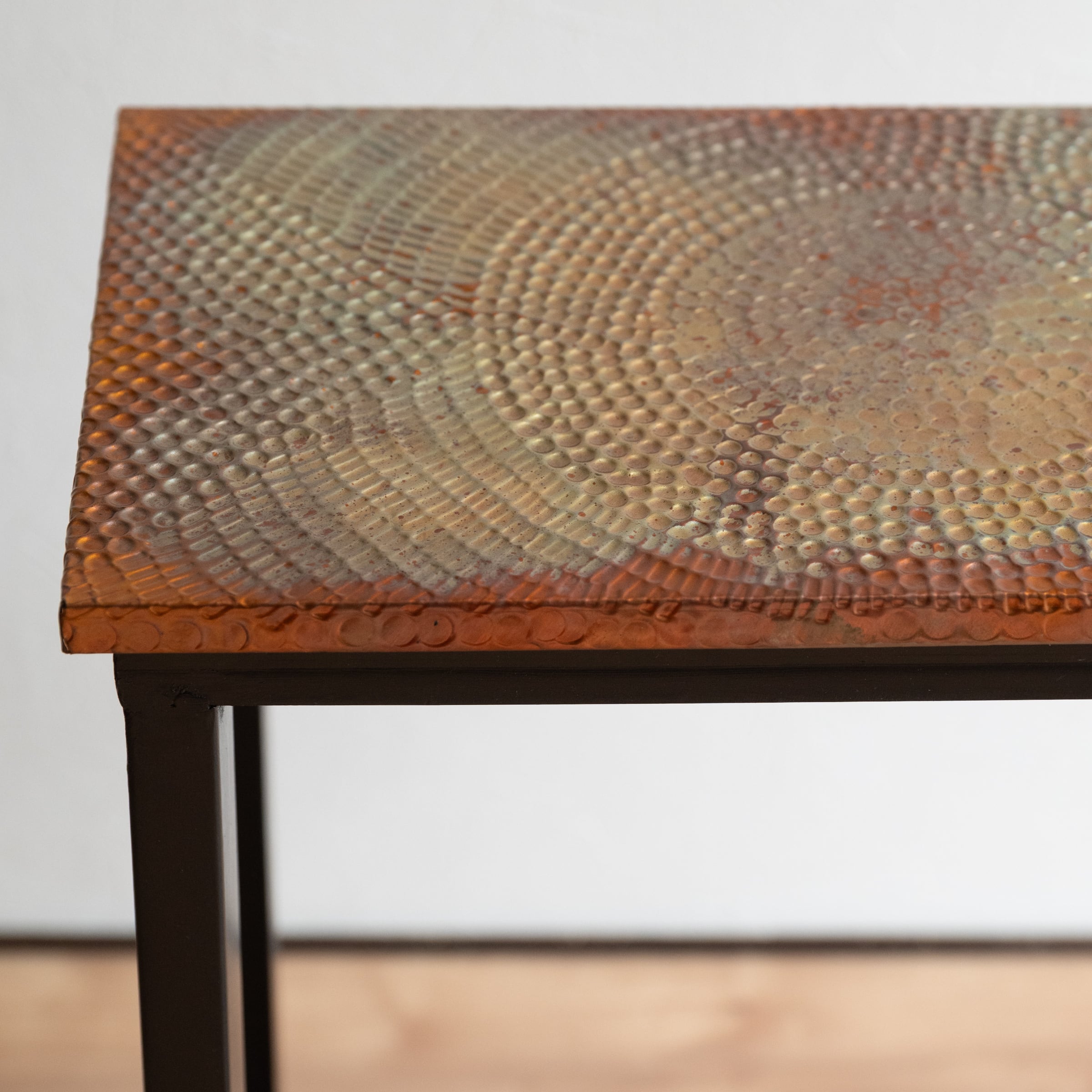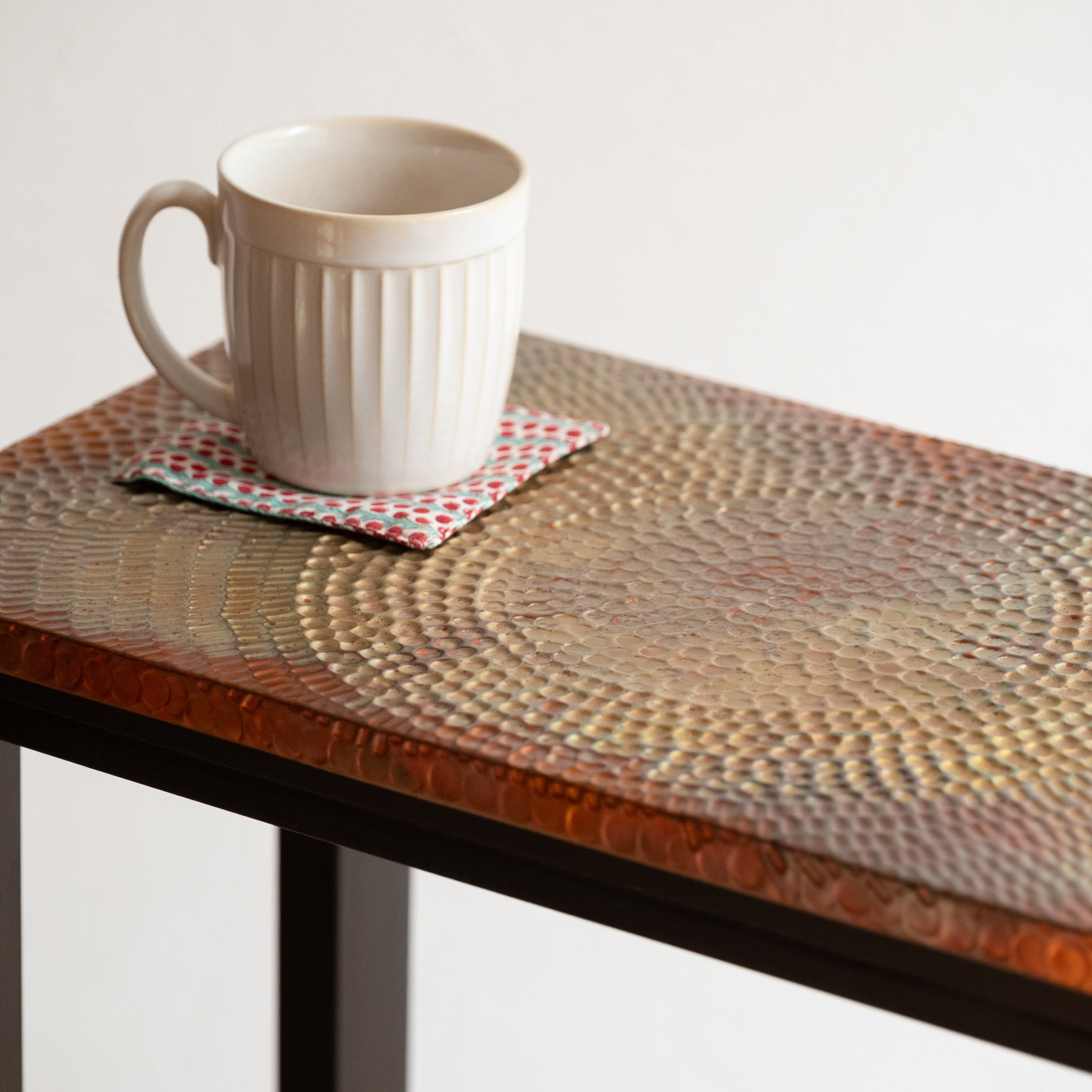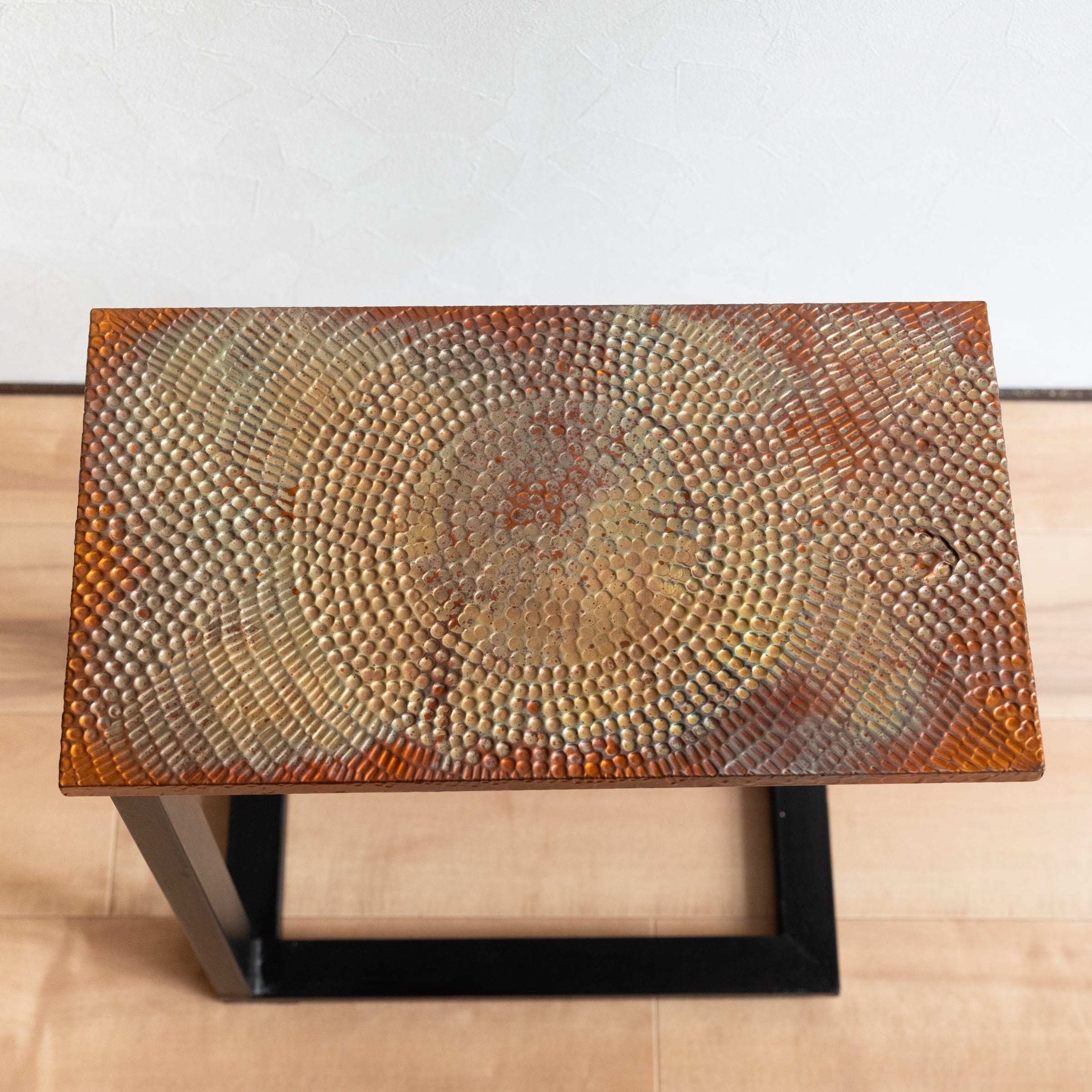 天板には手打ちの槌目(つちめ)でデザインされた銅板が張られています。