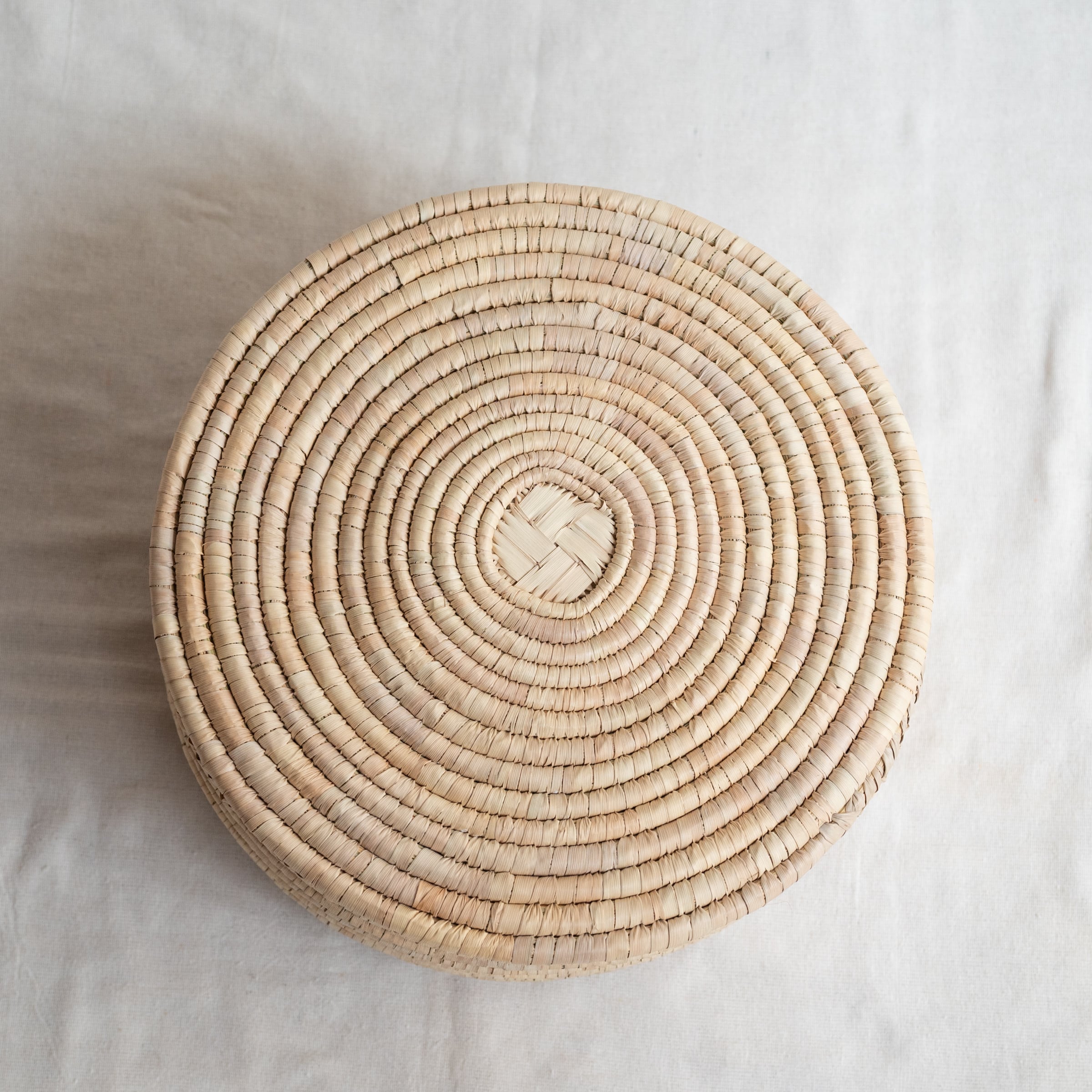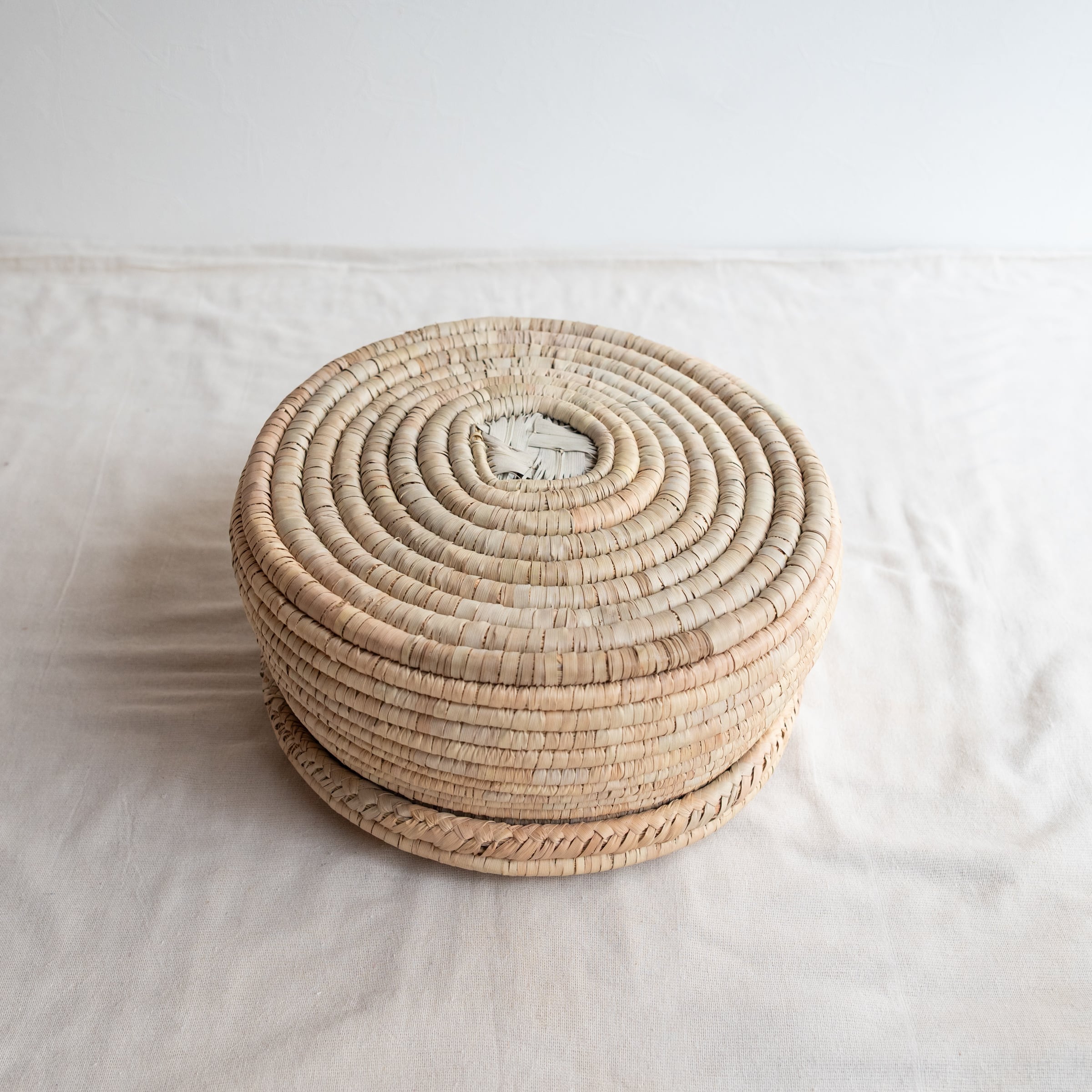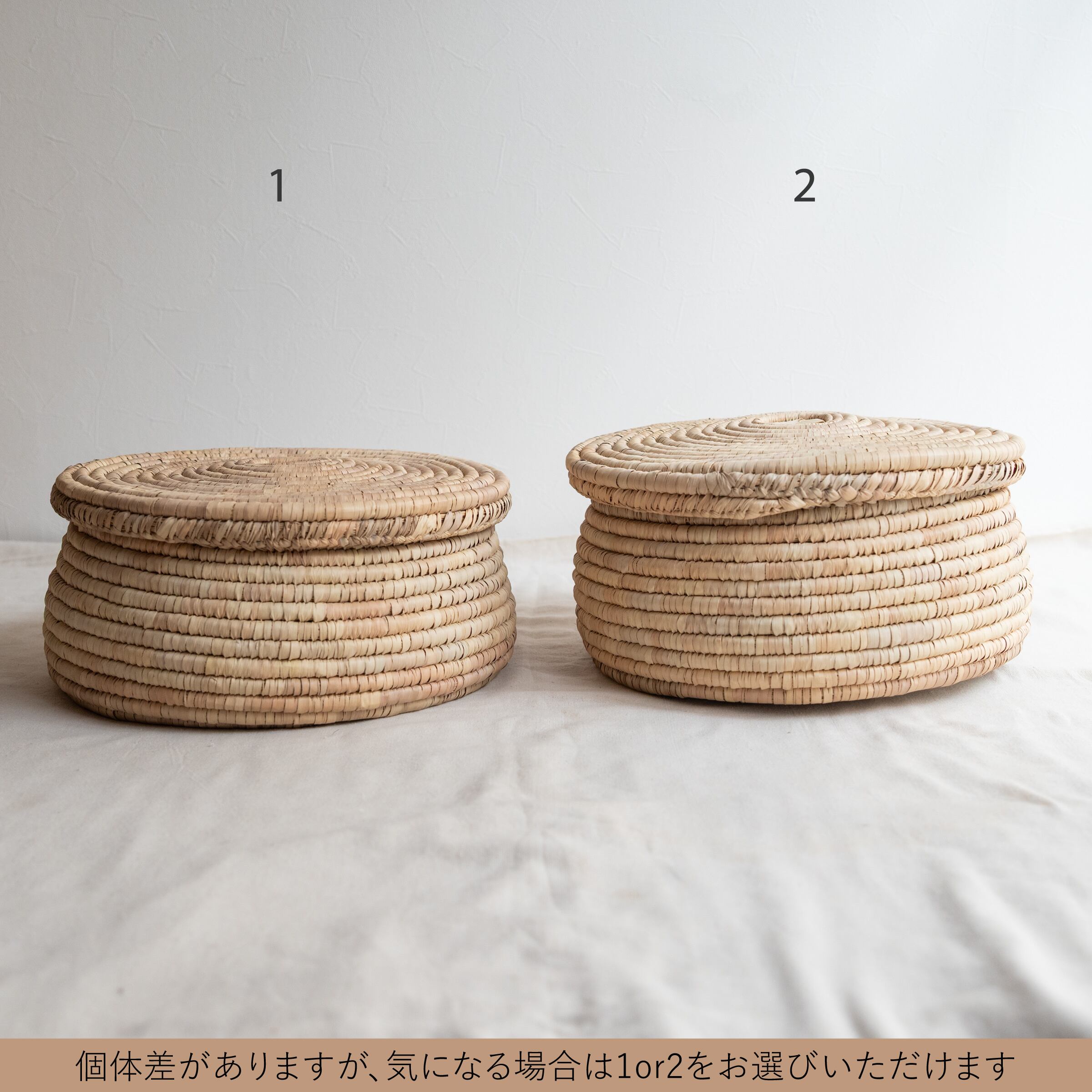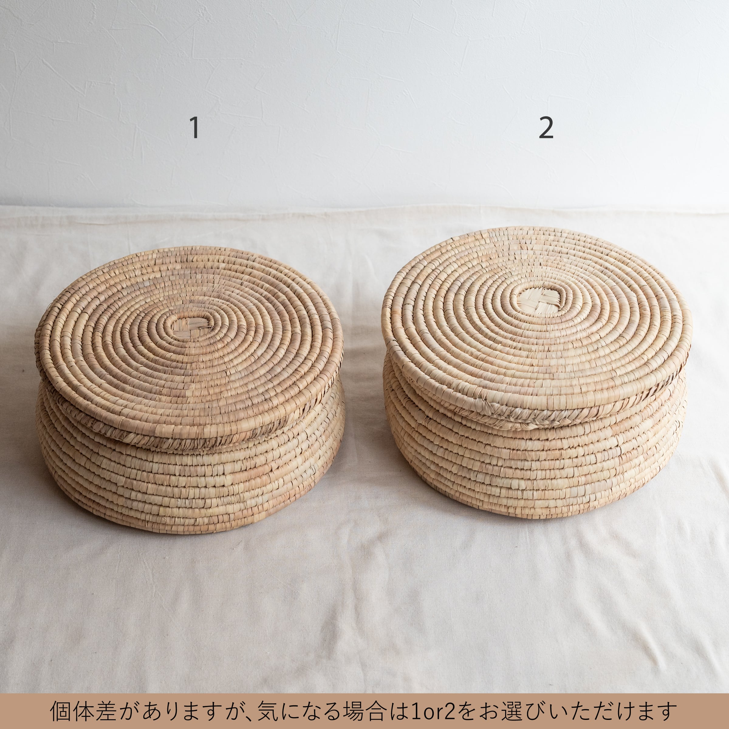 パキスタンのかご フタつきかごL No.11 直径約34cm × 高さ16-18cm