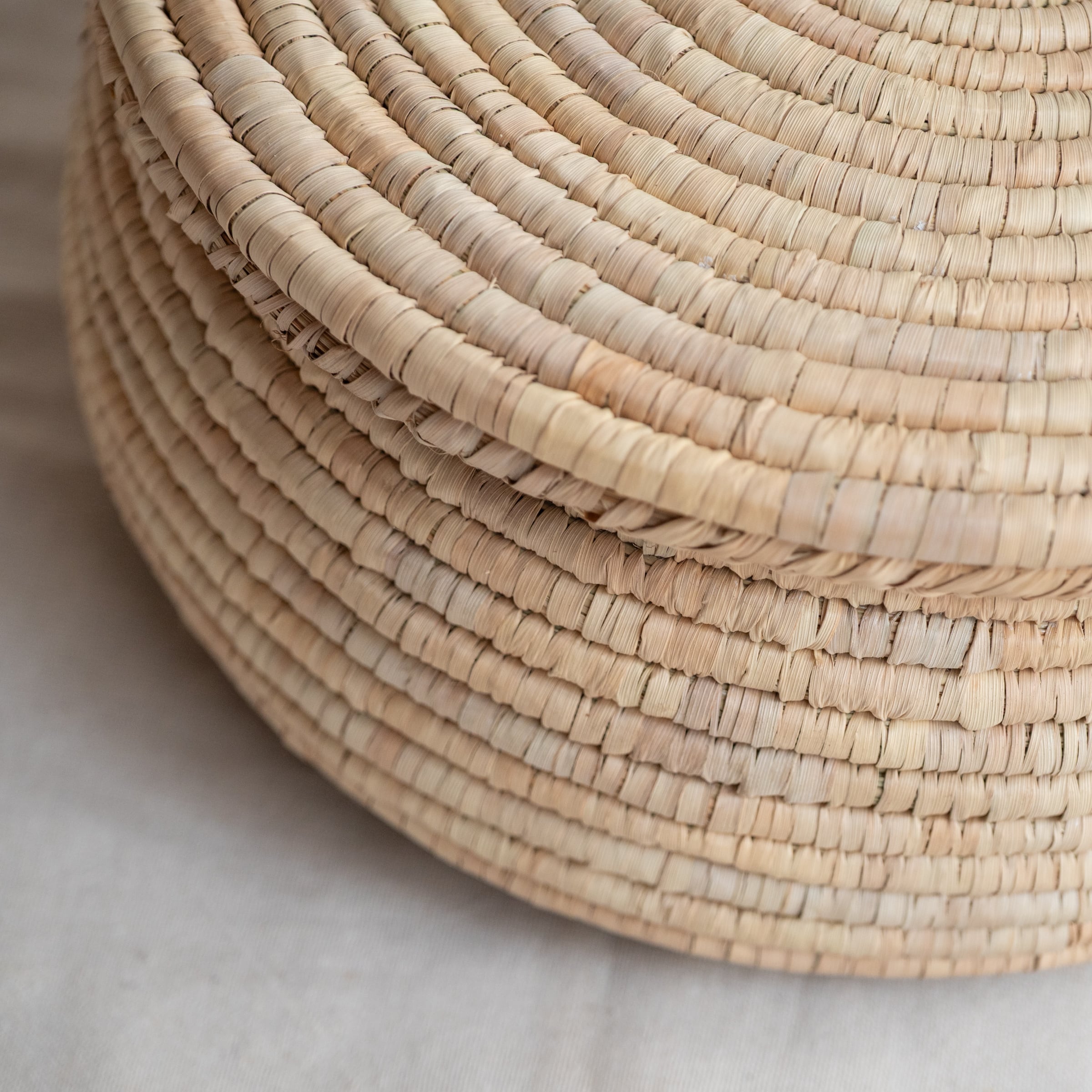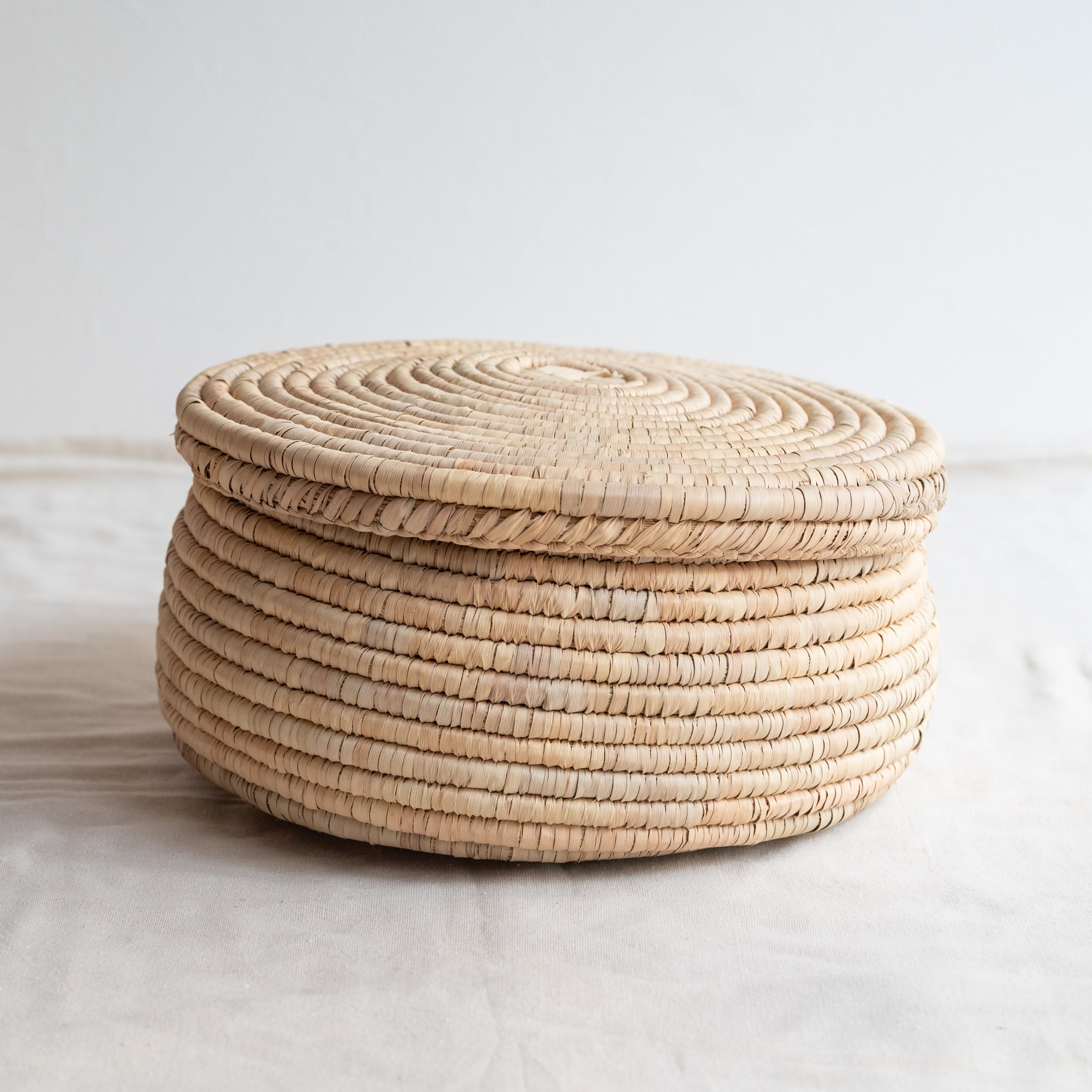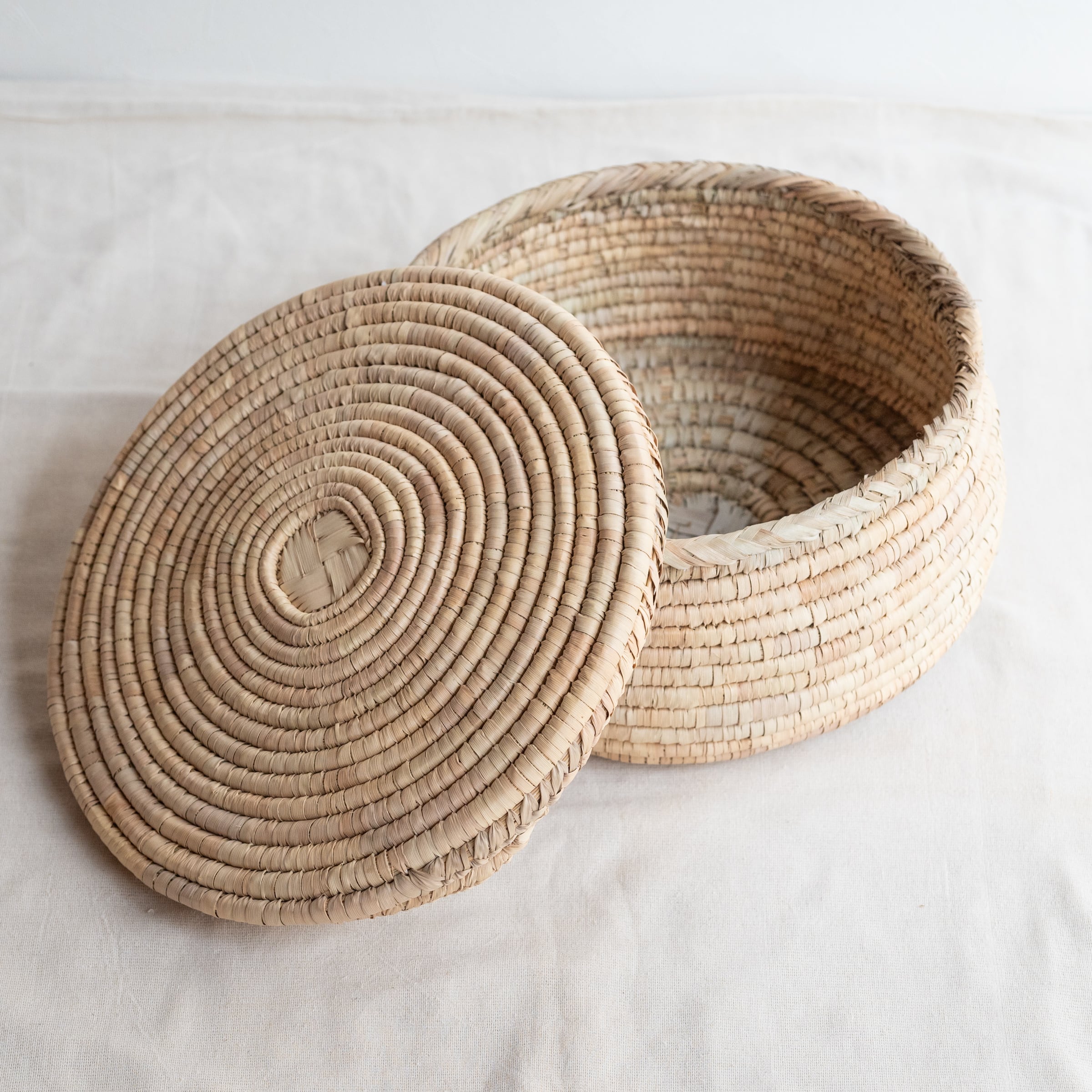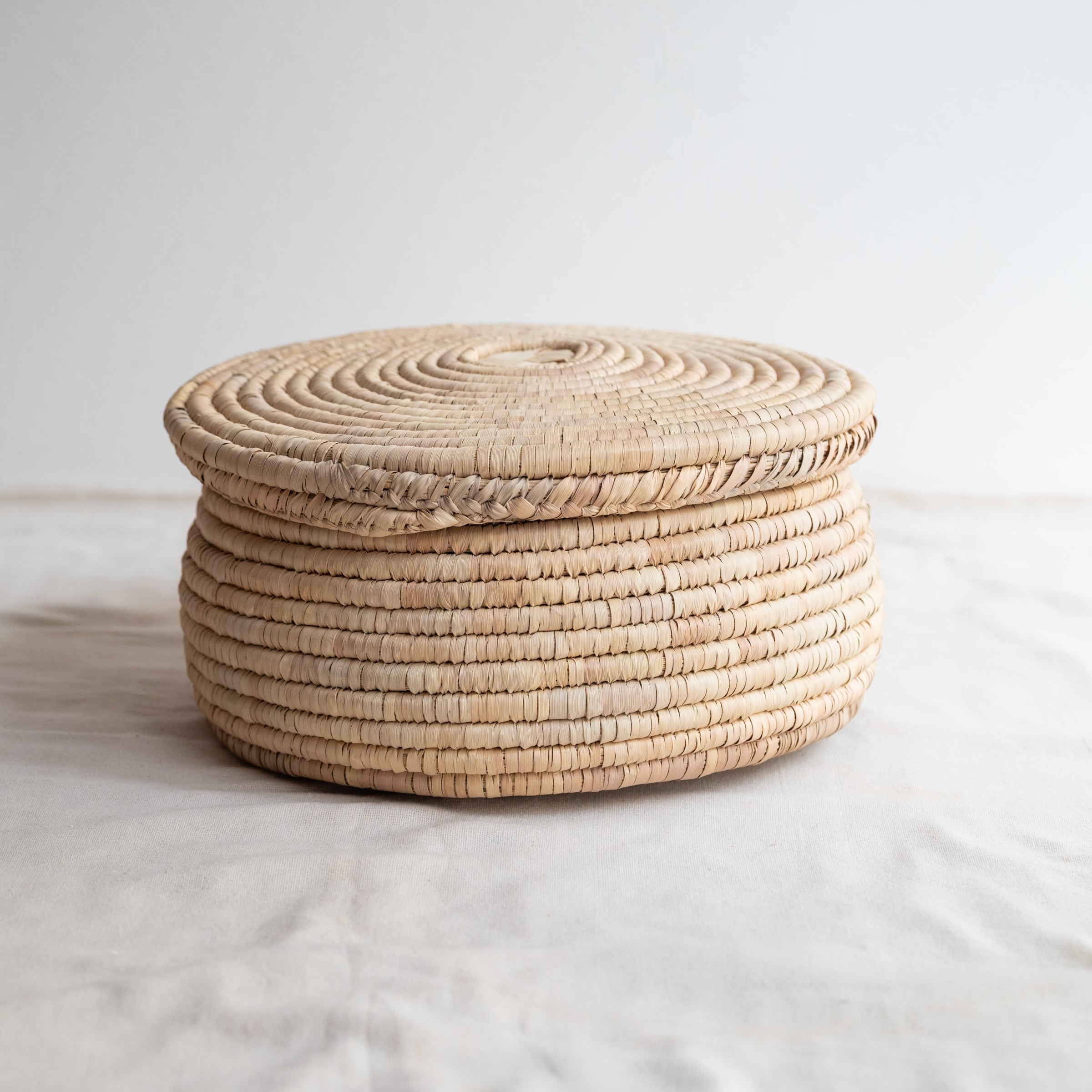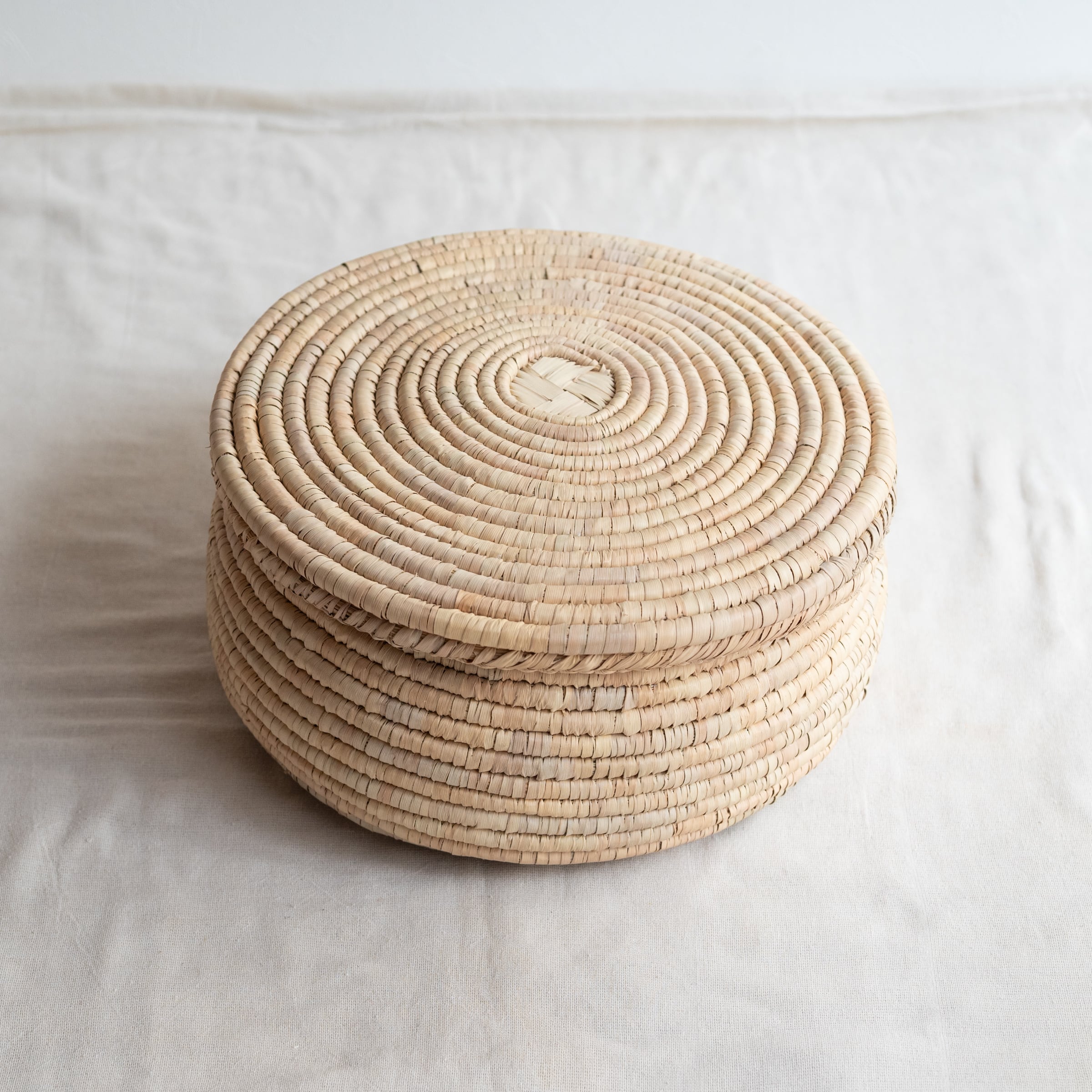 パキスタンのかご フタつきかごL No.11 直径約34cm × 高さ16-18cm