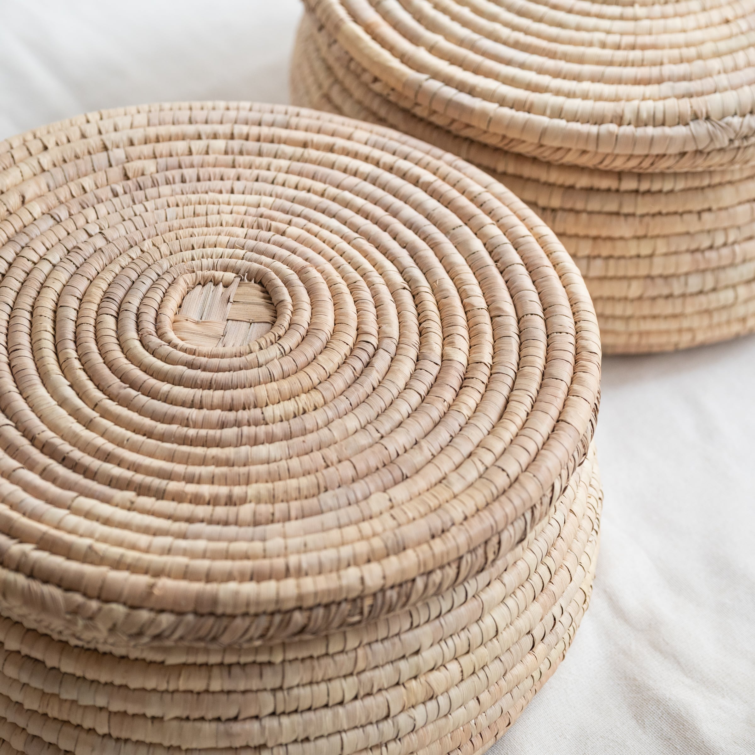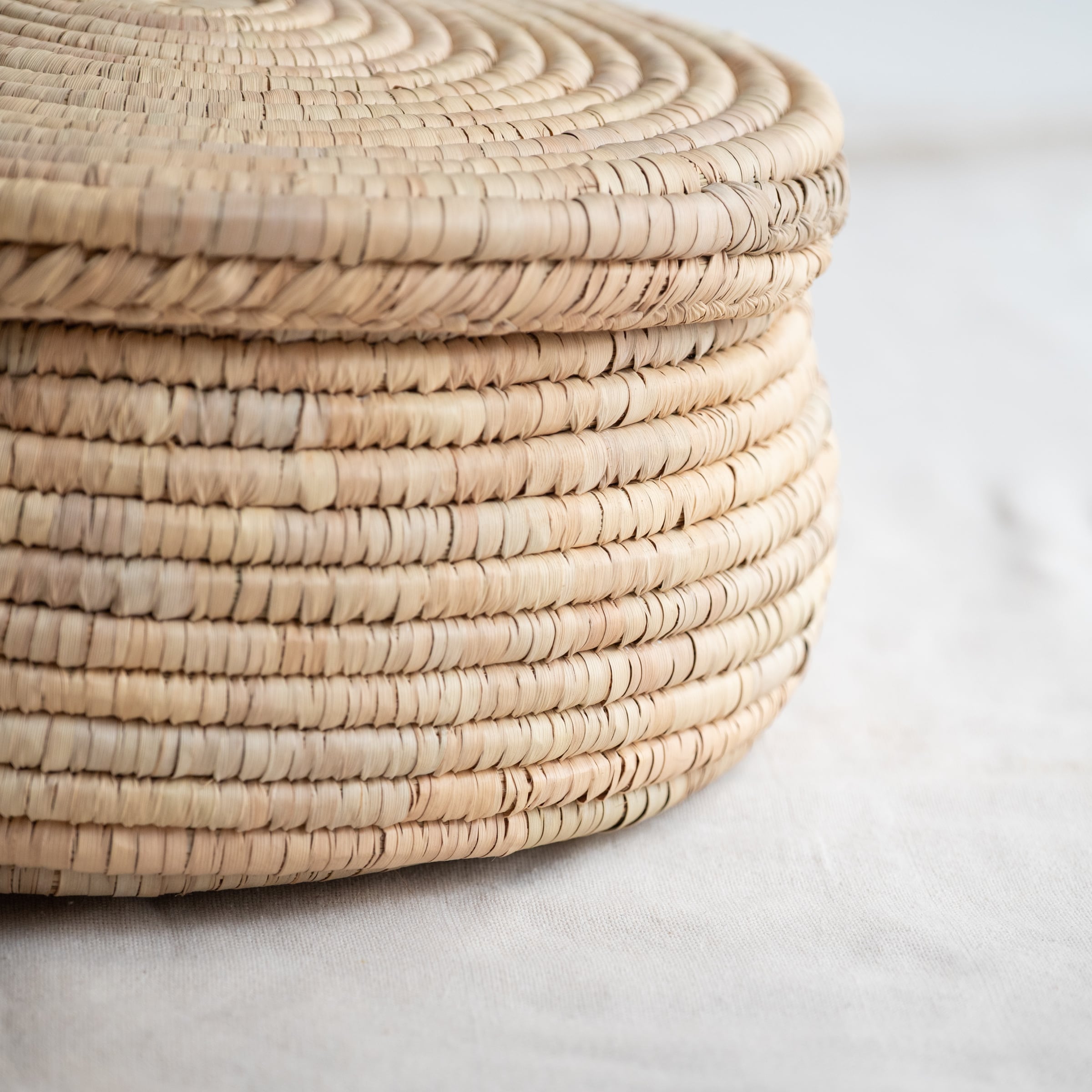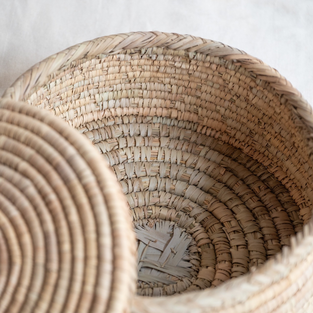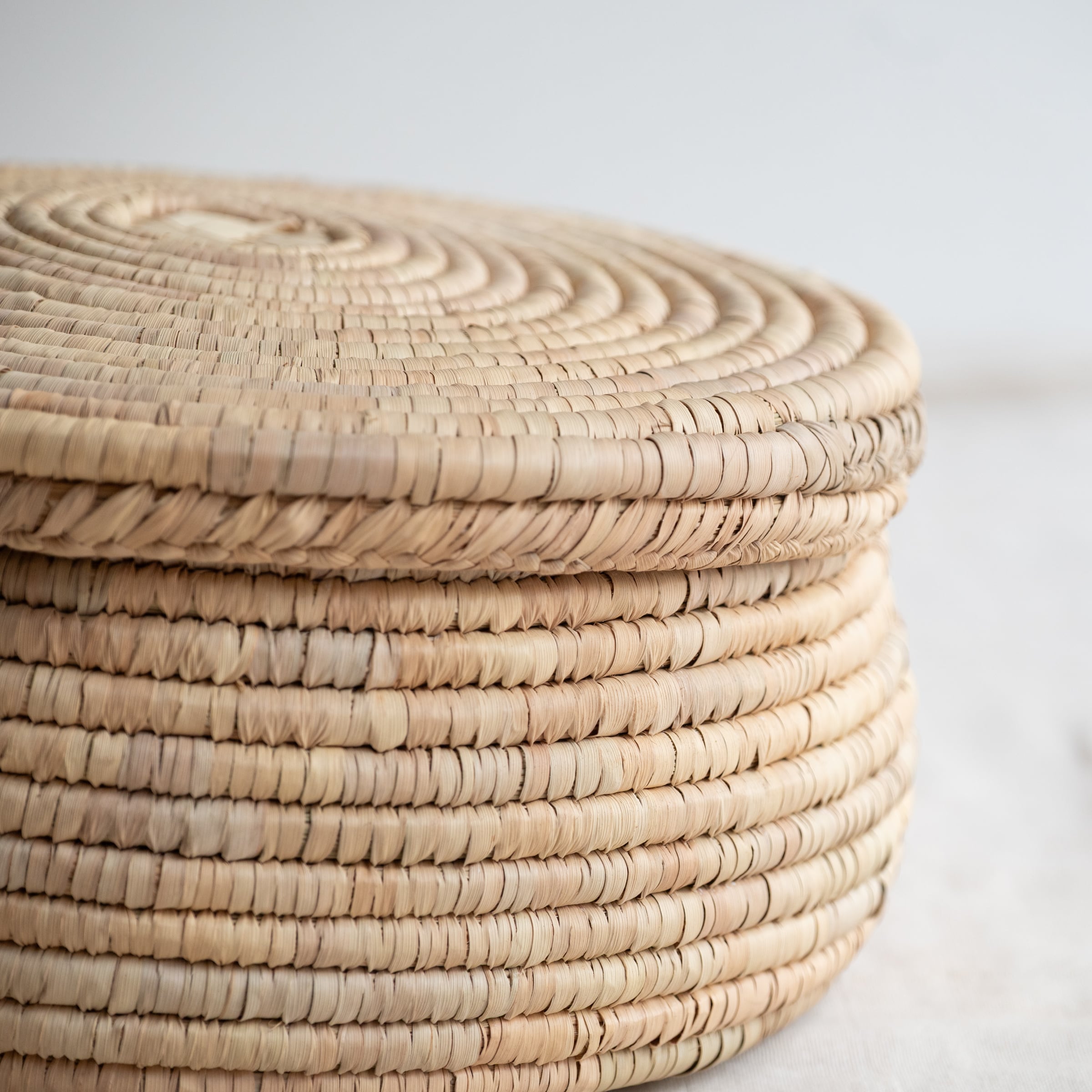 パキスタンのかご フタつきかごL No.11 直径約34cm × 高さ16-18cm