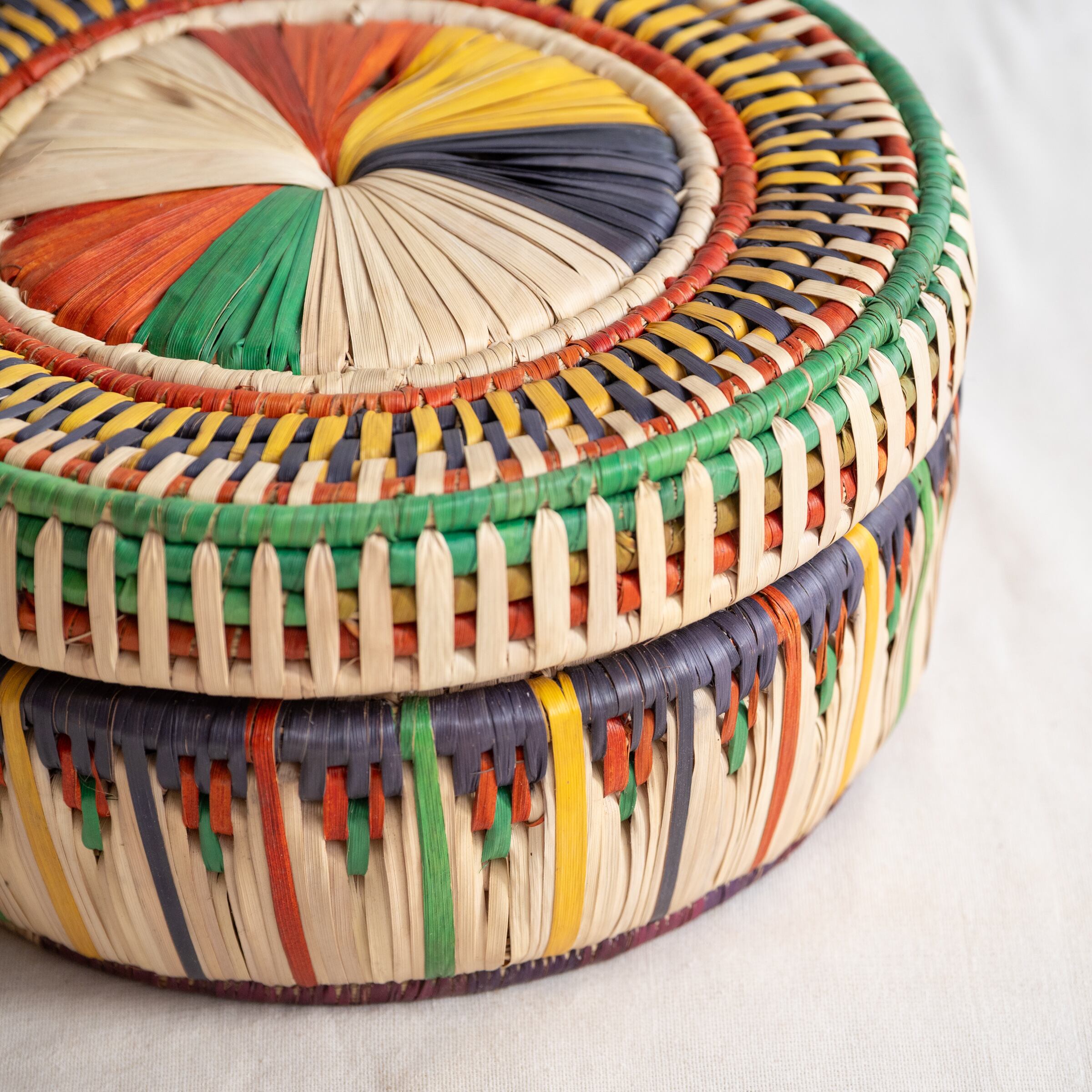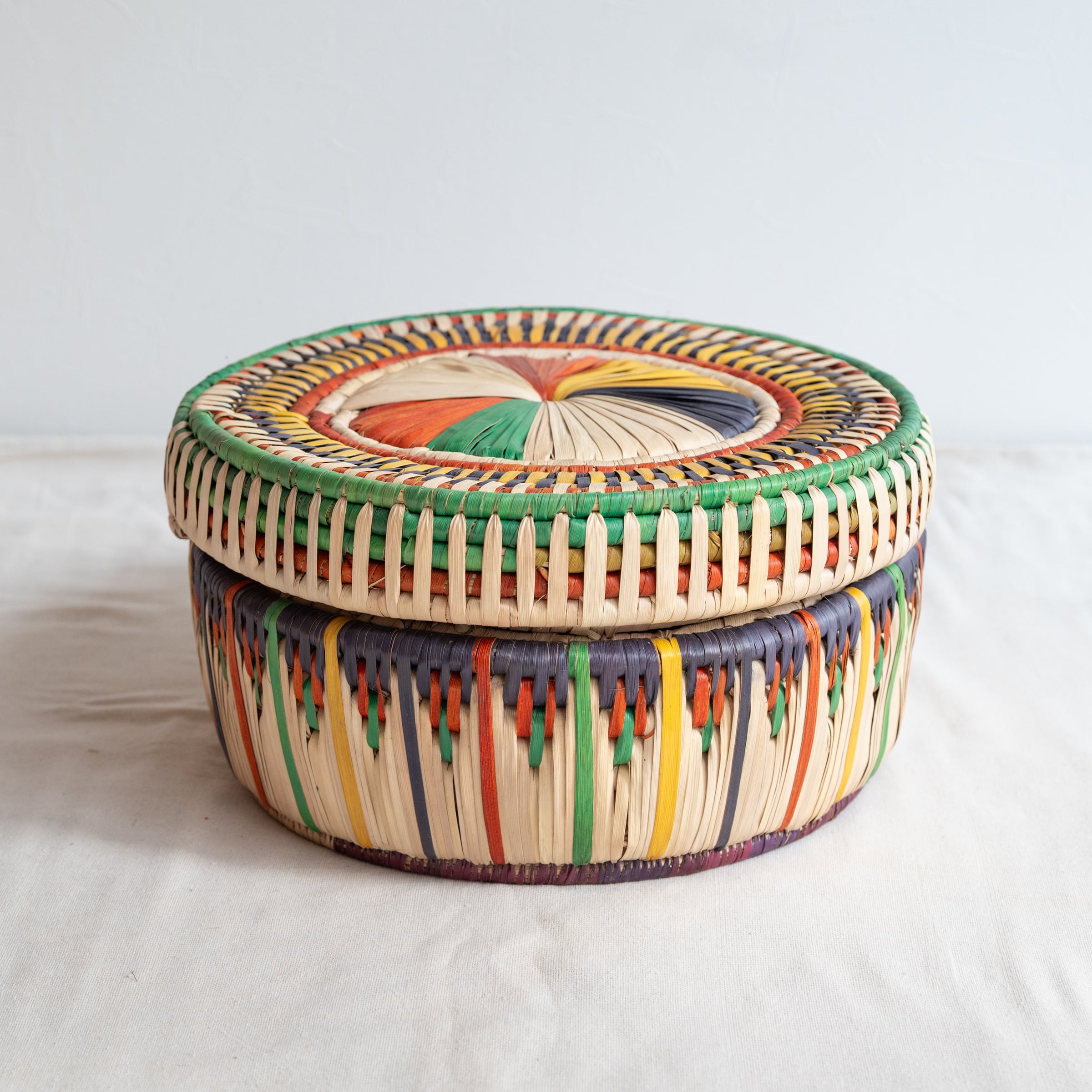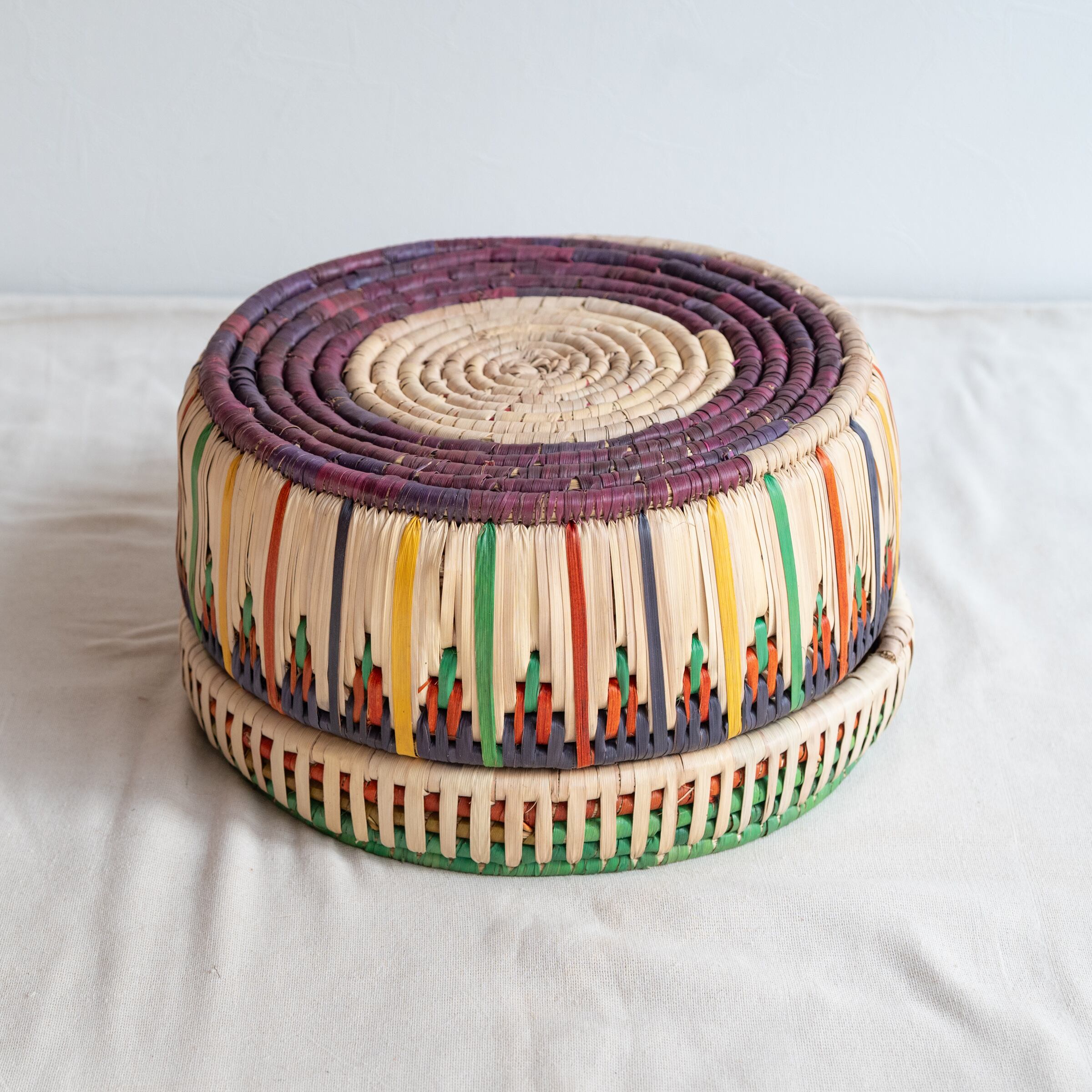 パキスタンのかご フタつきかごL No.17 直径34cm × 高さ18cm