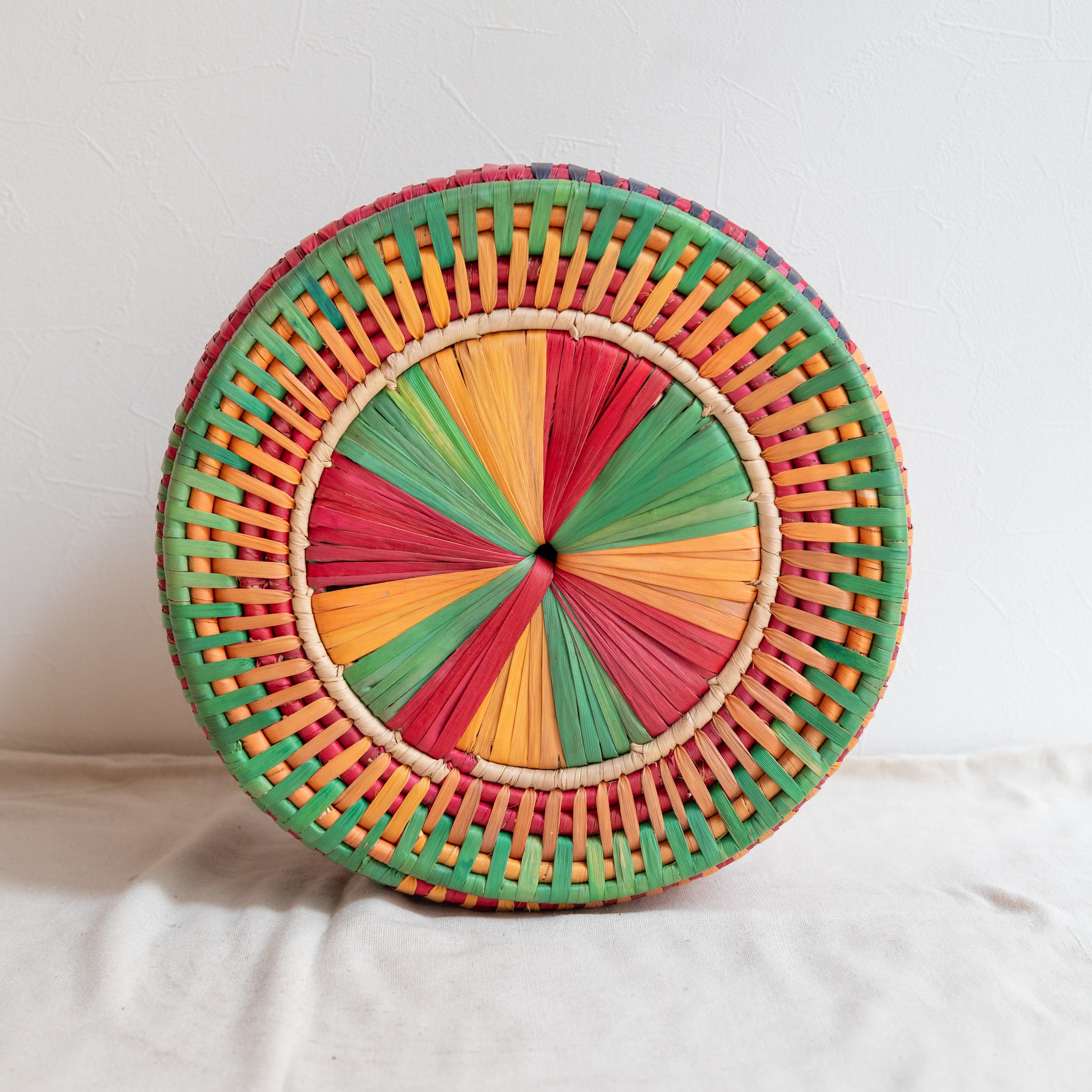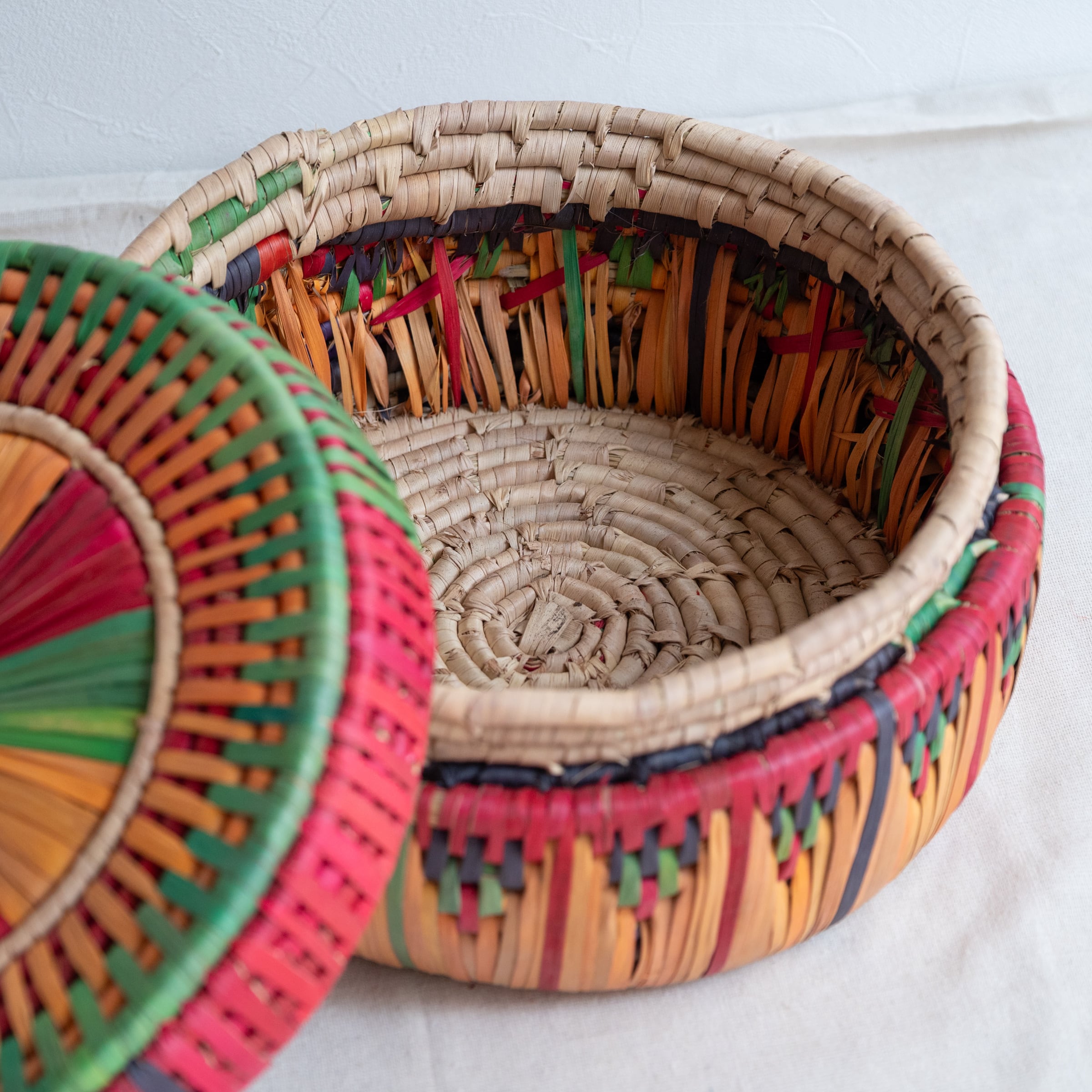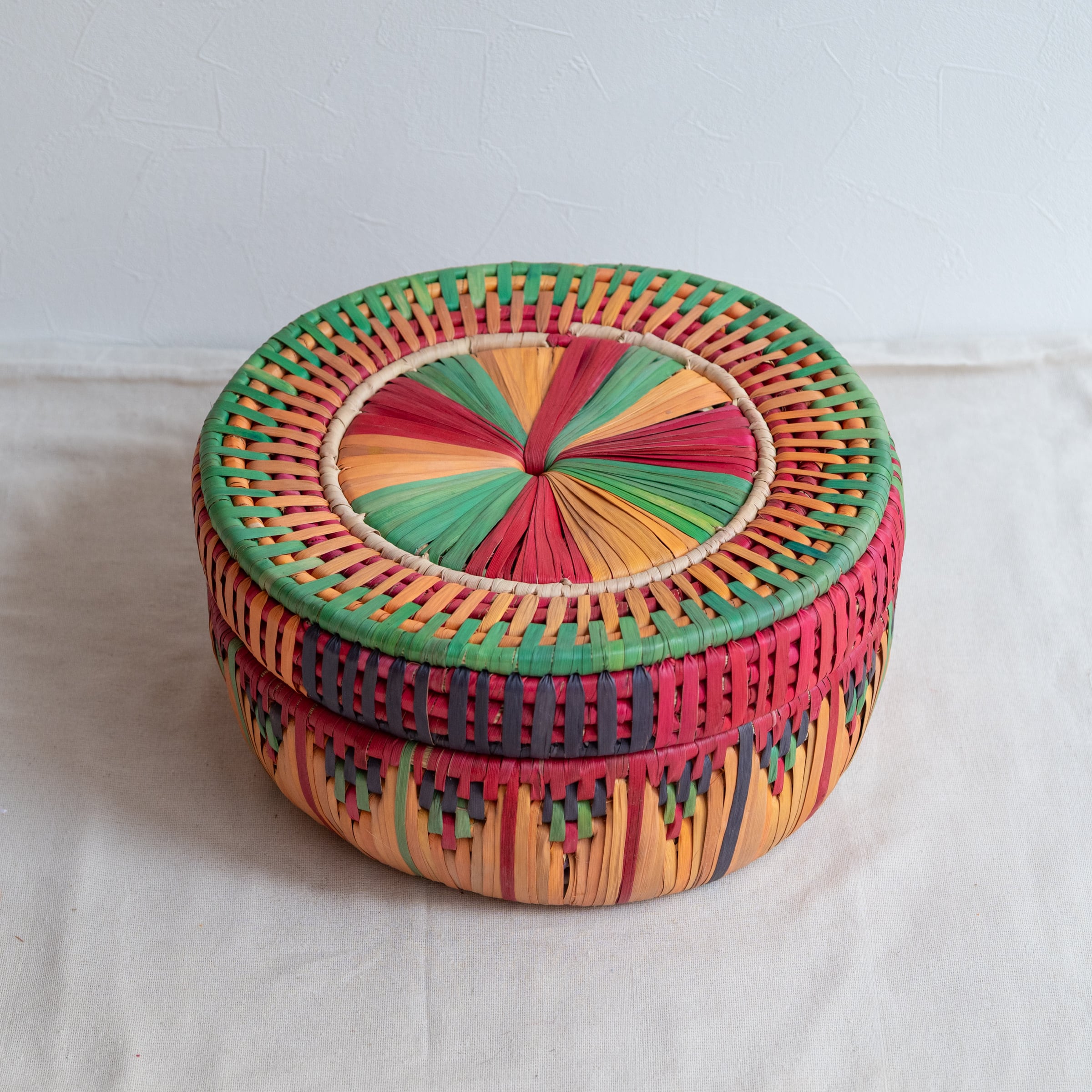 パキスタンのかご フタつきかごL No.19 直径33cm × 高さ17cm
