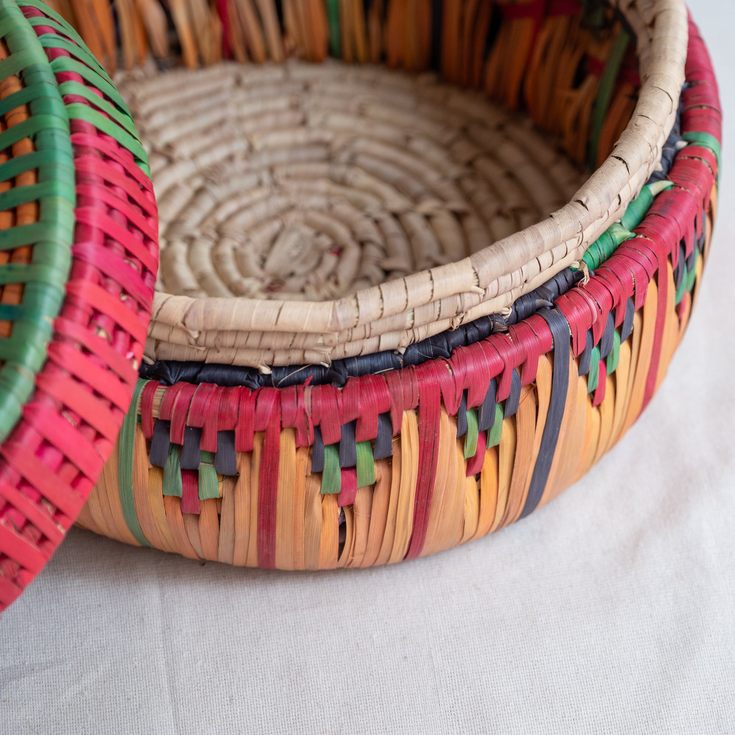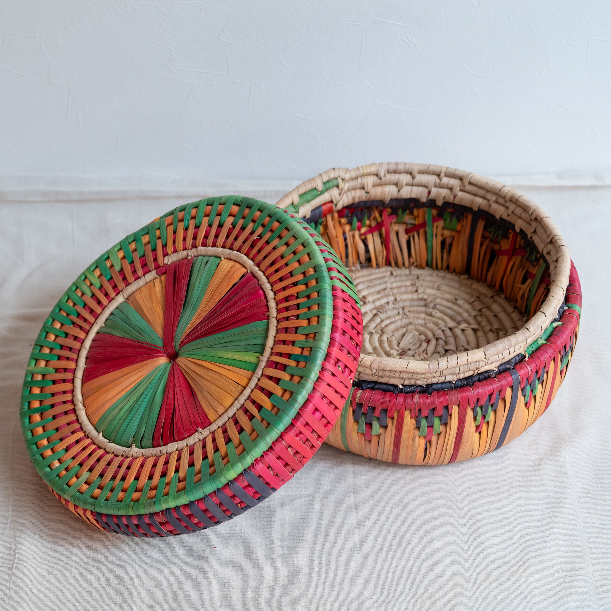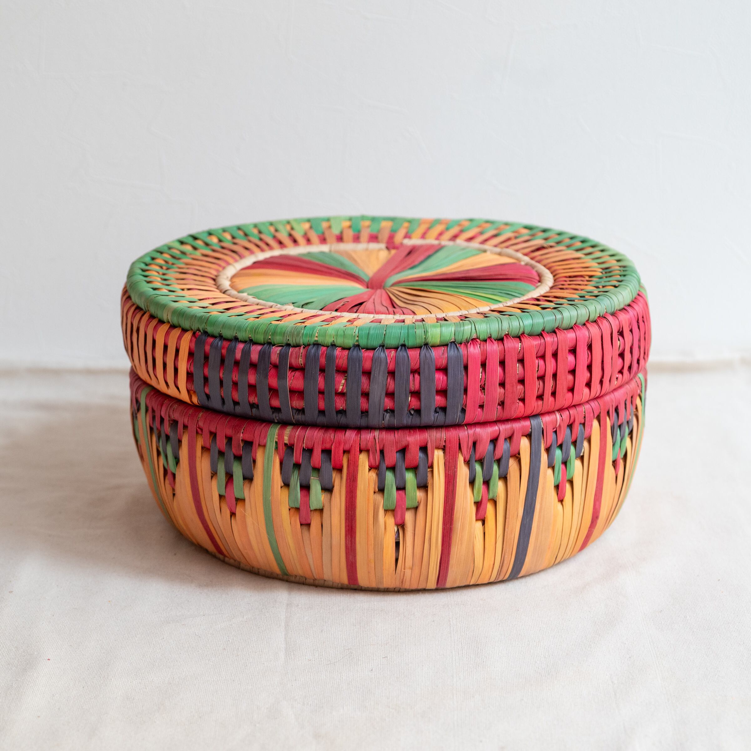 パキスタンのかご フタつきかごL No.19 直径33cm × 高さ17cm
