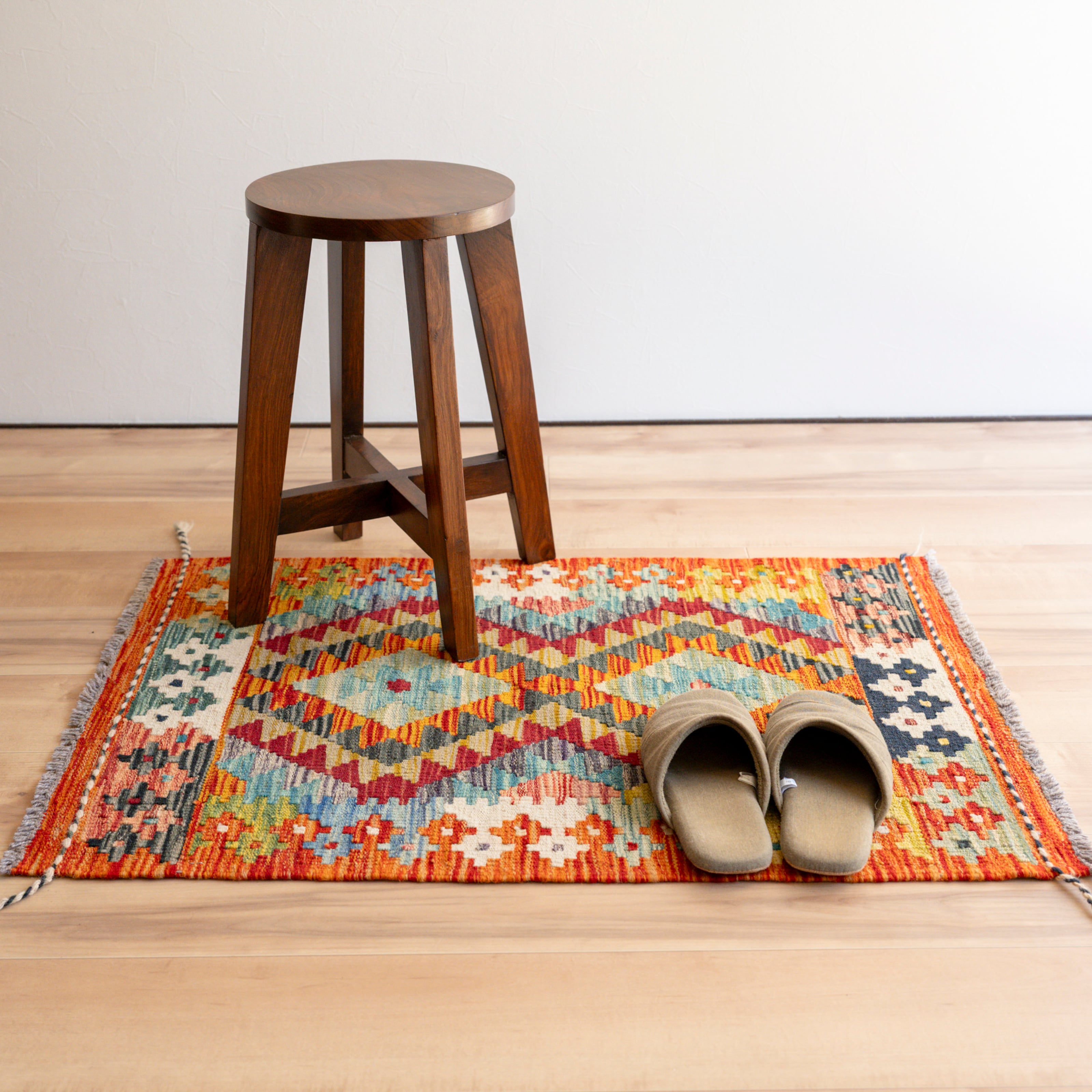 MONDAYのお店で玄関マットとして使っているキリムラグは、