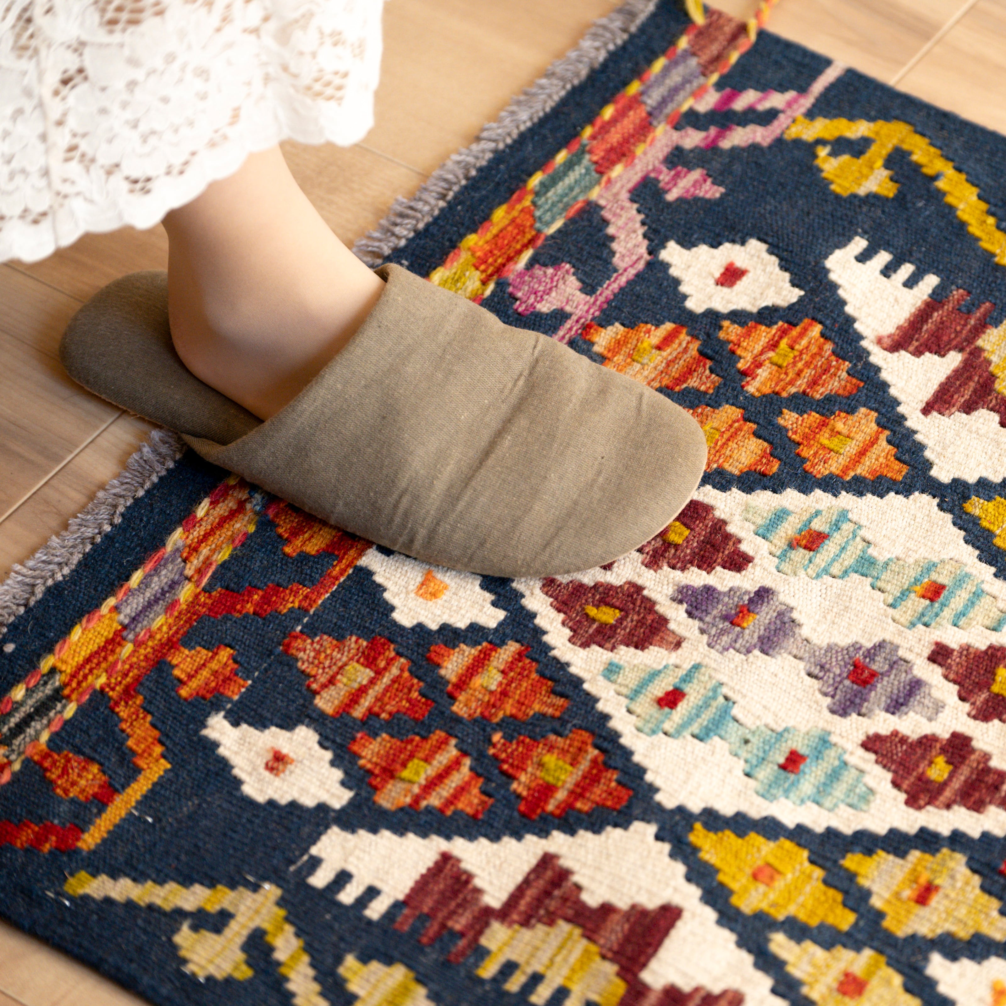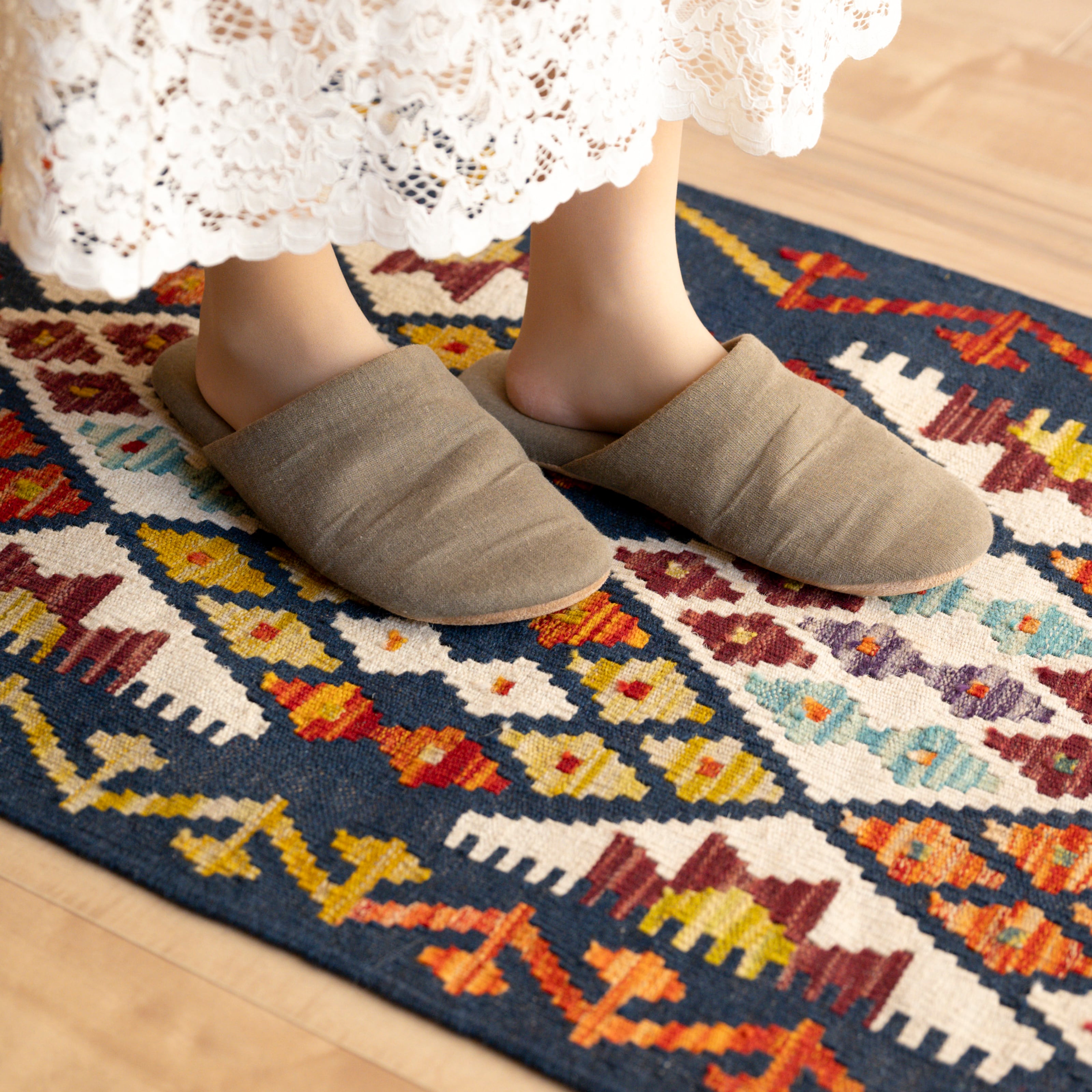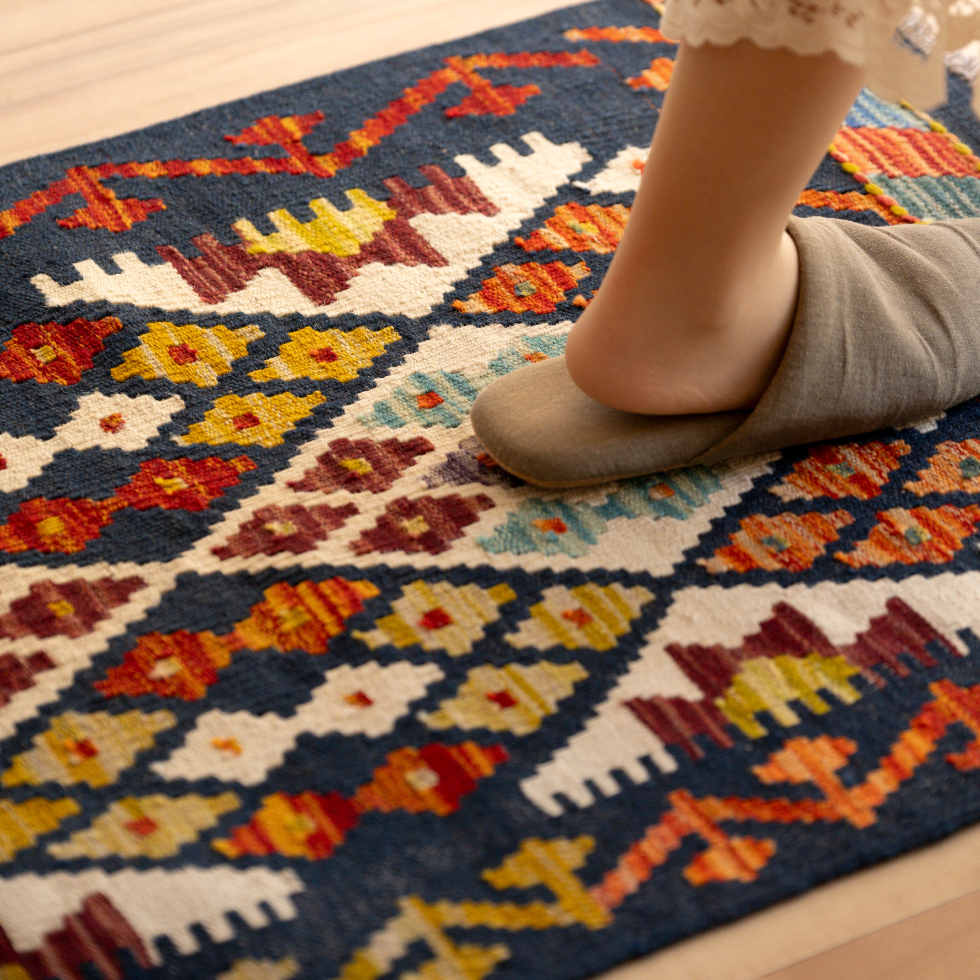 初めて素足でキリムに足をのせると、ちょっとゴワゴワした印象があるかもしれません。