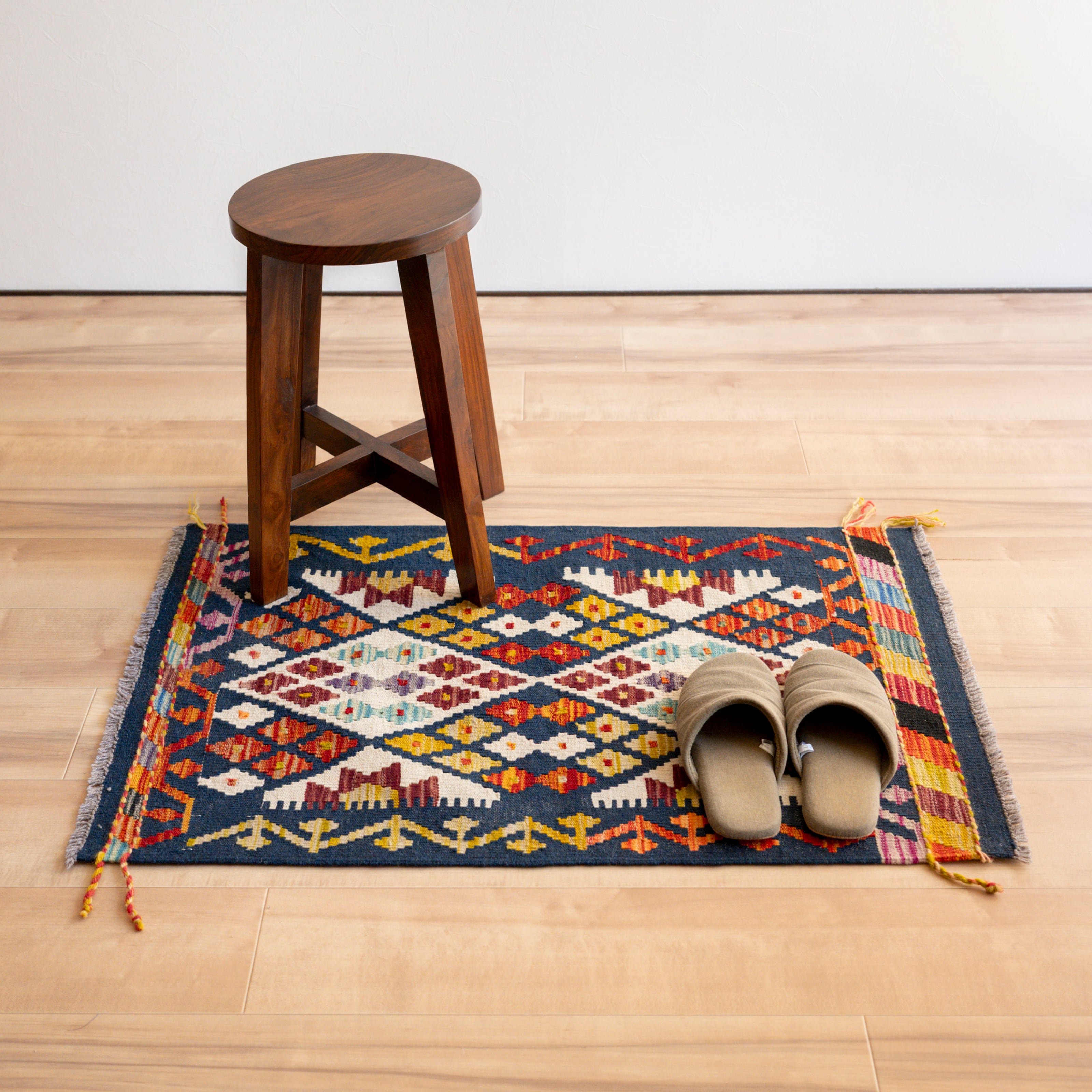 MONDAYのお店で玄関マットとして使っているキリムラグは、