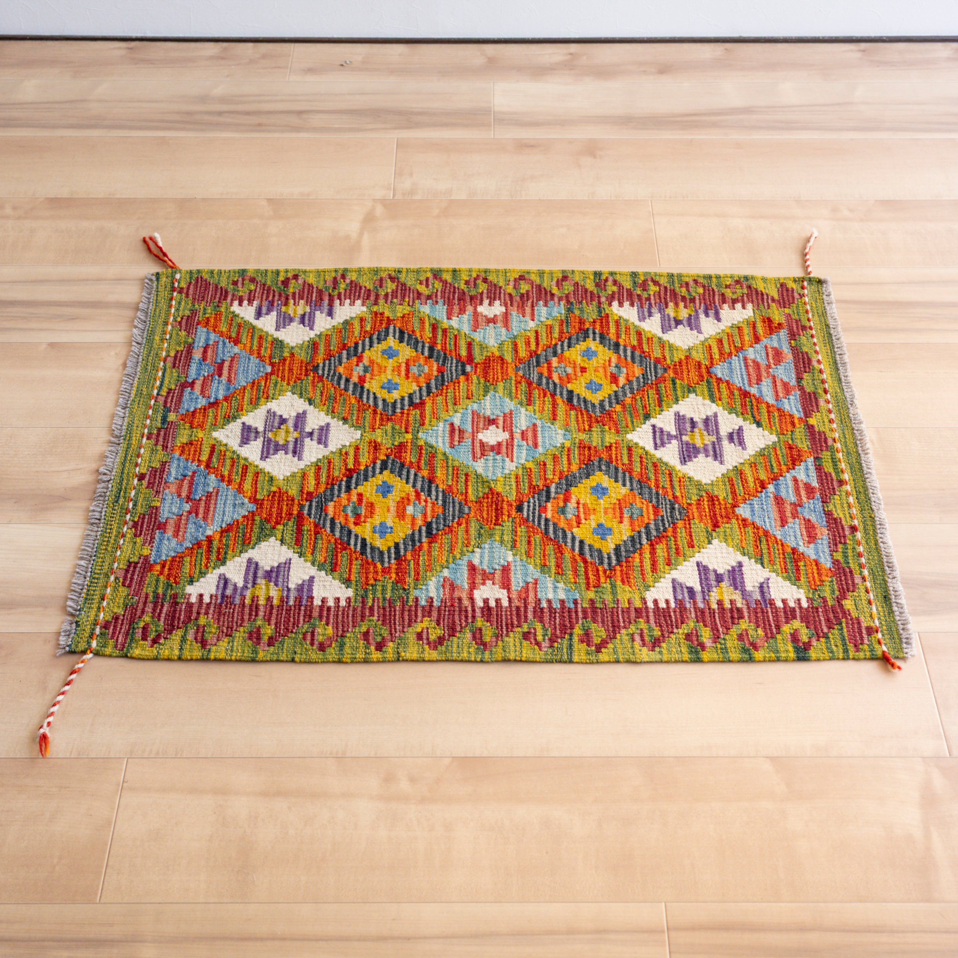 アフガニスタンのキリムM No.30 [約96×64cm] 玄関マットやソファーの足元サイズ