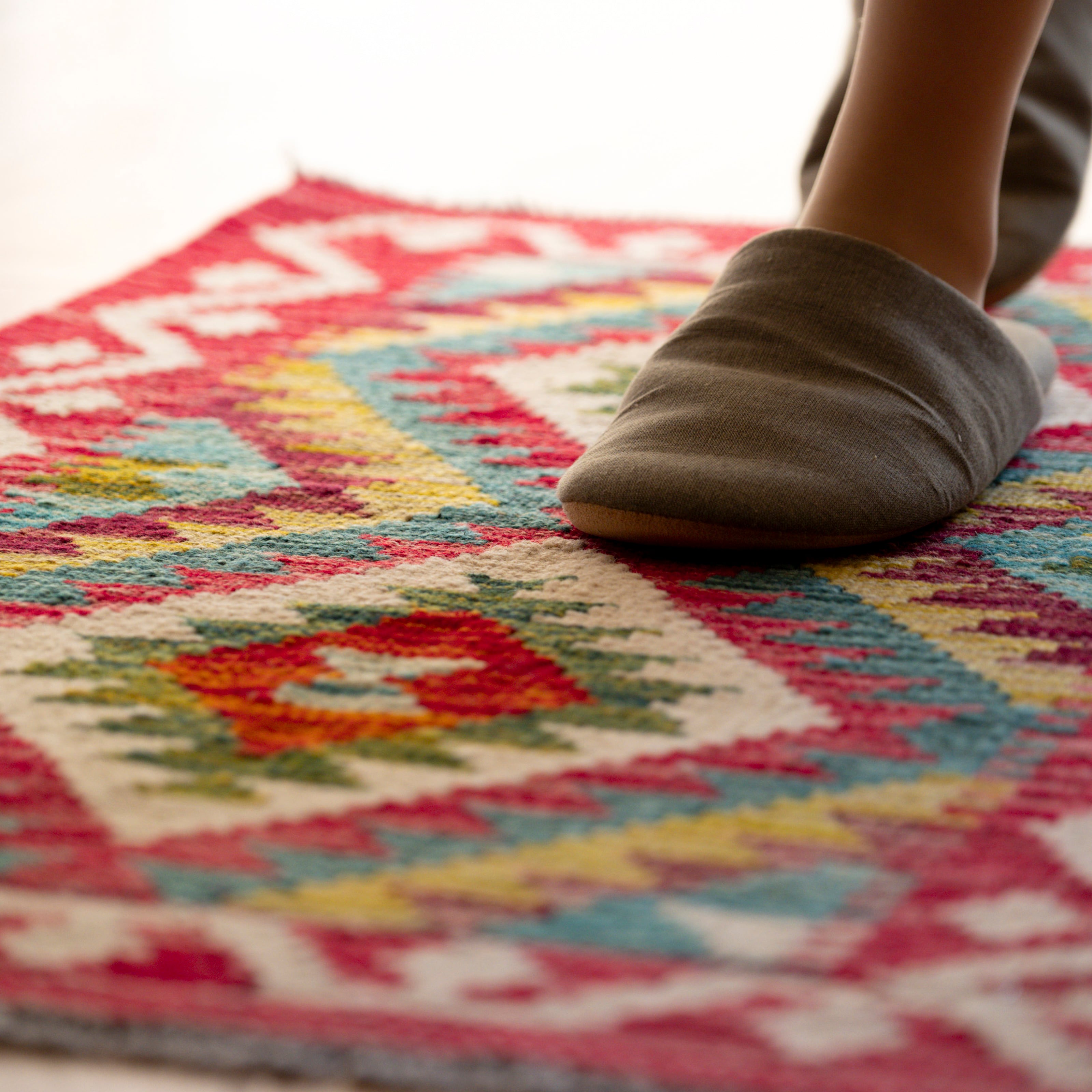 初めて素足でキリムに足をのせると、ちょっとゴワゴワした印象があるかもしれません。