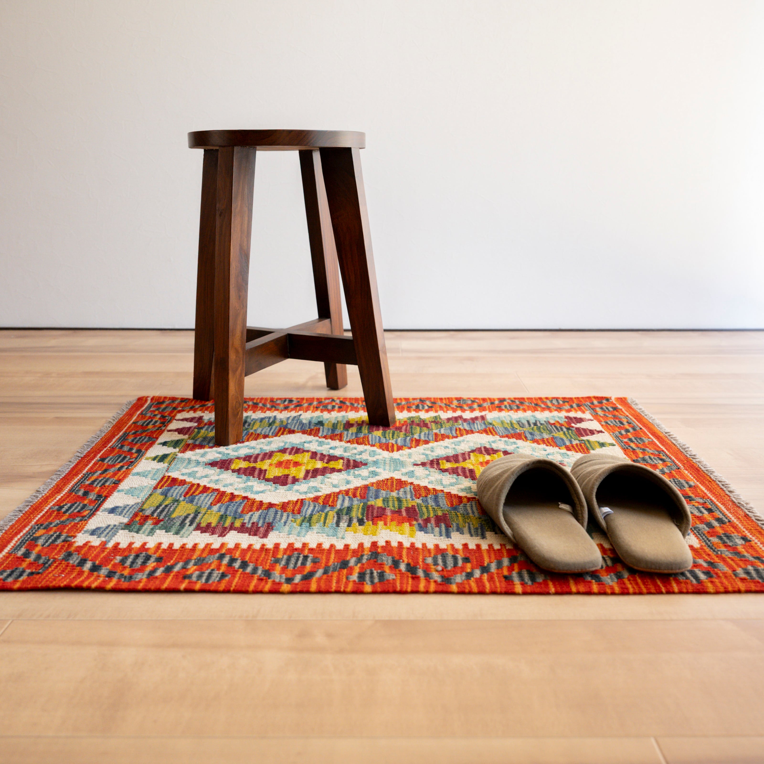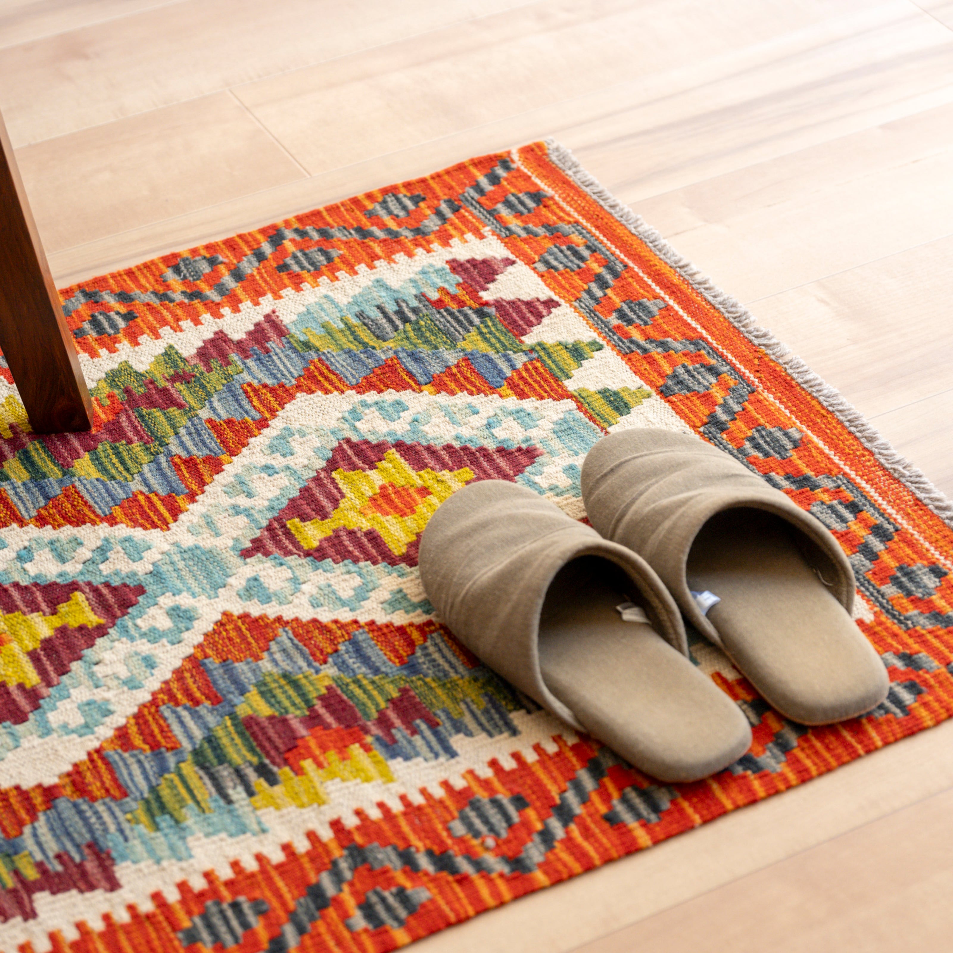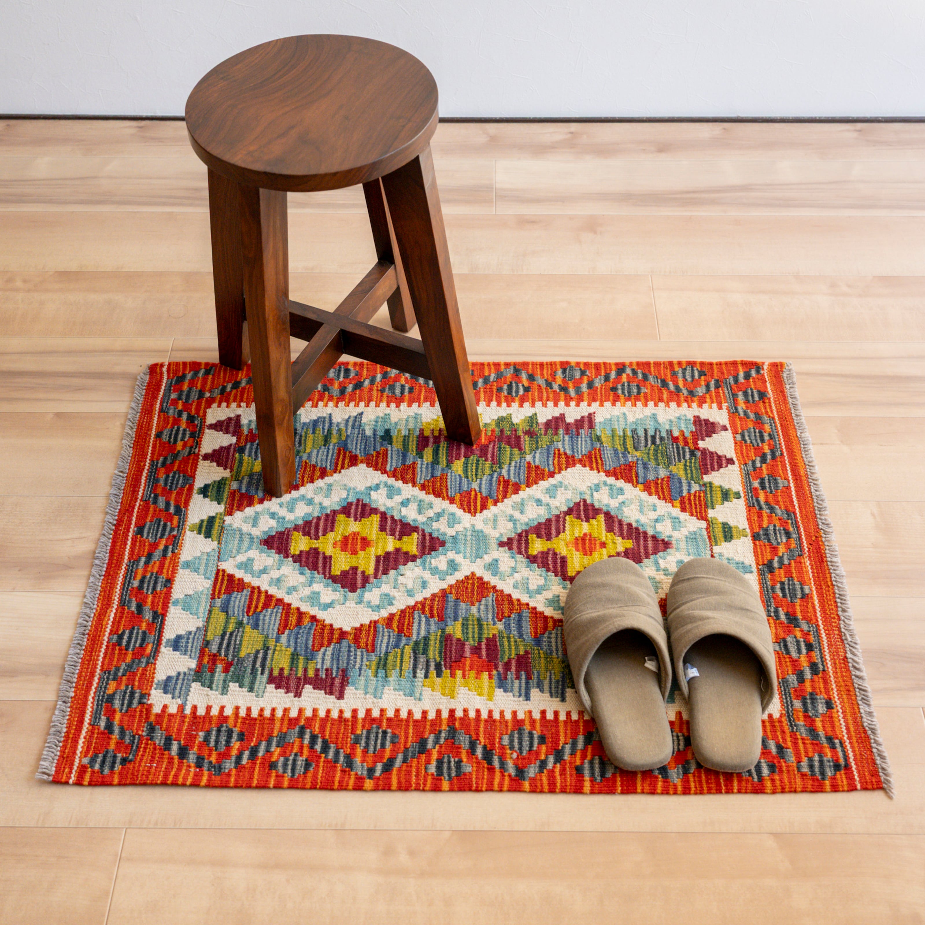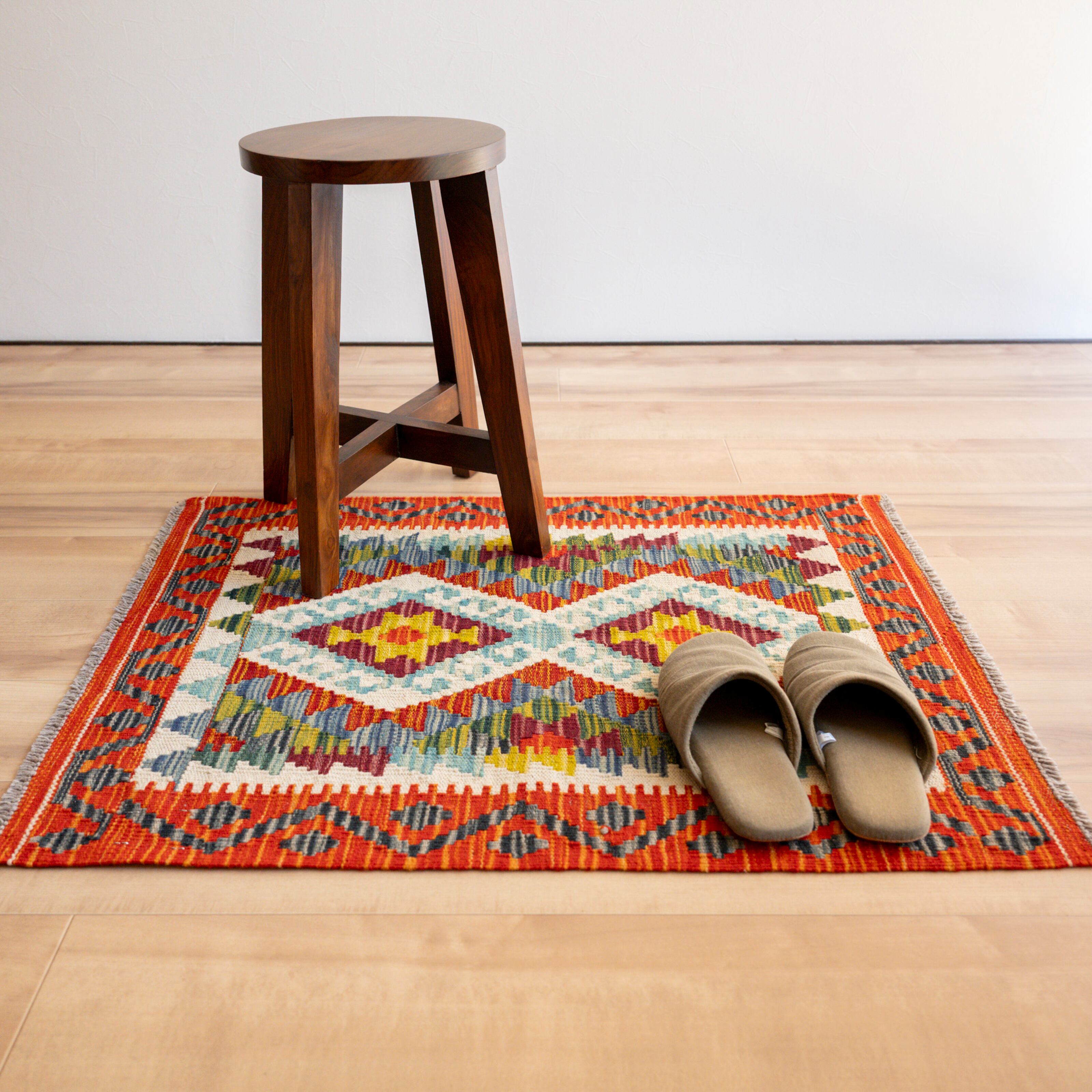 初めて素足でキリムに足をのせると、ちょっとゴワゴワした印象があるかもしれません。