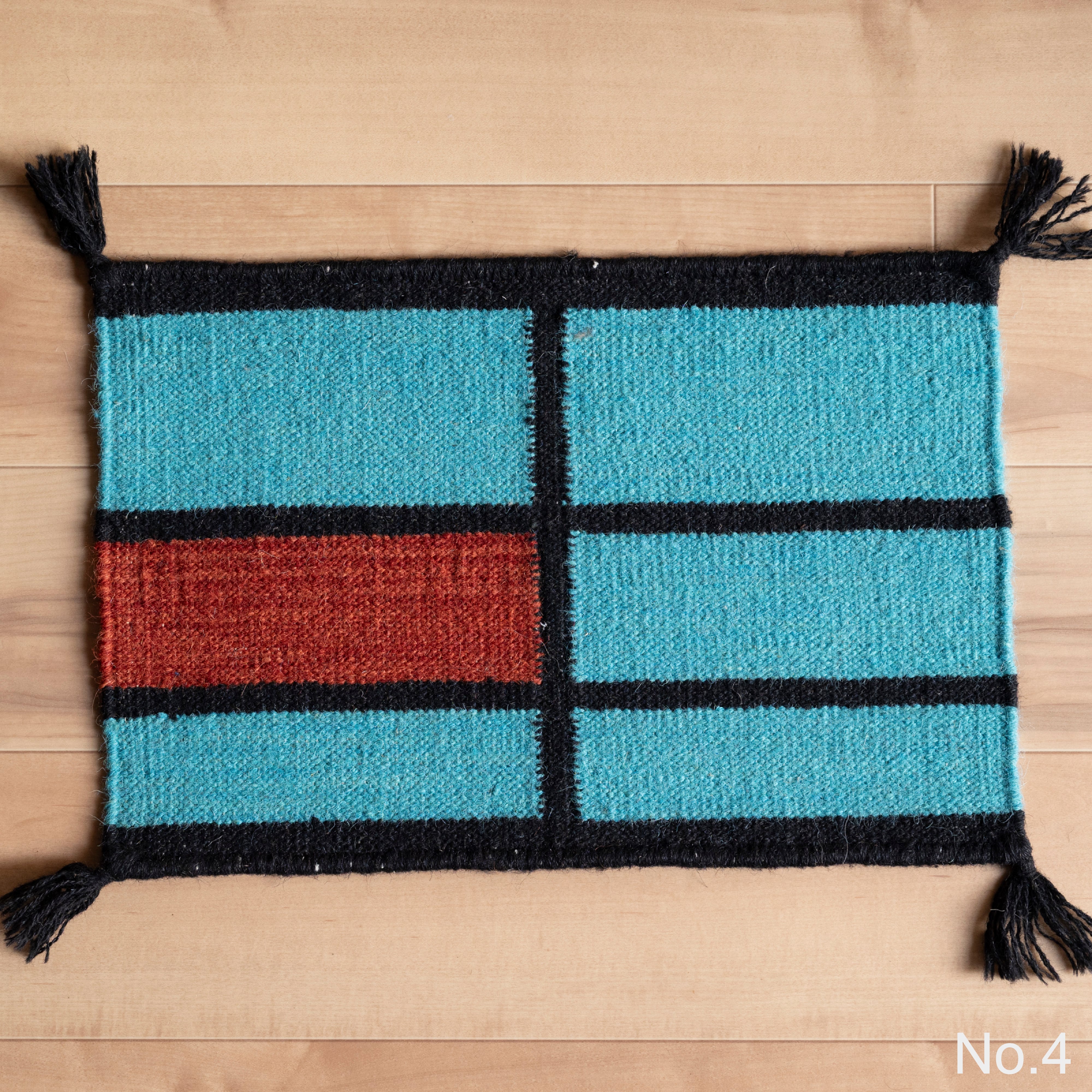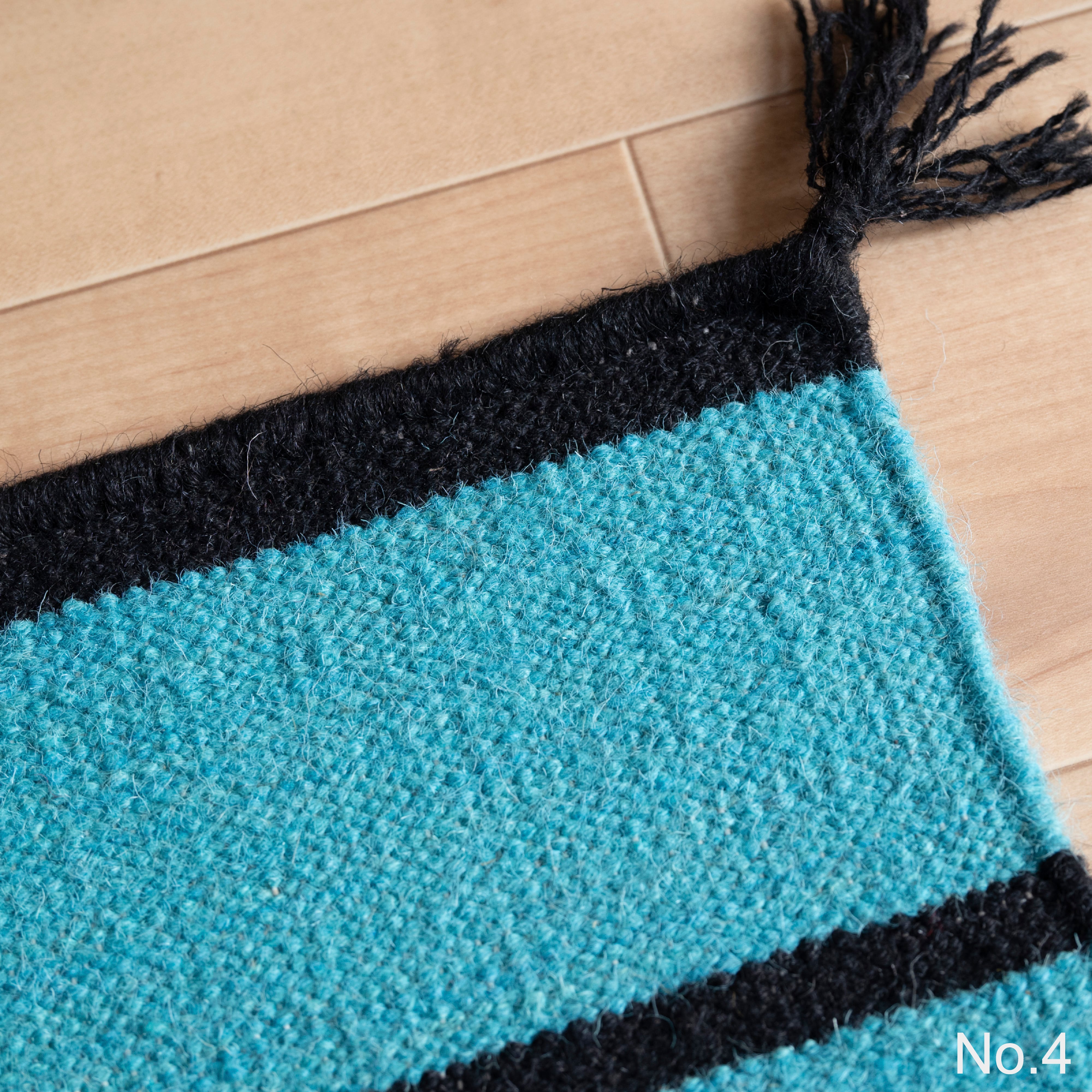 パキスタン製 手織りミニマット 青 [ 約47cm × 約32cm]
